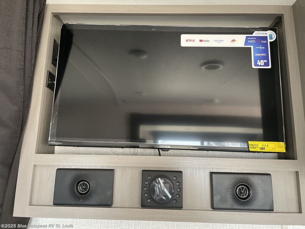 Get ready for some fun and relaxation with this trailer setup at your favorite campground! After enjoying the outdoors and everything it has to offer, you can whip up a meal in the galley kitchen with full amenities and clean the dishes with a single basin stainless steel under-mount kitchen sink with a residential high-rise faucet. The smart HDTV will provide inside entertainment as you relax on the L-shaped sofa with a table to dine at, and this space doubles as a sleeping area at night. The front bedroom offers a privacy curtain, a queen bed, dual wardrobes, and electric outlets and USB ports. And everyone can take turns getting cleaned up in the rear corner bathroom which offers linen storage after hanging out under the 12' power awning.
