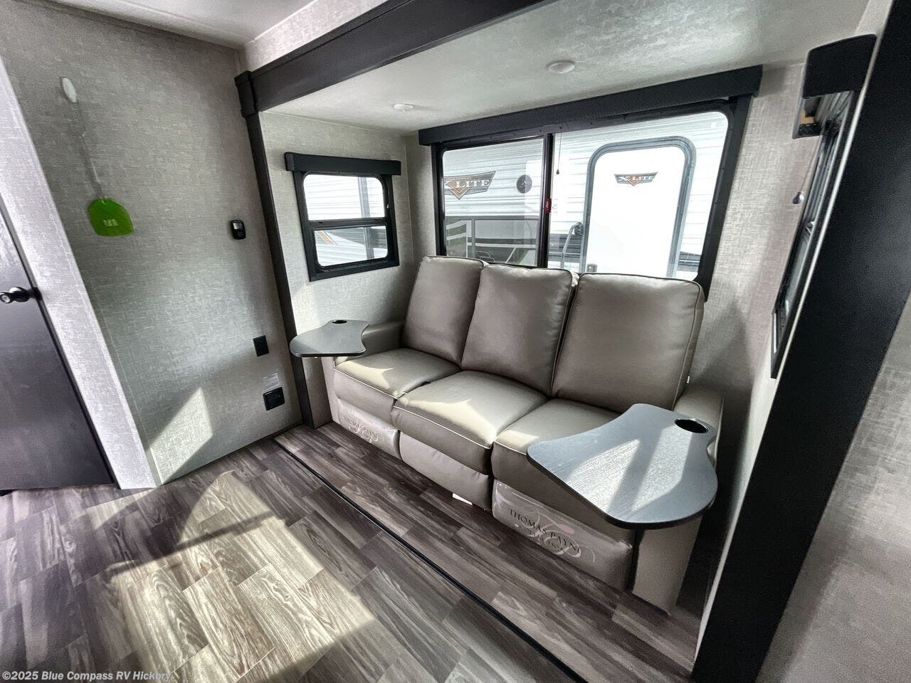 With any Starcraft Super Lite travel trailer, the solid and lightweight construction includes a fully walkable roof with a PVC roofing membrane that easily reflects solar heat and UV rays and TuffShell vacuum bonded laminated construction, reinforced with heavy-duty fiberglass and welded aluminum frames. There is also rain guttering with molded drip spouts to protect from water damage, a power tongue jack for easy towing, plus a power awning with LED lighting. The interior is spacious with an 81" living room ceiling height, hardwood cabinet doors, and flush floor slides with residential vinyl flooring and pressed membrane countertops for easy cleanup. Don't wait for your next adventure, take a Super Lite with you today!
