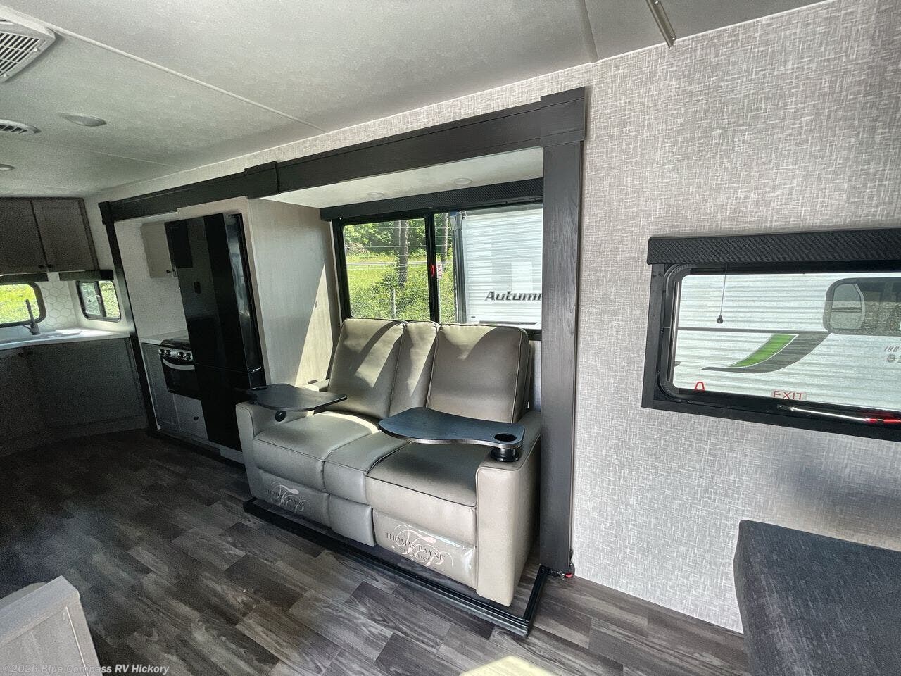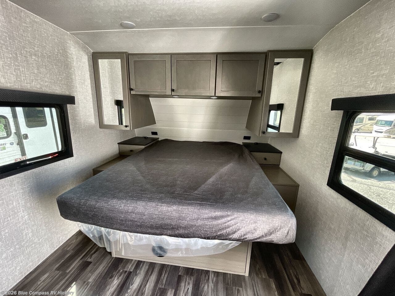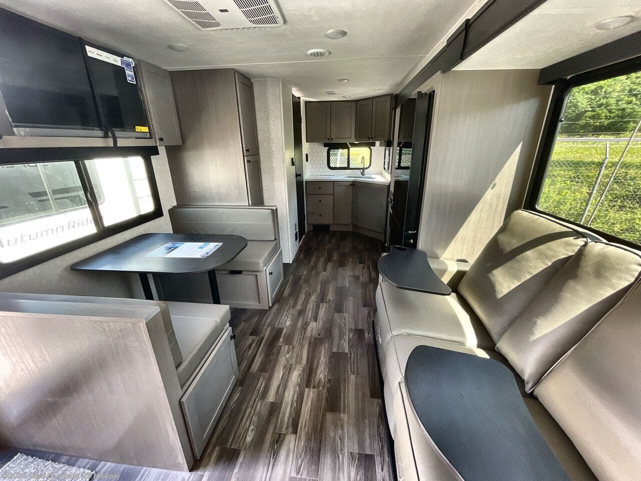 Time spent in this travel trailer will be time well spent! The large slide out provides more space to stretch out and relax, and you'll find seating space on the tri-fold sofa and booth dinette. These areas will also double as sleeping space for guests while you take the queen bed in the front bedroom. This model includes a rear corner kitchen with plenty of counter space, a 10 cu. ft. 12V refrigerator, plus a three burner range with a 17" oven. You will find a grill hookup LP quick connect outdoors plus an exterior docking station and a sprayer hose, and a pass-through storage for hiking and fishing gear!