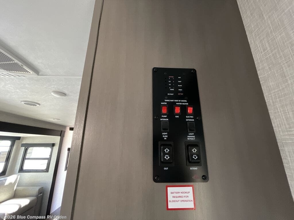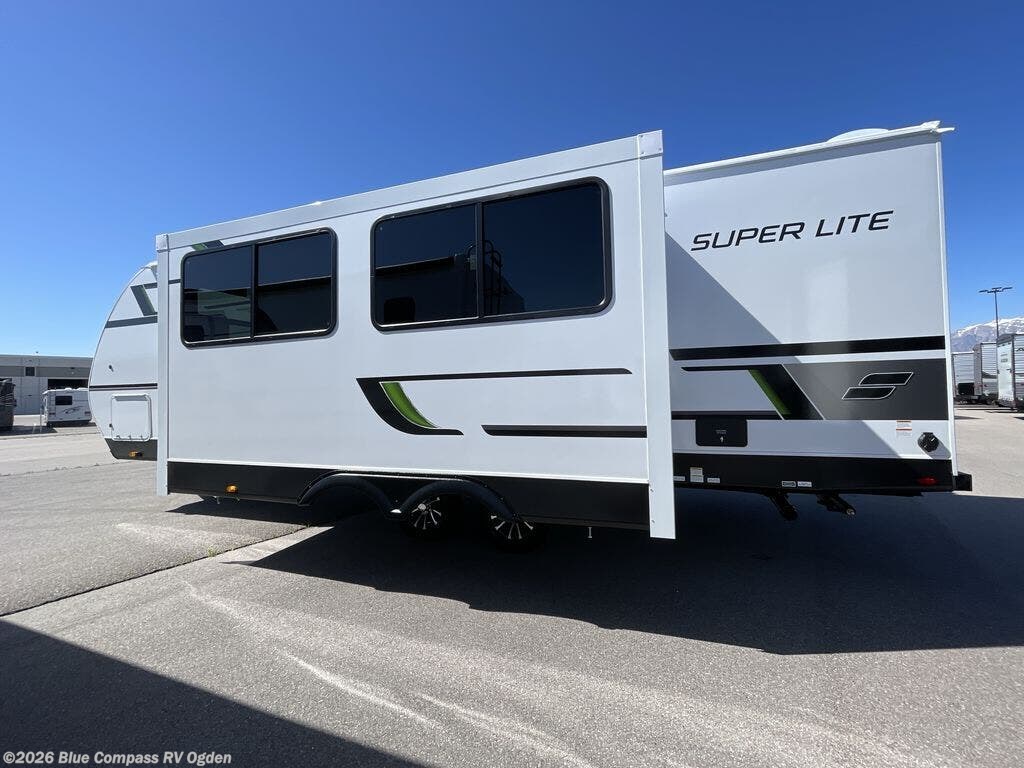 Convenience, space, and lots of camping amenities are wrapped up in this Super Lite so you can enjoy outdoor activities and inside comfort each day you are camping! There is a spacious rear bathroom that includes a walk-in closet, dual entry doors for a smooth flow of traffic in and out especially when your friends joined you, and a large slide with furniture giving you more interior floor space. The cook will have full amenities to feed everyone including a 10 cu. ft. 12V refrigerator to store the cold items, a single basin stainless steel under-mount kitchen sink, and everyone can play games at the U-shaped dinette or outside under the 20' power awning. And at night, you will have a queen bed with storage under the bed as well as beside wardrobes, USB ports and electrical outlets to keep everything charged, and a second entry into the trailer.