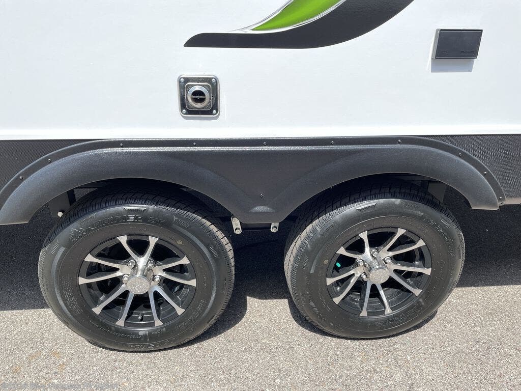 With any Starcraft Super Lite travel trailer, the solid and lightweight construction includes a fully walkable roof with a PVC roofing membrane that easily reflects solar heat and UV rays and TuffShell vacuum bonded laminated construction, reinforced with heavy-duty fiberglass and welded aluminum frames. There is also a molded front cap with LED lighting to protect against elements, a power tongue jack for easy towing, plus a power awning with LED lighting. The interior is spacious with an 81" living room ceiling height, hardwood cabinet doors, and flush floor slides with residential vinyl flooring and pressed membrane countertops for easy cleanup. Don't wait for your next adventure, take a Super Lite with you today!