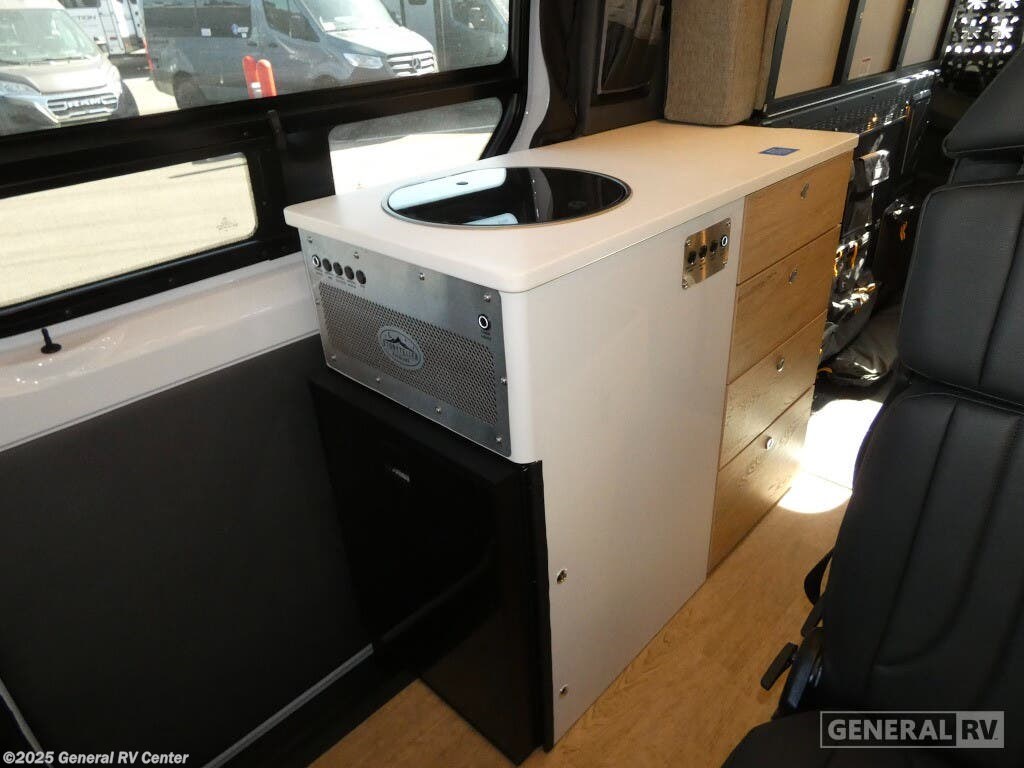 Owl Vans Rear Box MODEular Storage On-Board Air Compressor GrooveLounge Modern Elevated Exterior Graphics More Modern Finishes Throughout The Beast MODE van is more rugged than ever to meet your adventurous lifestyle! The nVader brush guard by Flarespace is new, along with an nVader ladder by Flarespace. The swivel driver and passenger seats make for a comfortable drive and once you arrive at your destination you can prepare a delicious meal with the portable induction cooktop, then enjoy it at the removable dinette table. The cargo area has a L-track system that can fold up the Dreamweaver bed when you need to load your bikes into the back. Plus, you have a GrooveLounge 2-seater convertible sofa bed that can be for sitting, lounging, or sleeping! Live free, explore endlessly, and tell better stories with the Storyteller Overland Class B diesel van! With an all-wheel drive and diesel engine, the Storyteller Overland MODE OG models are always ready to go whenever you are! You can travel with complete peace of mind knowing that each van meets all of the qualifications for the various and rigorous safety tests, so it is safe. But the Storyteller Overland is also fun and rugged with its rugged roof rack with sonic wedge deflector, powered awning with dimmable LED lights, portable toilet, outside shower, and portable Bluetooth speaker. The HALO shower conveniently stores in a cabinet and includes a shower head and curtain that can be rolled up and stored when not in use, providing you with more living space! Additional features include an M-Power energy system powered by Lithionics, convenient bug screens, plus 110V outlets and USB ports to keep you charged up!