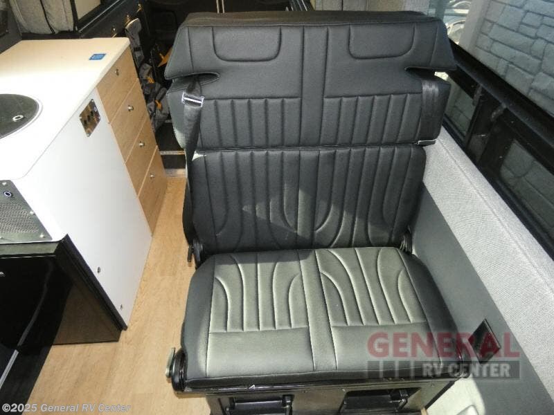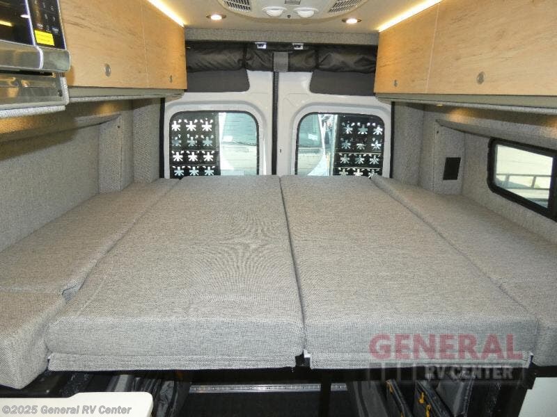 The Beast MODE van is more rugged than ever to meet your adventurous lifestyle! The nVader brush guard by Flarespace is new, along with an nVader ladder by Flarespace. The swivel driver and passenger seats make for a comfortable drive and once you arrive at your destination you can prepare a delicious meal with the portable induction cooktop, then enjoy it at the removable dinette table. The cargo area has a L-track system that can fold up the Dreamweaver bed when you need to load your bikes into the back. Plus, you have a GrooveLounge 2-seater convertible sofa bed that can be for sitting, lounging, or sleeping!