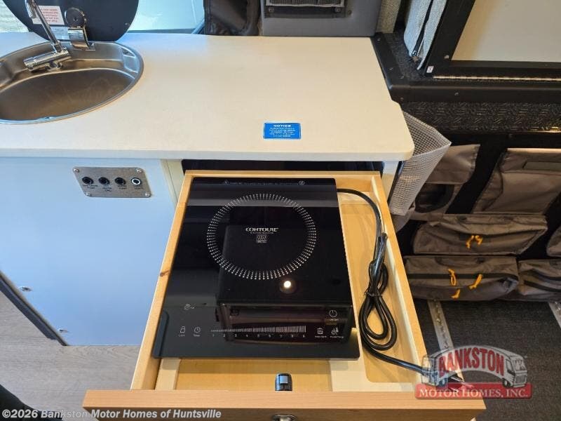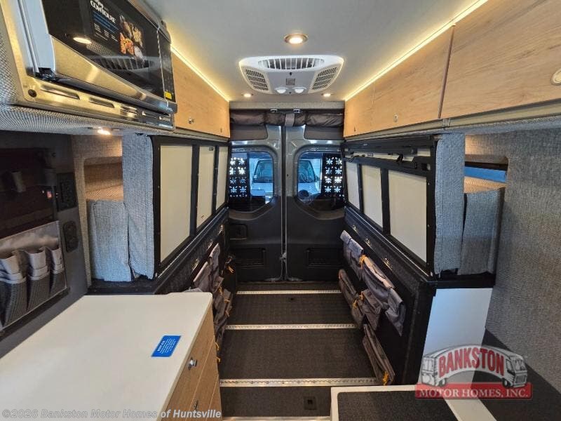 The Beast MODE van is more rugged than ever to meet your adventurous lifestyle! The nVader brush guard by Flarespace is new, along with an nVader ladder by Flarespace. The swivel driver and passenger seats make for a comfortable drive and once you arrive at your destination you can prepare a delicious meal with the portable induction cooktop, then enjoy it at the removable dinette table. The cargo area has a L-track system that can fold up the Dreamweaver bed when you need to load your bikes into the back. Plus, you have a GrooveLounge 2-seater convertible sofa bed that can be for sitting, lounging, or sleeping!