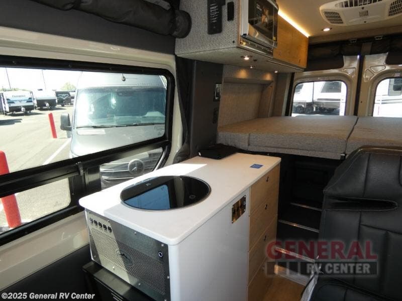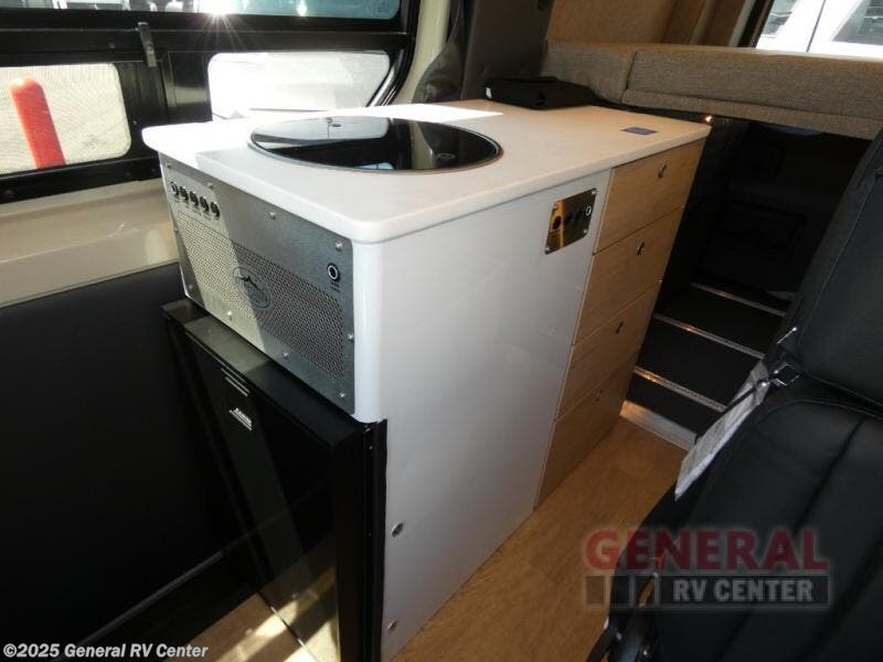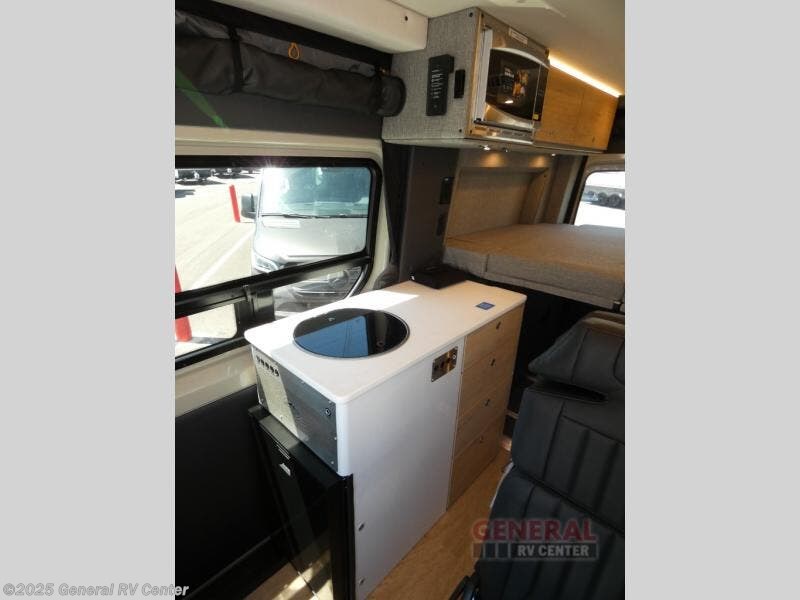 Pack your bags and head out on a great adventure in this motorhome! There is flexible living all throughout between the GrooveLounge which can be used for sitting, lounging, or sleeping at night, plus the cargo area has a L-track system to unfold the Dreamweaver bed/convertible work surface for versatile use. Prepare your best home cooked meals on the road with the portable induction cooktop and enjoy them with the removable dinette table. You can also freshen up after a long day of traveling in the HALO interior shower system with a FlexSpace concealed shower pan and portable toilet.