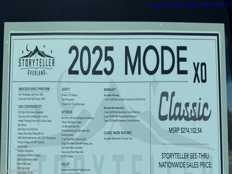 2025 Storyteller Overland Classic MODE XO Specifications
