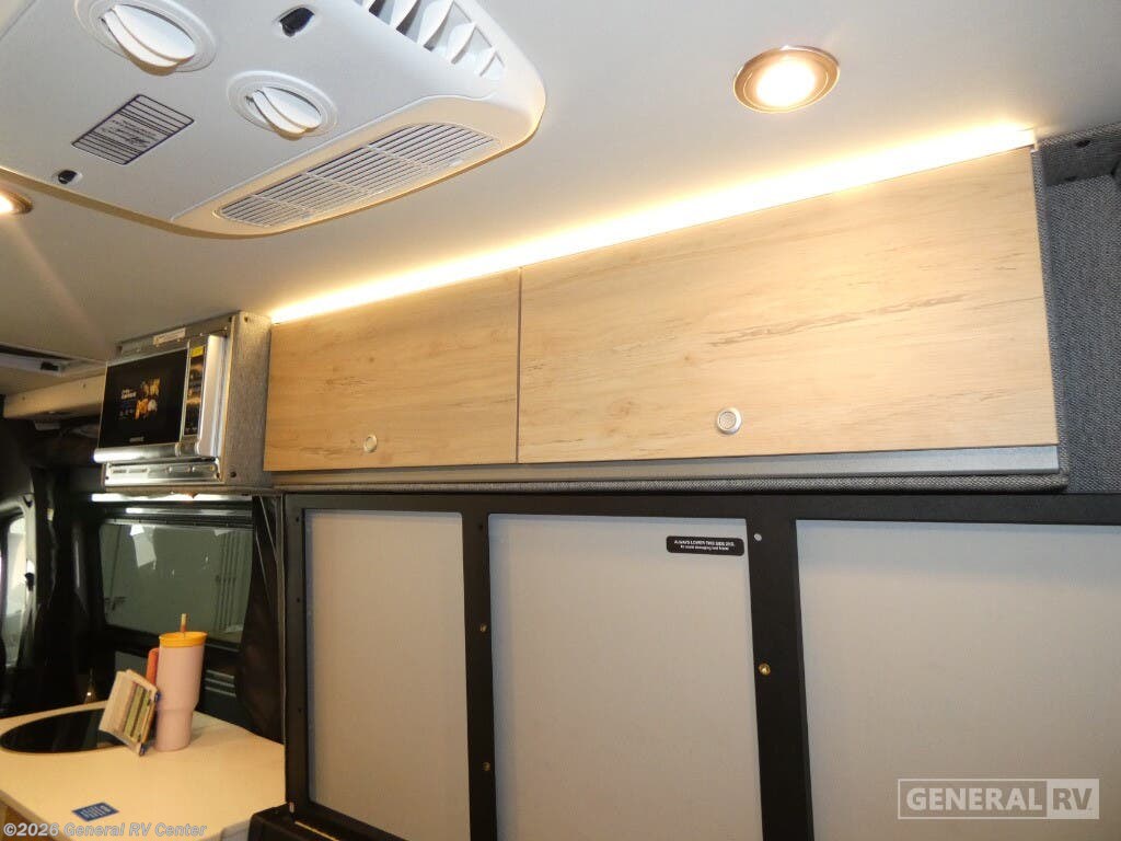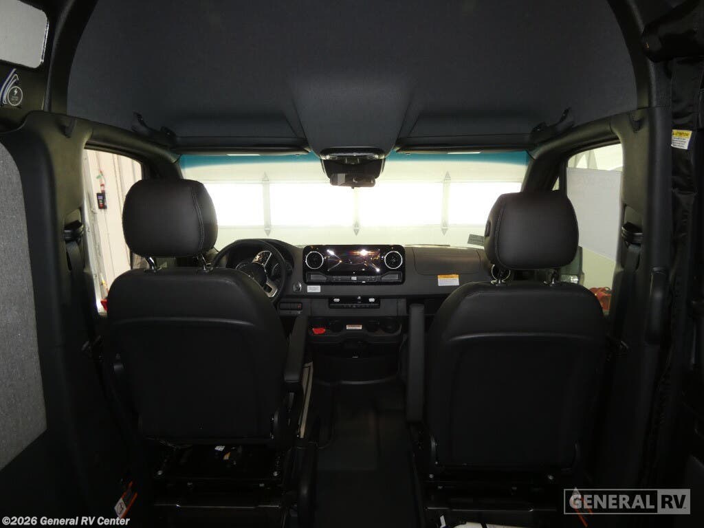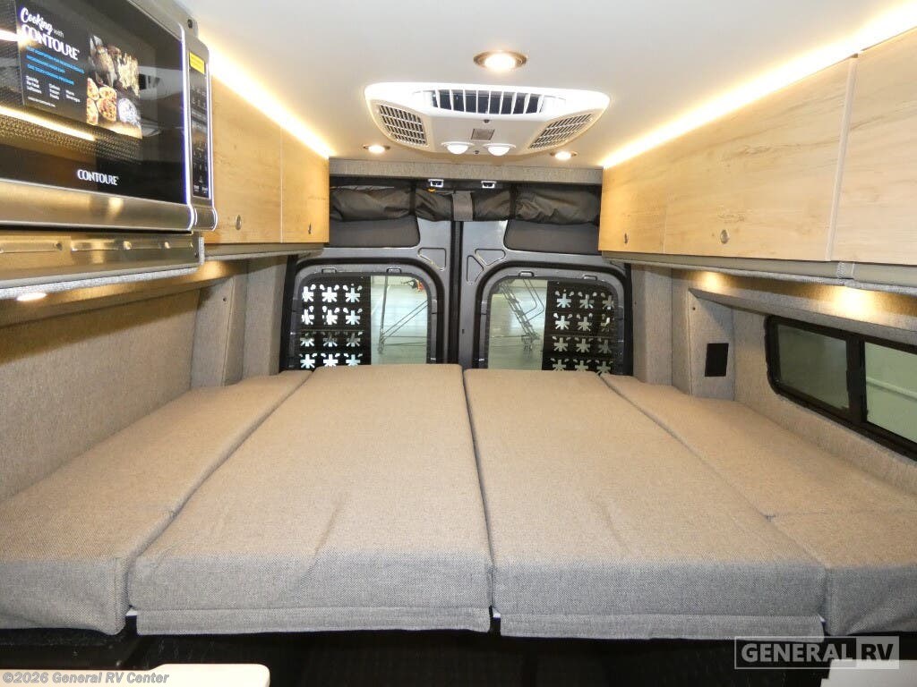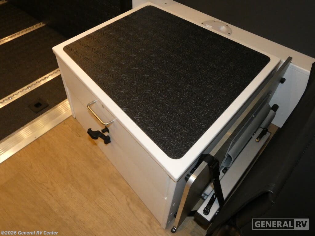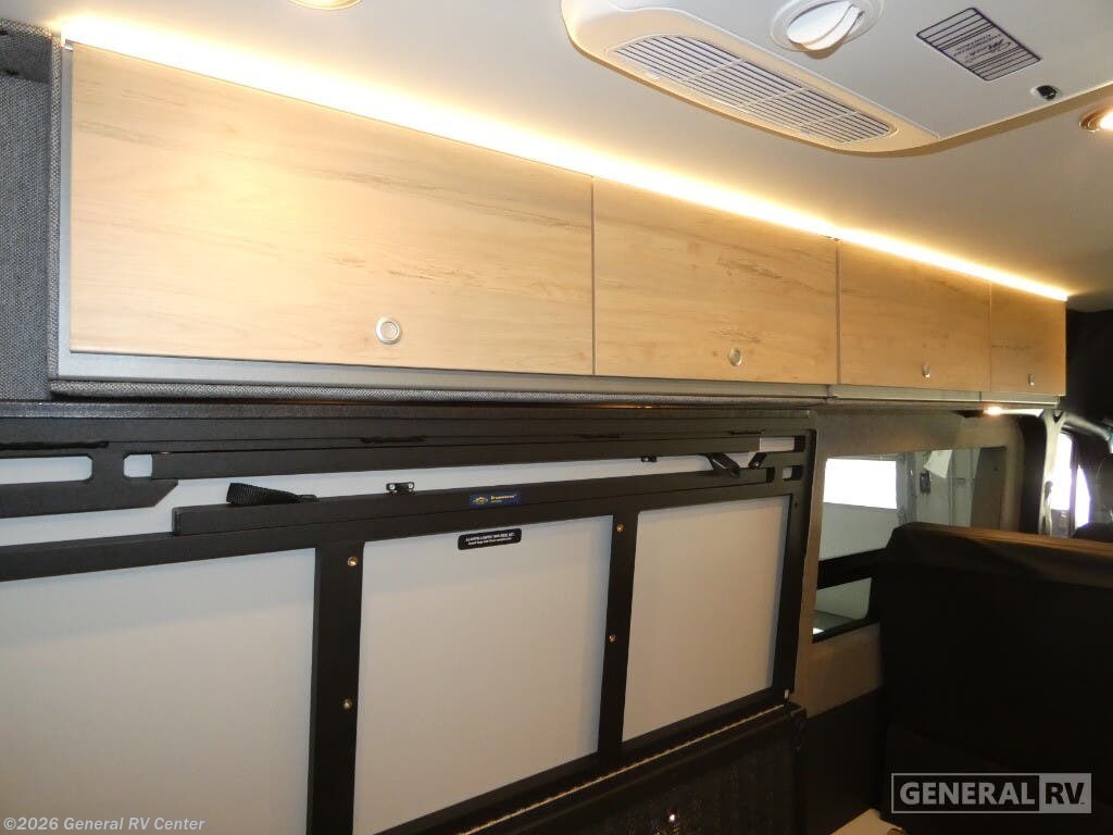 DARKMODE Graphics Package All-Terrain Tires Stainless Steel Microwave Cargo Area with L-Track Halo Shower You'll love the stealthy exterior of the DARKMODE OG! The GrooveLounge can seat two adults and can convert to a couch or bed, plus you'll have Dreamweaver bed that easily folds up to reveal a workspace. There is plenty of storage space throughout, including under the bed and in the removable upper cabinetry. You can whip up your best meals with the portable induction cooktop and stainless steel microwave, and the refrigerator/freezer will keep cold items fresh. There is also a stainless steel sink with a folding faucet and an exterior fold-down table if you want to get some fresh air as you prep dinner. You'll appreciate the Halo shower with a FlexSpace concealed shower pan, along with a portable toilet and hot water recirculation system. Live free, explore endlessly, and tell better stories with the Storyteller Overland Class B diesel van! With an all-wheel drive and diesel engine, the Storyteller Overland MODE OG models are always ready to go whenever you are! You can travel with complete peace of mind knowing that each van meets all of the qualifications for the various and rigorous safety tests, so it is safe. But the Storyteller Overland is also fun and rugged with its rugged roof rack with sonic wedge deflector, powered awning with dimmable LED lights, portable toilet, outside shower, and portable Bluetooth speaker. The HALO shower conveniently stores in a cabinet and includes a shower head and curtain that can be rolled up and stored when not in use, providing you with more living space! Additional features include an M-Power energy system powered by Lithionics, convenient bug screens, plus 110V outlets and USB ports to keep you charged up!