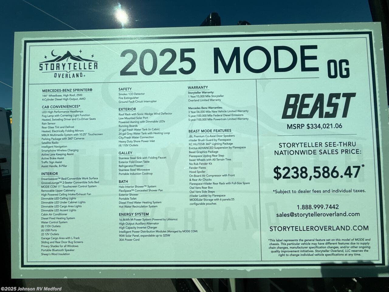 Request More Info on this 2025 Storyteller Overland Mode OG Beast Offered for sale by Johnson RV Medford