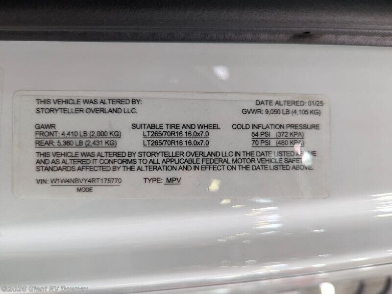 Request More Info on this 2025 Storyteller Overland Mode XO Classic Offered for sale by Giant RV