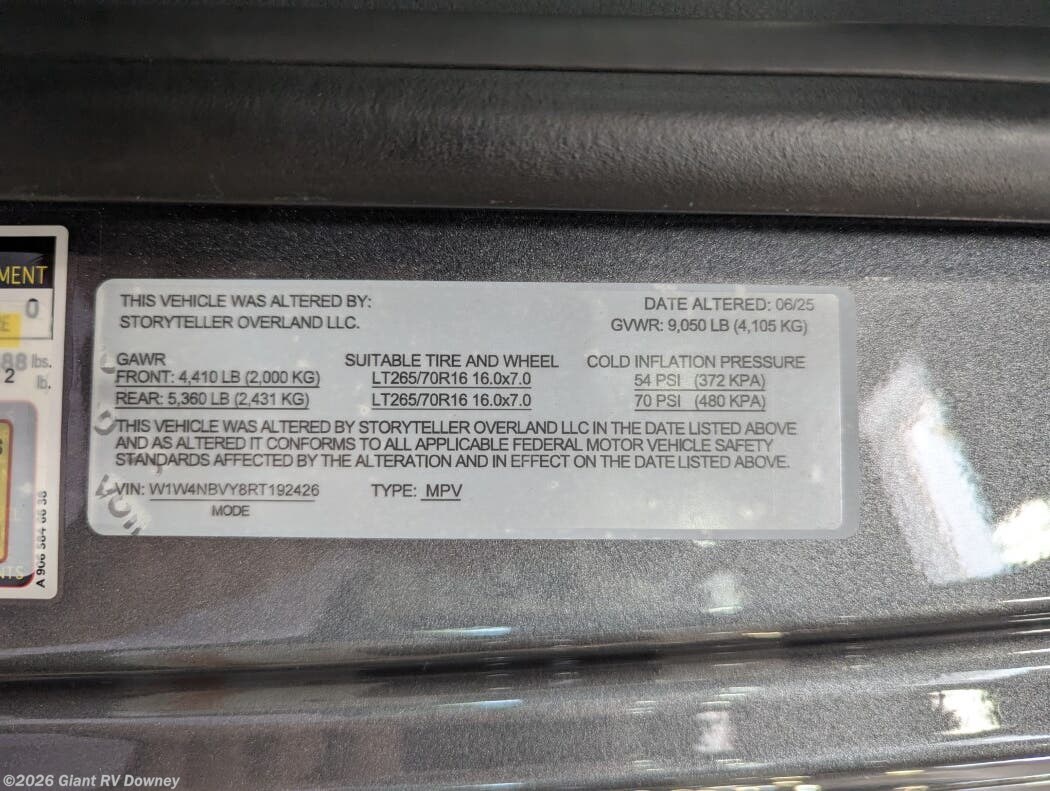 Discover boundless freedom with the 2025 Storyteller Overland Dark Mode OG Class B RV at Giant RV in California! This rugged 21’ camper van, ideal for adventurers, offers an AWD Mercedes-Benz Sprinter chassis with off-grid capability, perfect for remote escapes, sleeping up to 4.