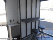 Get ready for a great camping experience where you can take along your favorite ride-on toys, kayaks, or other items that you may not normally have room to load as this toy hauler features a 6' 9" cargo width and 10' 11" cargo length. Once unloaded, set up with the rear bed that will make for a great night's rest. The front of this unit is shared with the wet bath and kitchen. Here, you can make meals on the two burner stove or in the microwave oven, and there is a refrigerator for perishables.