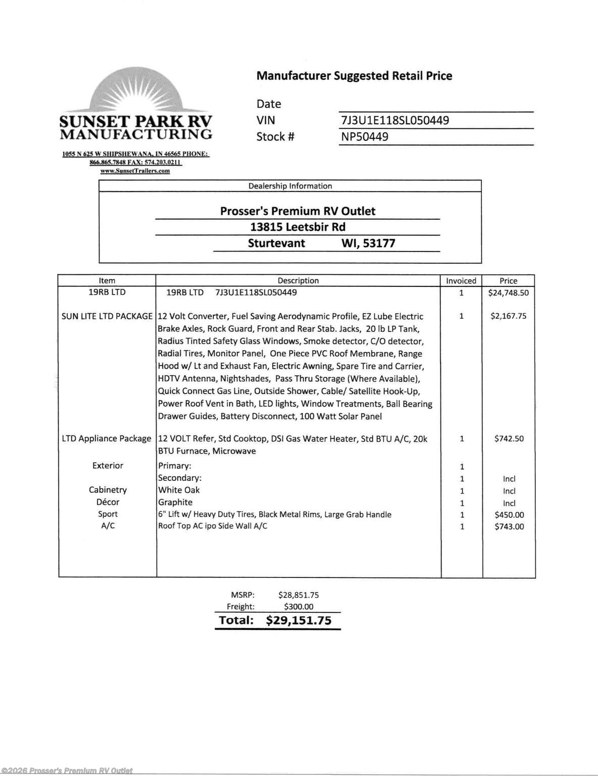 Request More Info on this 2025 Sunset Park RV Sun Lite LTD 19RB LTD Offered for sale by Prosser's Premium RV Outlet