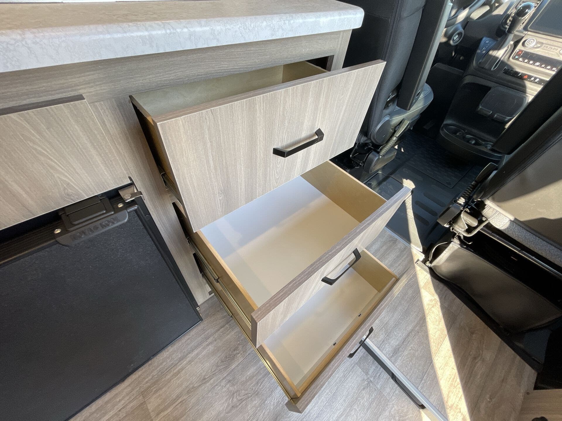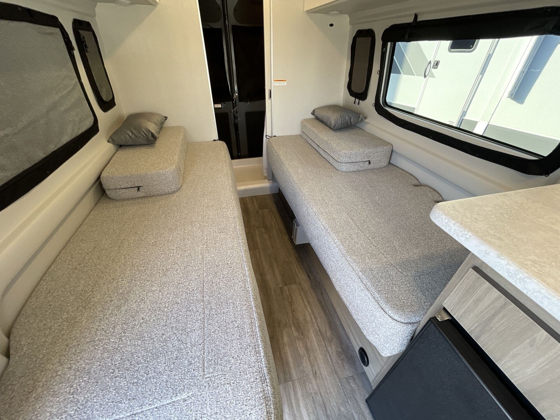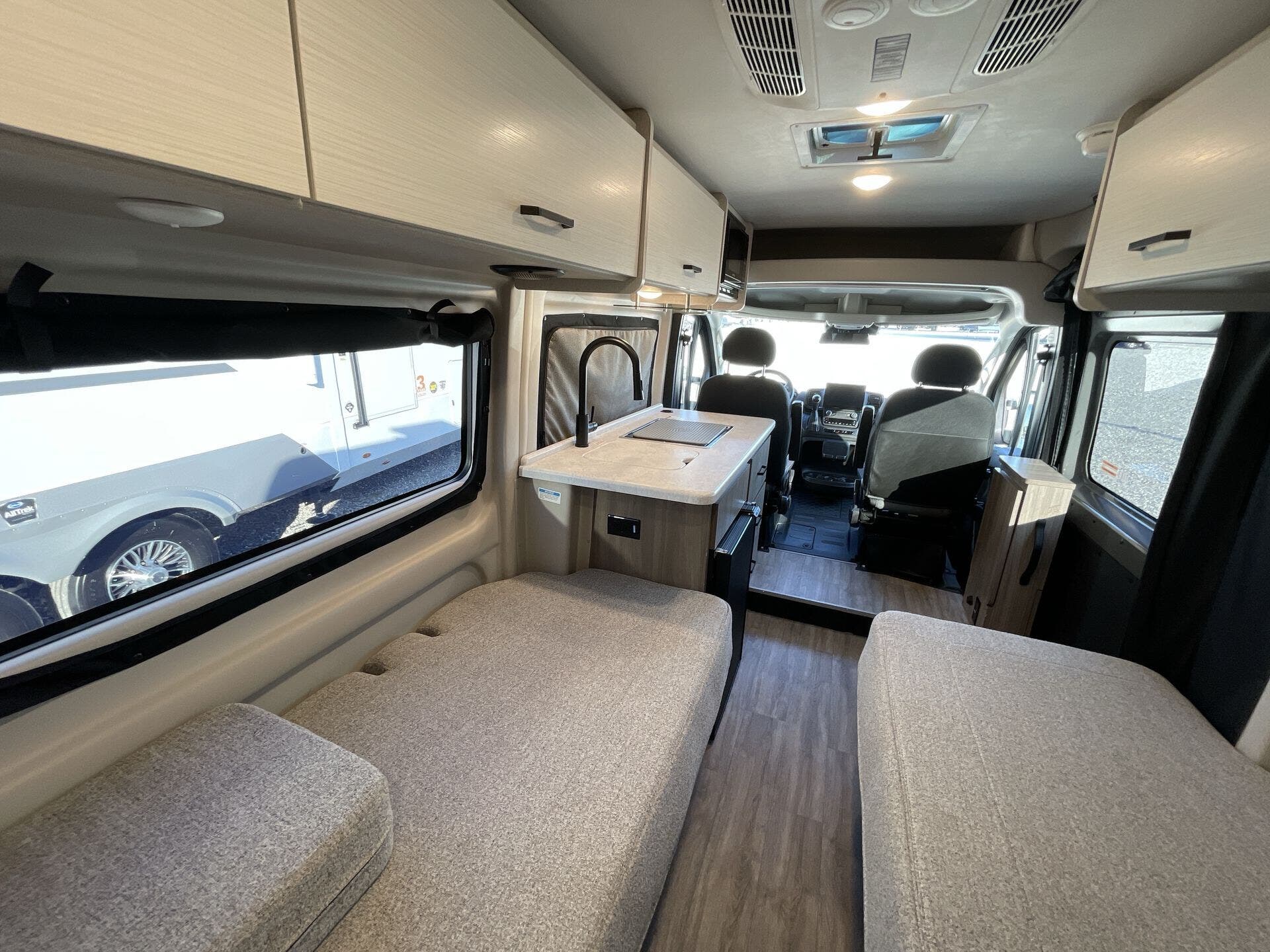 Inside, the Dazzle 2LB features a thoughtfully designed layout that maximizes comfort and functionality. The flexible living space easily transitions from daytime seating to a cozy sleeping area, while the well-equipped kitchenette and modern bathroom provide everything you need to stay self-contained on the road. Clean lines, contemporary finishes, and smart storage solutions create an open, inviting environment that feels far larger than its footprint.