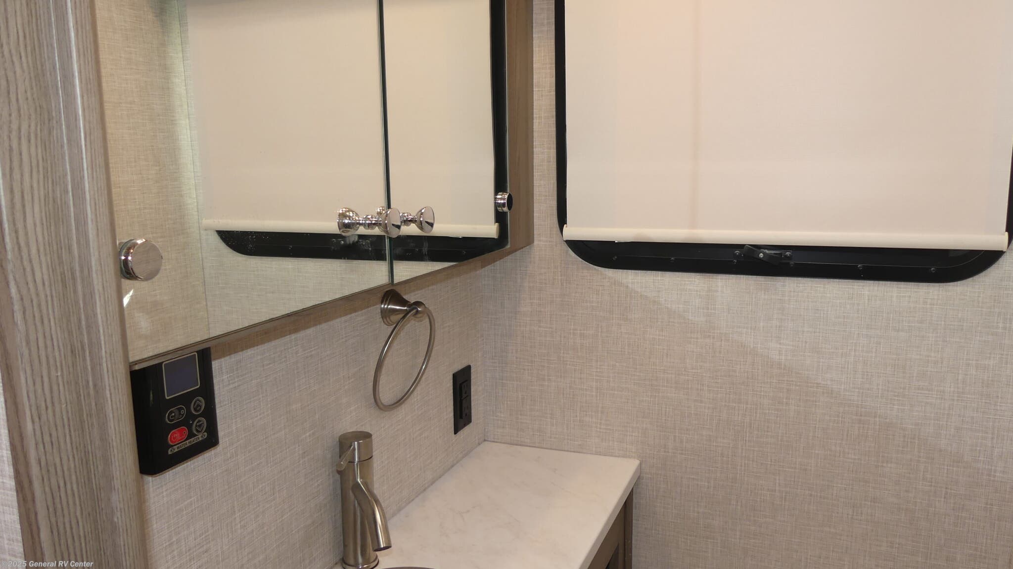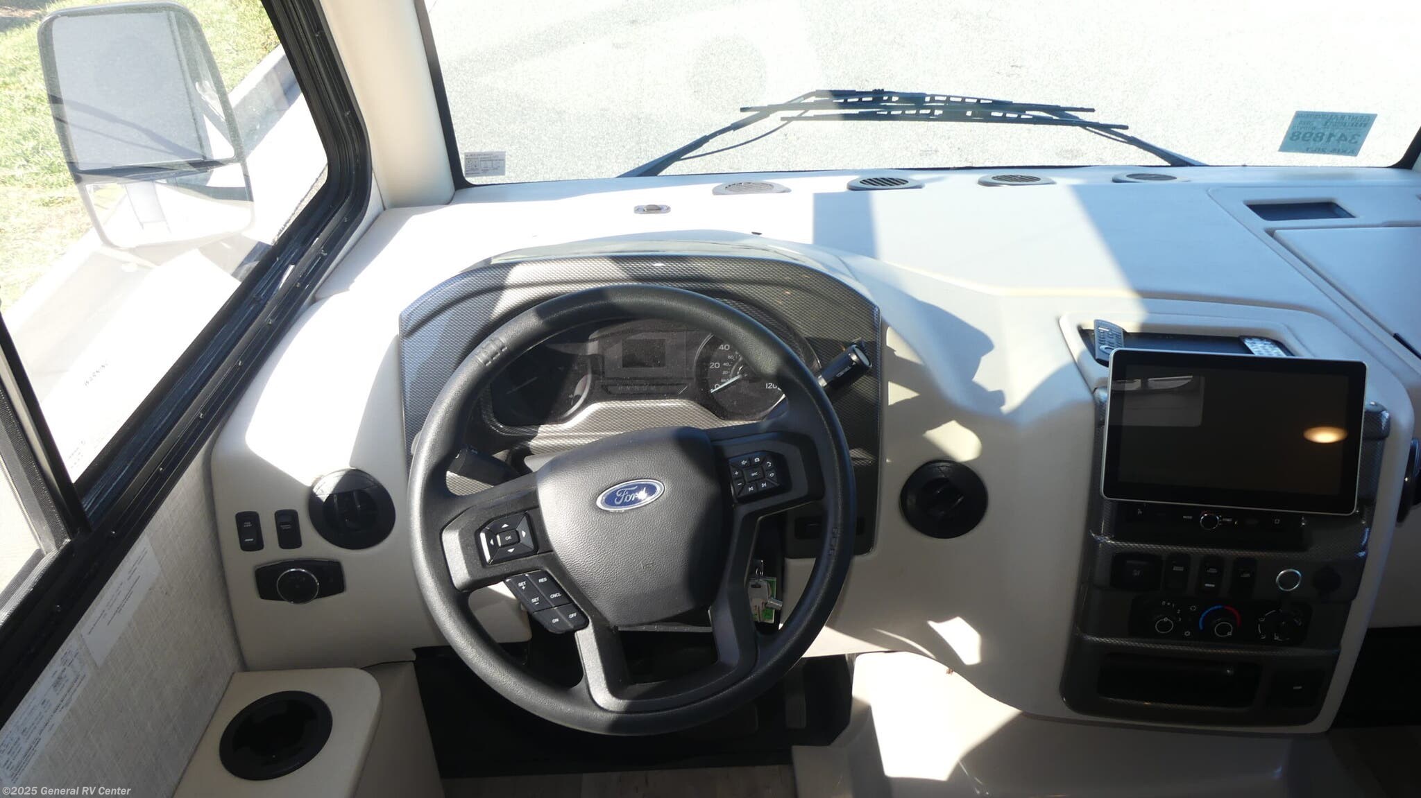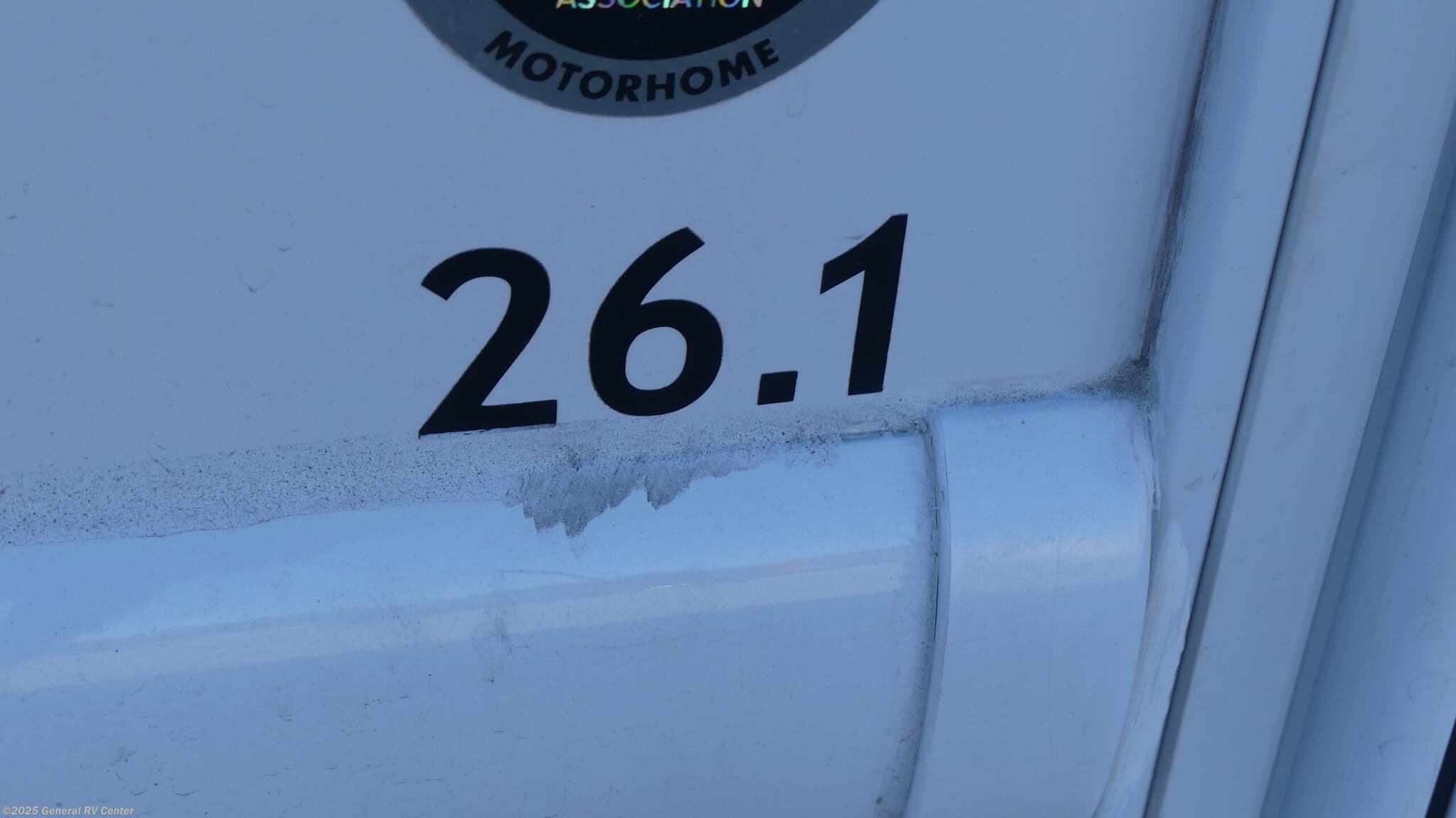 Experience the freedom of the open road with the 2025 Thor Motor Coach Axis 26.1. This compact yet spacious RV is designed for those who crave adventure without sacrificing comfort. At just over 27 feet, it offers a perfect blend of maneuverability and luxury. The front living area invites relaxation with its cozy theater seating and removable pedestal table, perfect for enjoying a meal or a movie night. The drop-down overhead bunk provides an additional sleeping area, making it ideal for small families or couples who love to entertain guests. The center kitchen is equipped with a two-burner cooktop and convection cooking, allowing you to whip up your favorite meals with ease. The mid-size electric refrigerator ensures your ingredients stay fresh throughout your journey. Retreat to the rear bedroom, where a comfortable queen bed awaits, surrounded by ample closet space for all your travel essentials. The bathroom, conveniently located in the center, features a shower with a curtain, offering a private oasis to refresh after a day of exploration. With a Ford E450 chassis and a robust 325 horsepower engine, this RV is ready to take you wherever your heart desires. The 18 ft. powered retractable awning extends your living space outdoors, providing the perfect spot to relax and enjoy the scenery. Visit your nearest General RV dealership to explore this remarkable motorhome and start your next adventure.