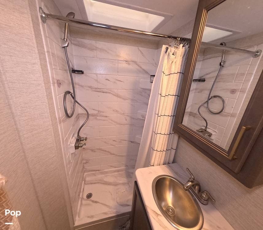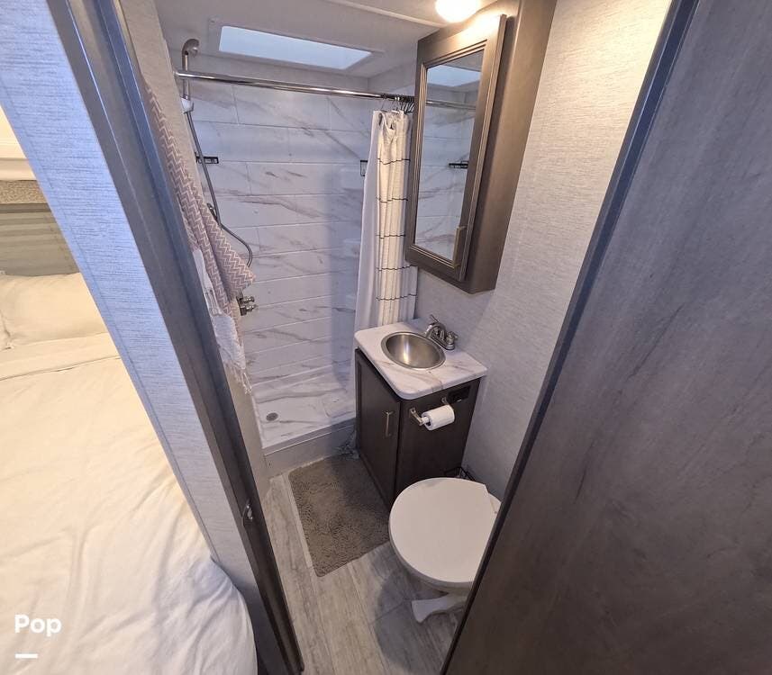The full bathroom features a shower, vanity, and ample storage, ensuring comfort wherever you are.