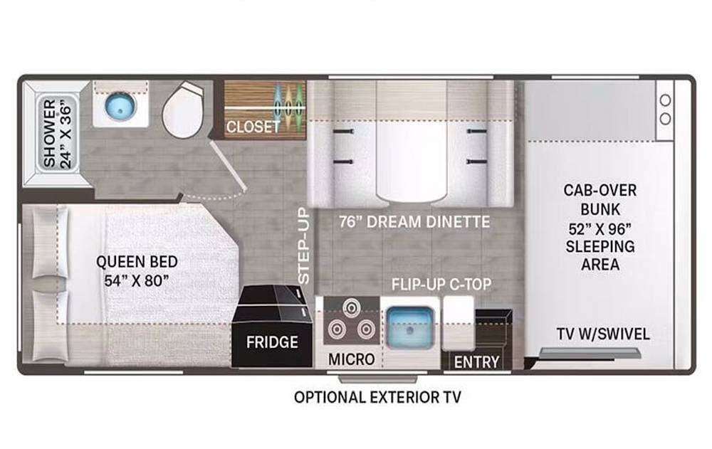Built on a reliable Ford E-Series chassis, this 24-foot beauty is easy to maneuver yet spacious enough to feel like home on the road.