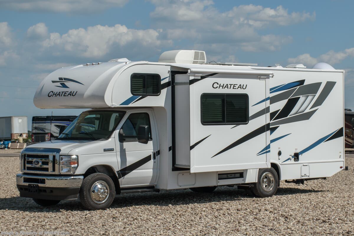 MSRP $158,741. The new 2025 Thor Motor Coach Chateau Class C RV 26X is approximately 27 feet 1 inches in length featuring the new Ford chassis with a 7.3L V8 engine and SmoothTECH Suspension. Additional options include electric stabilizing system, exterior pull-out tray with griddle, heated remote exterior mirrors with side cameras, leatherette driver/passenger chairs, cabover child safety net, exterior TV on swivel bracket with Bluetooth soundbar and radio and second auxiliary battery. The Chateau RV has an incredible list of standard features including power windows and locks, power patio awning with integrated LED lighting, in-dash media center AM/FM & Bluetooth, power vent in bath, skylight above shower, generator, cab A/C and so much more. Shop hundreds of class C gas RVs at 1 location! Choose from Fleetwood Altitude - Gulf Stream BT Cruiser - Thor Chateau - Four Winds - Geneva and Quantum - Entegra Coach Odyssey Odyssey SE and Esteem - East to West Entrada - Forest River Forester - Forester LE - Nexus Phantom - Viper and much more. We also sell quality pre-owned models such as Jayco Greyhawk – Redhawk - Redhawk SE - Thor Magnitude - Winnebago Spirit - and Minnie Winnie - Coachmen Freelander and Leprechaun - Forest River Sunseeker Classic - Sunseeker LE – Solera - Holiday Rambler Incline and much more. Visit for our complete line-up and the sale prices that have made us the #1 volume selling motor home dealership in the world 12 years in a row! For additional details on this unit and our entire inventory including brochures, window sticker, videos, photos, reviews & testimonials as well as additional information about Motor Home Specialist and our manufacturers please visit us at or call 800-335-6054. At Motor Home Specialist, we DO NOT charge any prep or orientation fees like you will find at other dealerships. All sale prices include a 200-point inspection, interior & exterior wash, detail service and a fully automated high-pressure rain booth test and coach wash that is a standout service unlike that of any other in the industry. You will also receive a thorough coach orientation with an MHSRV technician, a night stay in our delivery park featuring landscaped and covered pads with full hook-ups and much more! Read Thousands upon Thousands of 5-Star Reviews at and See What They Had to Say About Their Experience at Motor Home Specialist. WHY PAY MORE? WHY SETTLE FOR LESS?