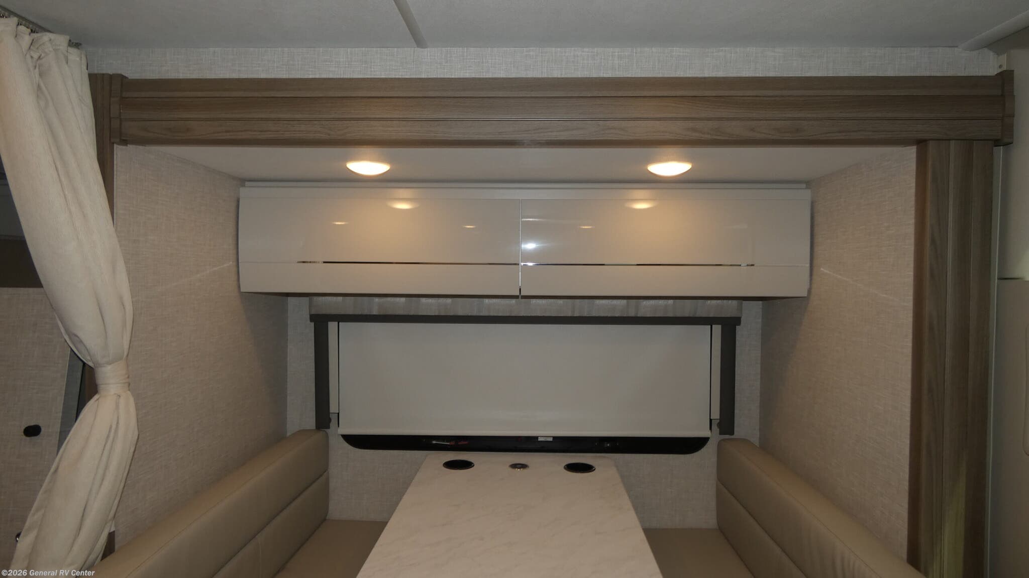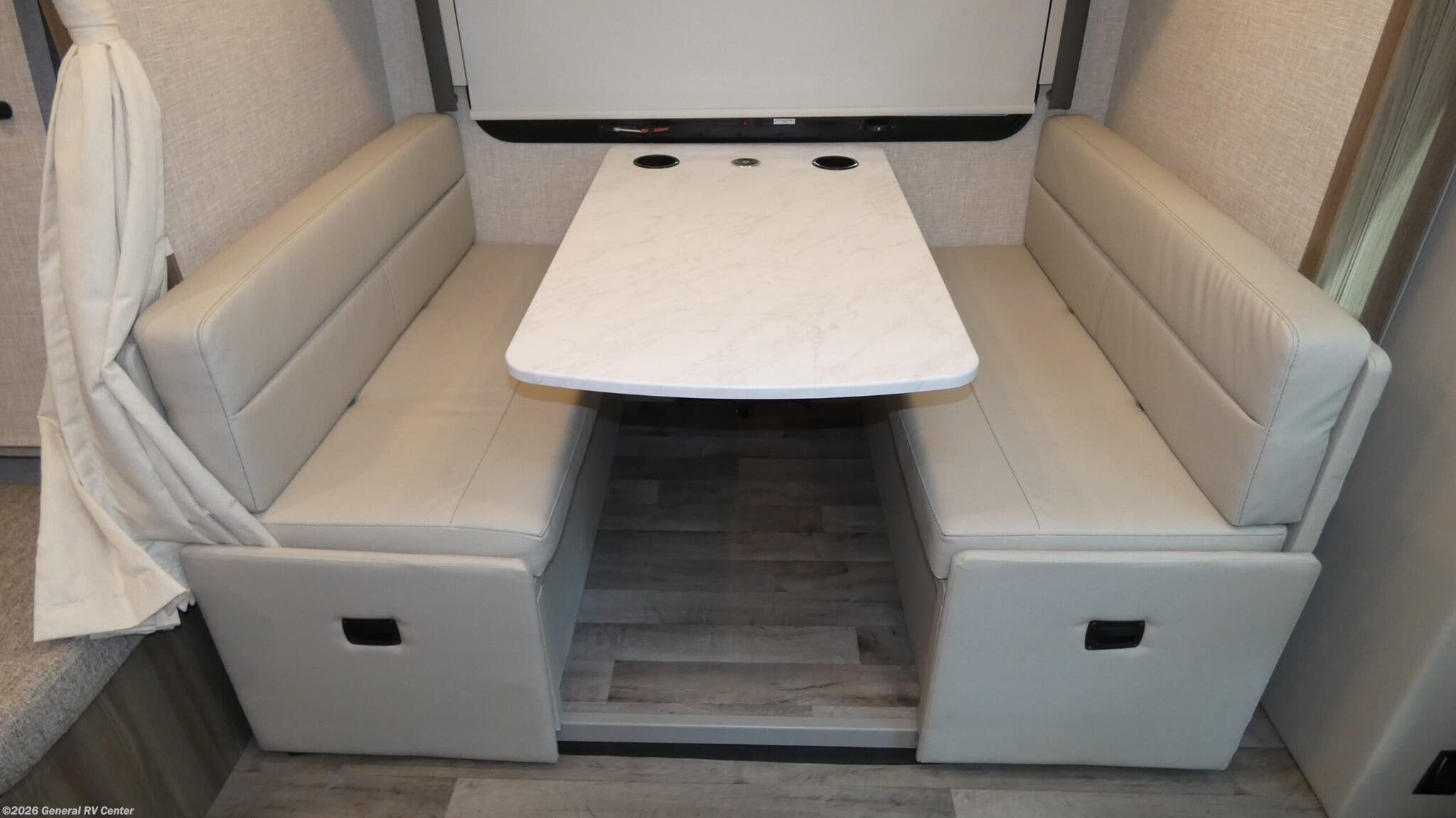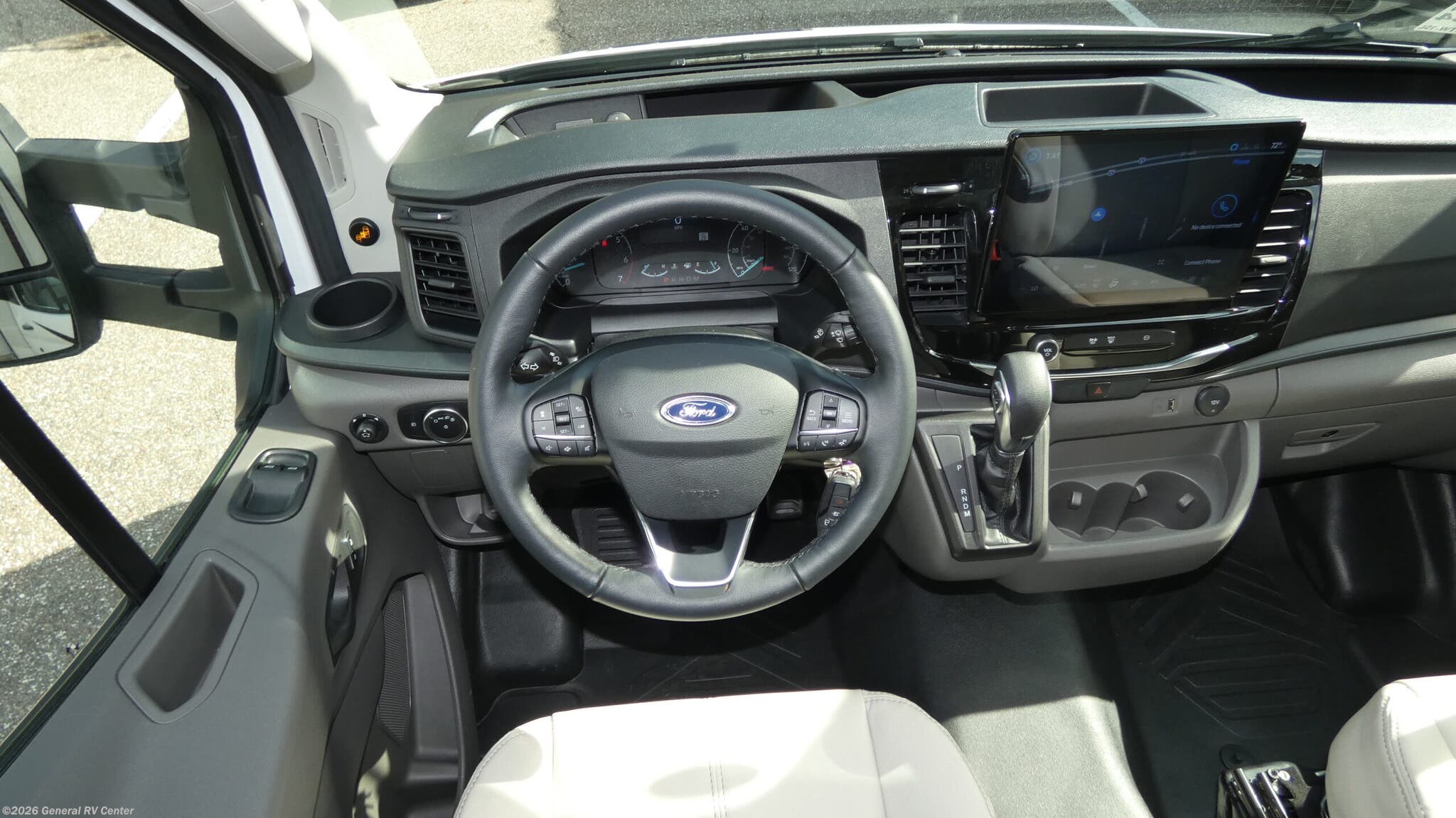 Thor Motor Coach Compass AWD Class B+ gas motorhome 23TW highlights: Flip-Up RV Queen Bed 68" Dream Dinette Full-Wall Slide 24" x 32" Shower Built-In Skylight Over Cab You can tour a local winery or trek up north to find a cozy and secluded camping spot with this Compass AWD Class B+ gas motorhome! All of your needs will be met with the excellent features and amenities included on this coach, like the full bathroom complete with a 24" x 32" shower, robe hooks, a shower skylight, a foot-flush toilet, and a power bath vent. The kitchen is ready to help you make mobile meals, and the 68" Dream Dinette is the perfect place for eating those meals or playing a game later on. At the dinette table top, you'll find a wireless phone charger with USB plug so that you can charge your phones. There is a privacy curtain that sections off the flip-up RV queen bed, and you'll also find a 32" Smart TV in the bedroom. The second 32" Smart TV is located out in the main living area for everyone else to watch. The Thor Motor Coach Compass AWD Class B+ gas motorhome is small but mighty! It includes all-wheel drive, and it is built upon a Ford Transit chassis, 3.5L V6 Eco Boost turbo gas engine, and Ford ten-speed automatic overdrive transmission. The Ford safety features provide excellent care while driving, and you can stay connected to your Compass AWD with the FordPass Connect. The power patio awning with LED lights can be moved out into position with just one touch on your cell phone thanks to the Rapid Camp+ multiplex control system. You will have a 100W solar panel with controller, a 15,000 BTU air conditioner, a Winegard ConnecT 2.0 Wi-Fi/4G/TV antenna, and a tankless water heater as some of the top electrical and plumbing features.