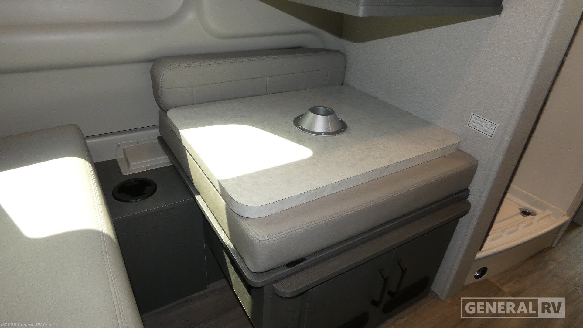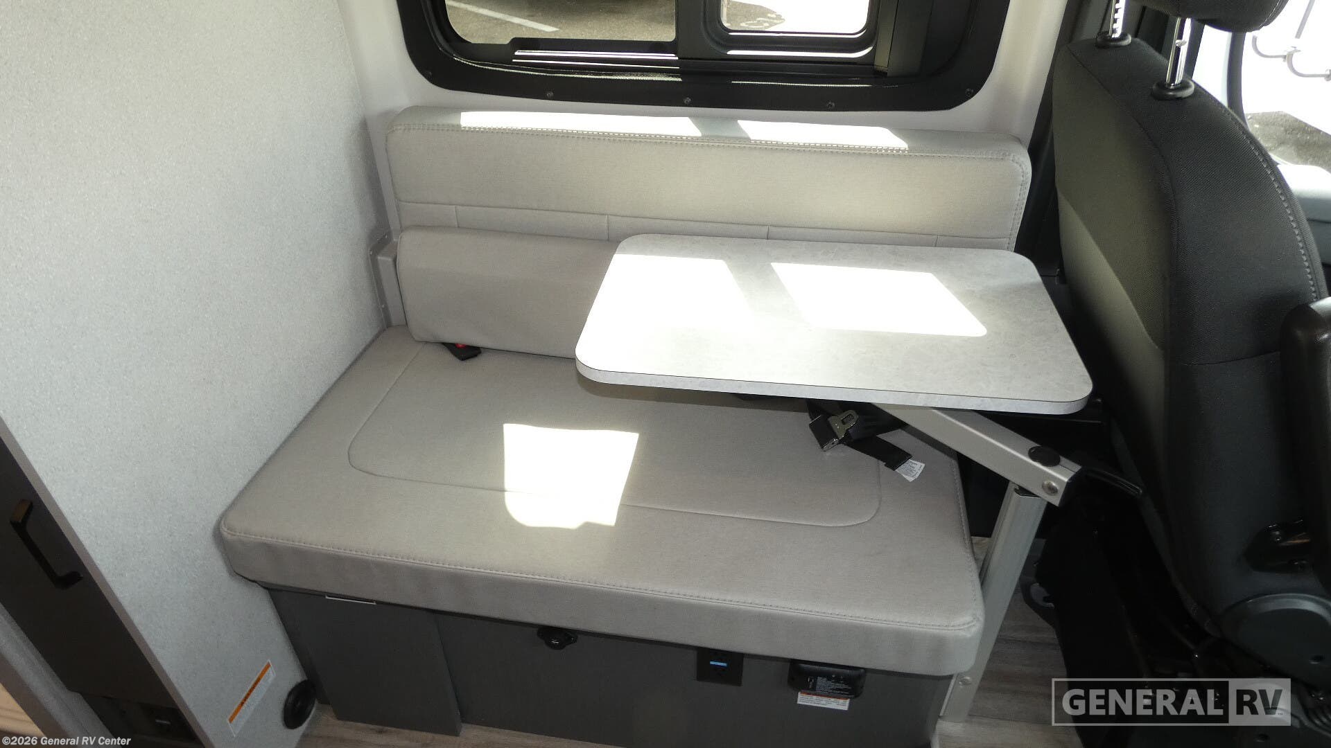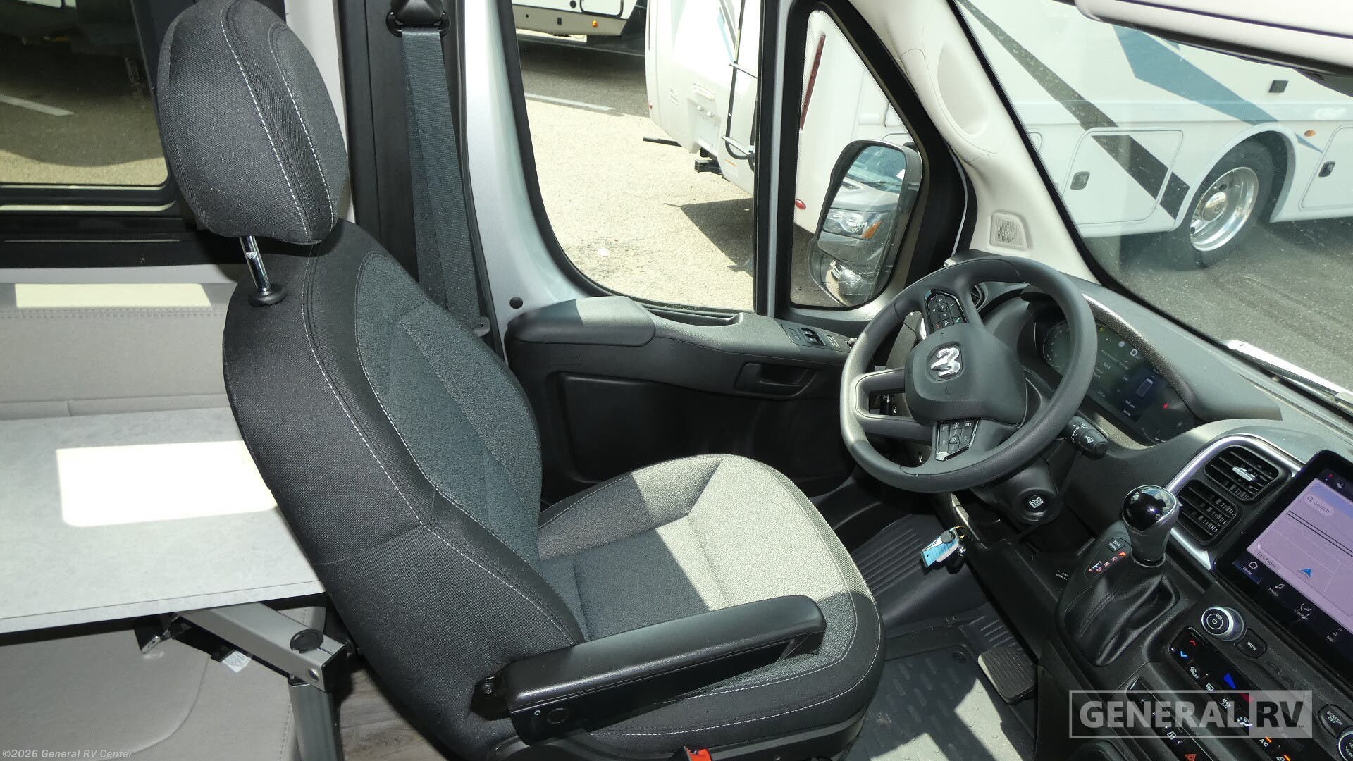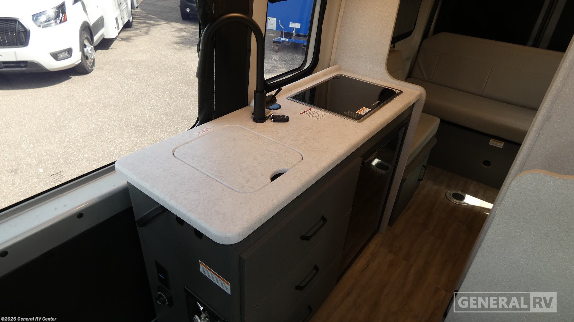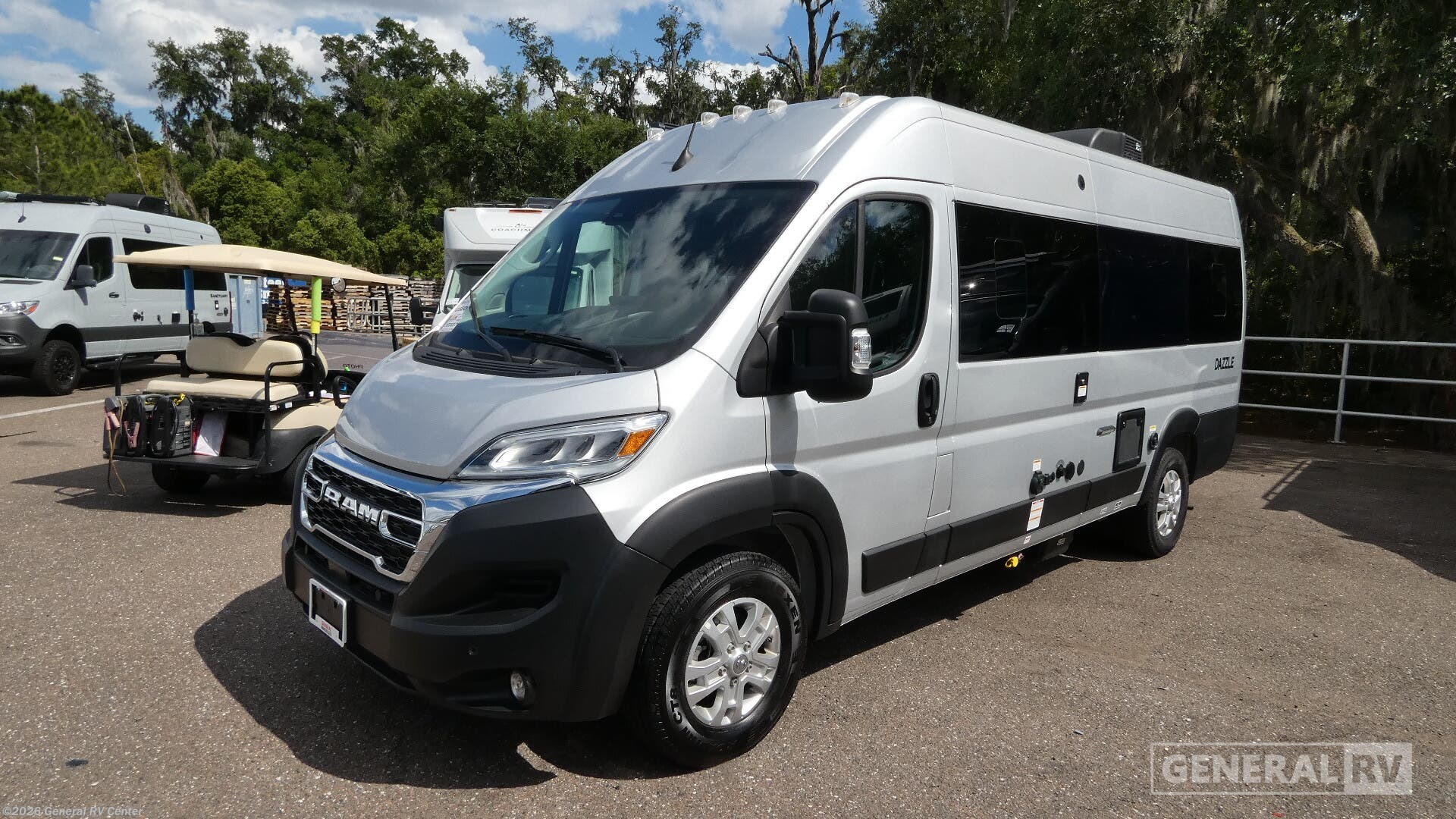 Thor Motor Coach Dazzle 2JB Class B Motorhome highlights: - Convertible Rear Sofa Sleeping Area - Swivel Front Captain’s Chairs - Fully Enclosed Wet Bath with Cassette Toilet The 2025 Thor Motor Coach Dazzle 2JB is a smartly designed Class B motorhome that blends everyday drivability with weekend-ready versatility. Built on the RAM ProMaster 3500XT chassis, this compact van is easy to maneuver while still delivering the features needed for comfortable travel. Inside, the 2JB layout is all about flexibility—perfect for solo adventurers or couples who want a simple, efficient setup without sacrificing comfort. At the rear, a lounge-style sofa easily converts into a spacious sleeping area, creating a relaxing living space during the day and a comfortable bed at night. Up front, the swivel driver and passenger captain’s chairs expand seating options, allowing the cab area to become part of the living space once parked. A removable table adds convenience for meals, work, or relaxing indoors. The kitchen is thoughtfully equipped with a single-door 12-volt refrigerator, a two-burner gas cooktop with glass cover, and a stainless-steel sink, giving you the essentials to prepare meals on the go. The fully enclosed wet bath includes a cassette toilet and shower, offering true self-contained camping capability in a compact footprint.
