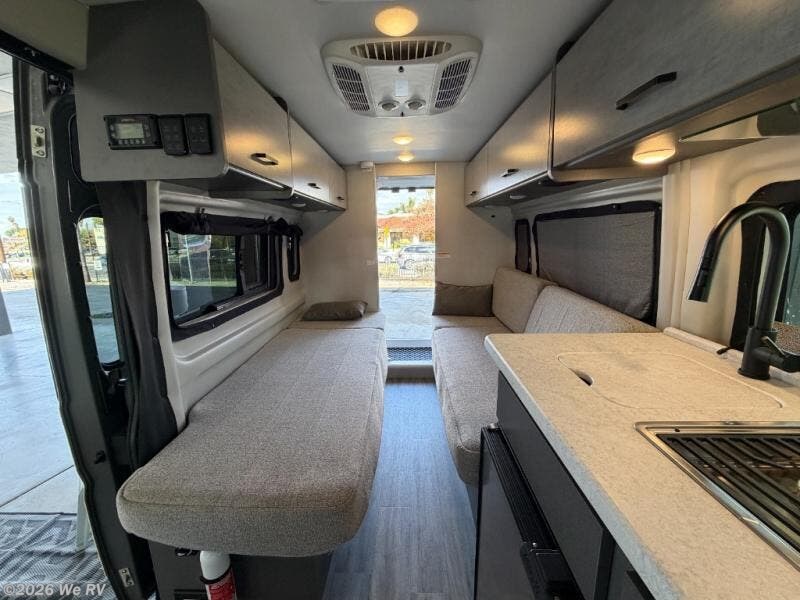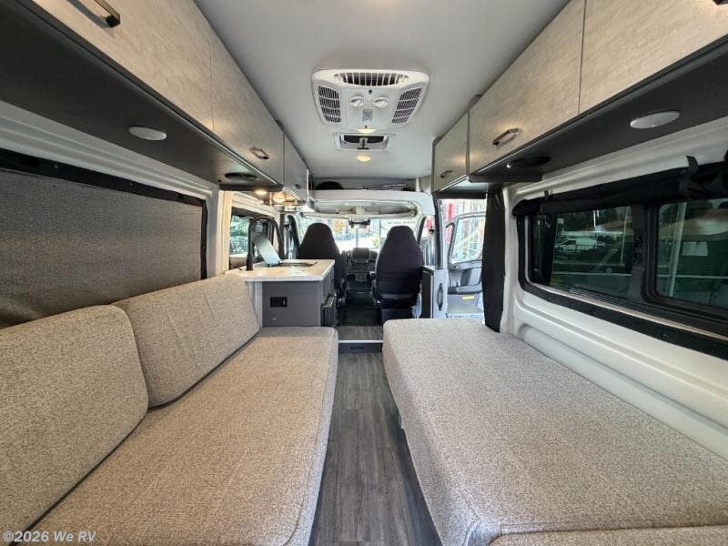 Plenty of amenities are packed into the Thor Motor Coach Dazzle Class B motorhome. Built on the RAM ProMaster® 3500XT gas window van chassis, these come with a 3,500 lb. trailer hitch, an Onan® RV QG 2800 gas generator, and a Truma® Combi Eco LP furnace and water heating system. You'll have a convenient Rapid Camp+® Multiplex wiring control system, which allows you to operate features like lights, generator, slides, awnings, HVAC, and more from an easy to use small handheld remote. Inside, you'll enjoy residential vinyl flooring, a soft-touch vinyl ceiling, and pressed countertops with an undermount sink and sink covers to name a few comforts.