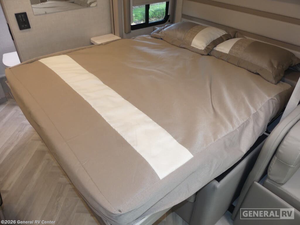 Step into the world of luxury and convenience with the 2025 Thor Motor Coach Delano 24FB. This compact yet spacious RV is designed for those who crave adventure without compromising on comfort. Measuring just over 25 feet, it offers a surprisingly roomy interior with a front living area that transforms effortlessly to accommodate up to five sleepers. The queen-size Murphy bed and convertible seating ensure you and your guests enjoy restful nights, while the cab-over bunk provides additional sleeping space with a touch of adventure. The Delano 24FB is built on a robust Mercedes-Benz Sprinter 4500 chassis, powered by a diesel engine that offers both power and efficiency. The center kitchen is equipped with a mid-size electric refrigerator, a two-burner cooktop, and convection cooking capabilities, making meal preparation a breeze. The rear bath, complete with a shower and privacy curtain, adds to the home-like feel. Outside, the 15-foot powered retractable awning invites you to relax and enjoy the great outdoors. With a towing capacity of 7,500 pounds, this RV is ready for any journey you have in mind. For more details and to experience it in person, visit your nearest General RV dealership.