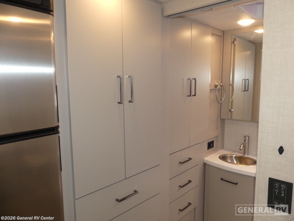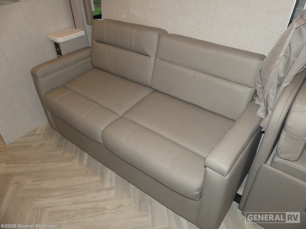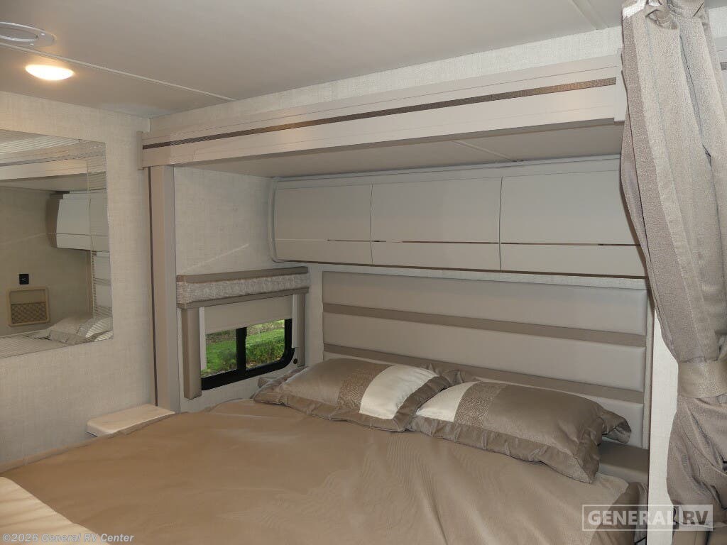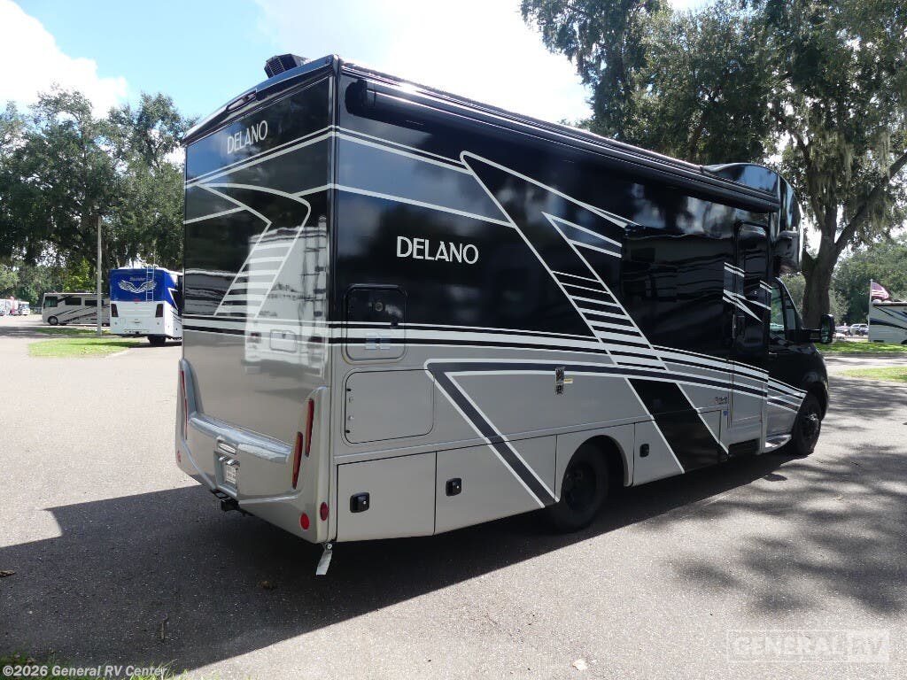 Step into the world of luxury and convenience with the 2025 Thor Motor Coach Delano 24FB. This compact yet spacious RV is designed for those who crave adventure without compromising on comfort. Measuring just over 25 feet, it offers a surprisingly roomy interior with a front living area that transforms effortlessly to accommodate up to five sleepers. The queen-size Murphy bed and convertible seating ensure you and your guests enjoy restful nights, while the cab-over bunk provides additional sleeping space with a touch of adventure. The Delano 24FB is built on a robust Mercedes-Benz Sprinter 4500 chassis, powered by a diesel engine that offers both power and efficiency. The center kitchen is equipped with a mid-size electric refrigerator, a two-burner cooktop, and convection cooking capabilities, making meal preparation a breeze. The rear bath, complete with a shower and privacy curtain, adds to the home-like feel. Outside, the 15-foot powered retractable awning invites you to relax and enjoy the great outdoors. With a towing capacity of 7,500 pounds, this RV is ready for any journey you have in mind. For more details and to experience it in person, visit your nearest General RV dealership.