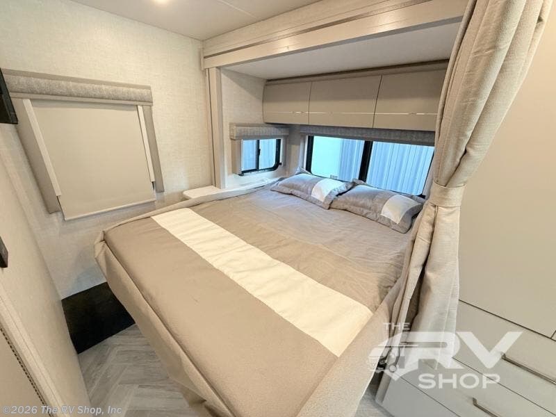 Luxury comes standard in the Delano Sprinter Class C diesel motorhomes by Thor Motor Coach. You will find it so easy to maneuver the road with the Mercedes-Benz Safety package that includes features such as active braking assist and distance regulator distronic plus that will help keep a safe distance from vehicles in front of you, and you can add the optional blind spot detection system for even more convenience. The frameless windows and the full-body paint package with gel coated sidewalls is sure to be eye-catching, plus there is invisible front paint protection for added defense against the elements. Each model includes the Rapid Camp+ multiplex wiring control system that will make set-up easier than ever, a Winegard ConnecT 2.0 WiFi/4G/TV antenna to keep you connected to the outside world, and premium one-piece Crossflex roofing material that is ultra durable. The Delano Sprinter also includes many interior comforts, like the easy-to-clean residential vinyl flooring, the Euro-style cabinetry, and the Leatherette furniture!