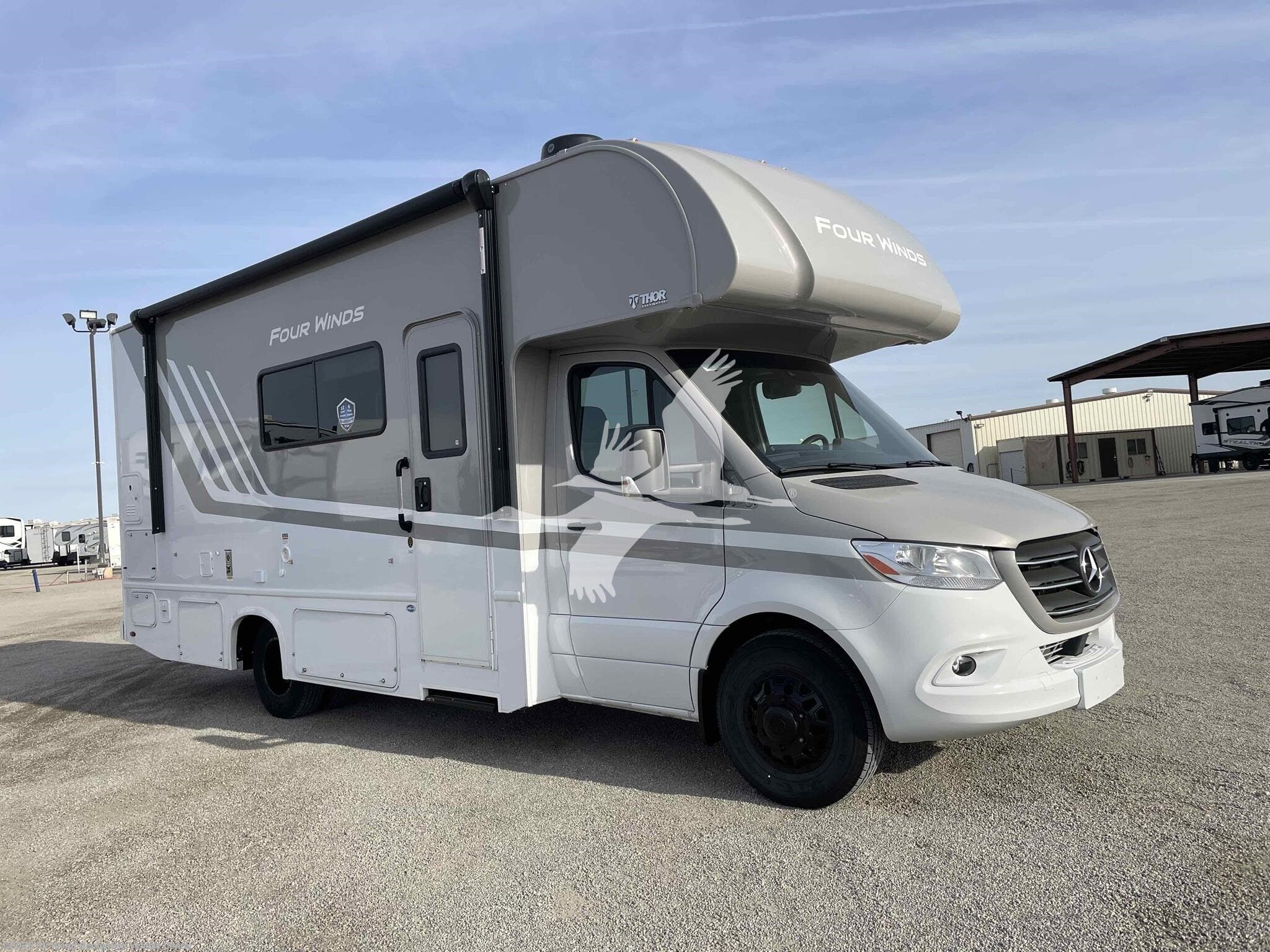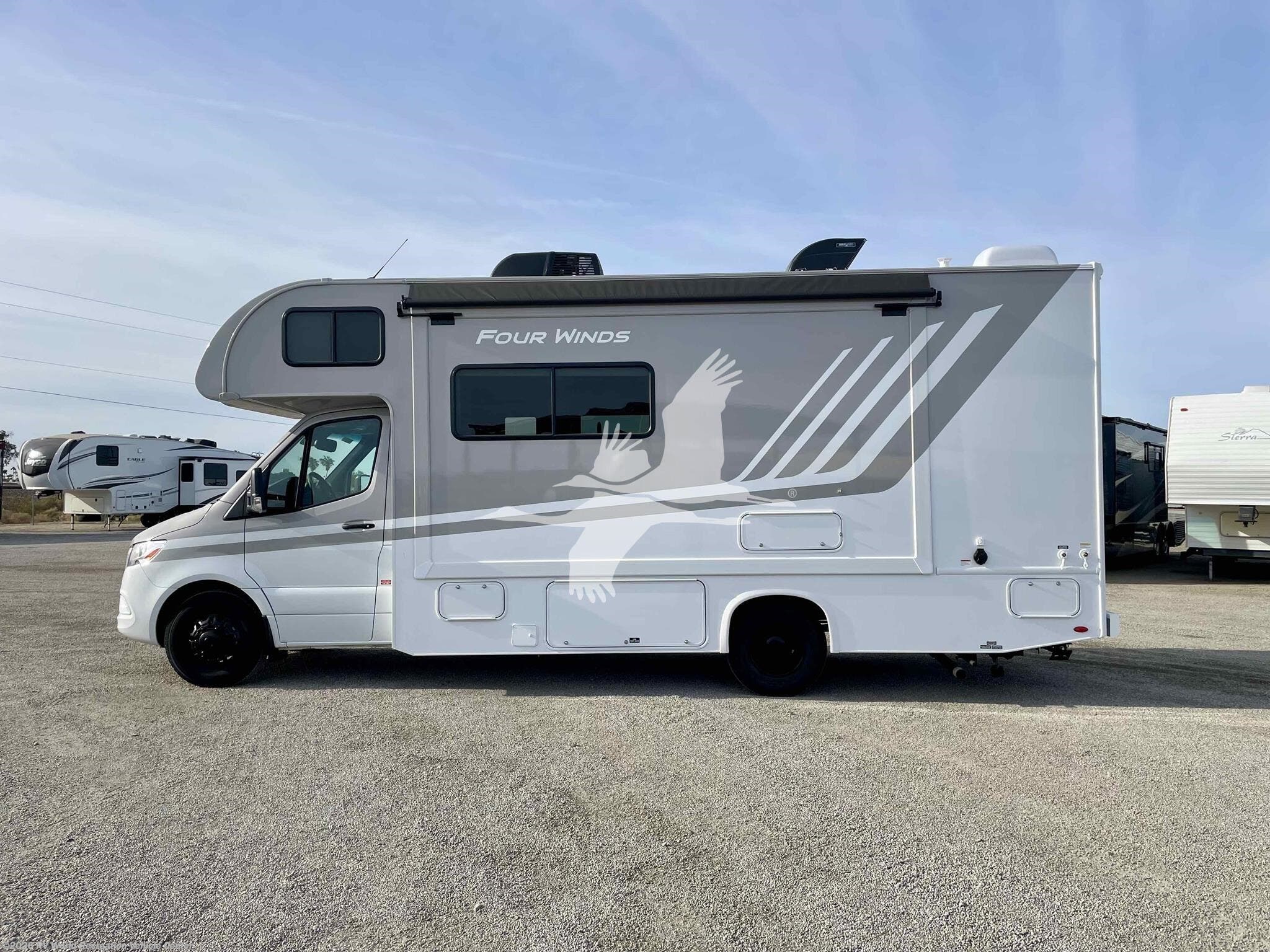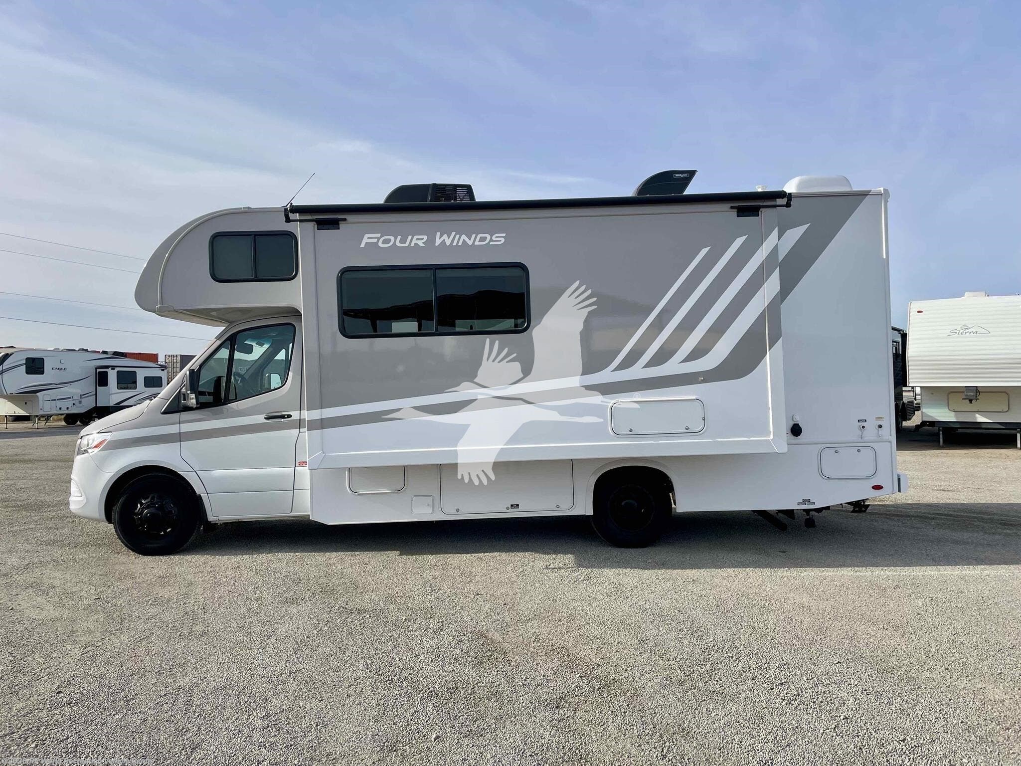 ****Stk#: TH18692.**** ------------- ON SPECIAL & JUST REDUCED!!! ----------- Perfect for family vacations or a weekend for two, the 2025 Four Winds® is made to fit you. The Four Winds Sprinter has everything you need to make your trip unforgettable. Easy to drive and easy to love, you’ll never want to leave. With multiple floor plans and decor colors, there’s something for every taste and style. Whether a solo traveler or a family of four, this Class C motorhome offers the perfect solution for your holiday adventures. The 24LT is 25' 10" in overall length so it's easy to drive and navigate even in city traffic. The 24LT features a Dream Dinette booth and Murphy Bed slide-out creating an abundance of space and comfortable seating inside. It will also sleep 4 people. Key Features include Mercedes-Benz Sprinter Chassis, Rotocast Storage Compartments, One-Piece Fiberglass Front Cap, Touchscreen Dash Radio with Back-Up Monitor, Heated/Remote Exterior Side Mirrors, 5,000 lb. Trailer Hitch, Leatherette Furniture, 3 Burner H/0 Gas Range Top & Convection Microwave Oven w/Air Fryer, Power Patio Awning w/lntegrated LED Lighting, Slide-Out Room Awning, Roof Ladder. Other features include 32" TV w/Blu-ray Player in Living Area, 100-watt Solar Charging, Tankless Water Heater, Outside Shower, Exterior LP BBQ Connection, 3.2kw Onan Diesel Generator, and more.
