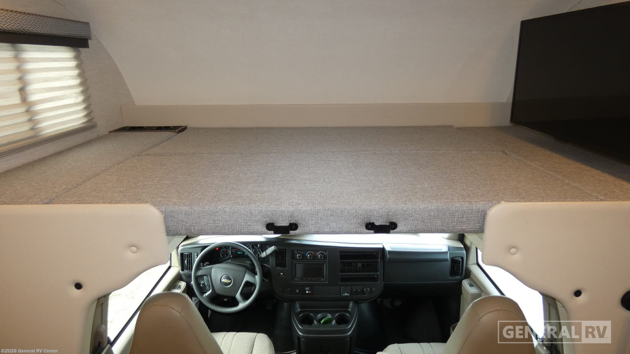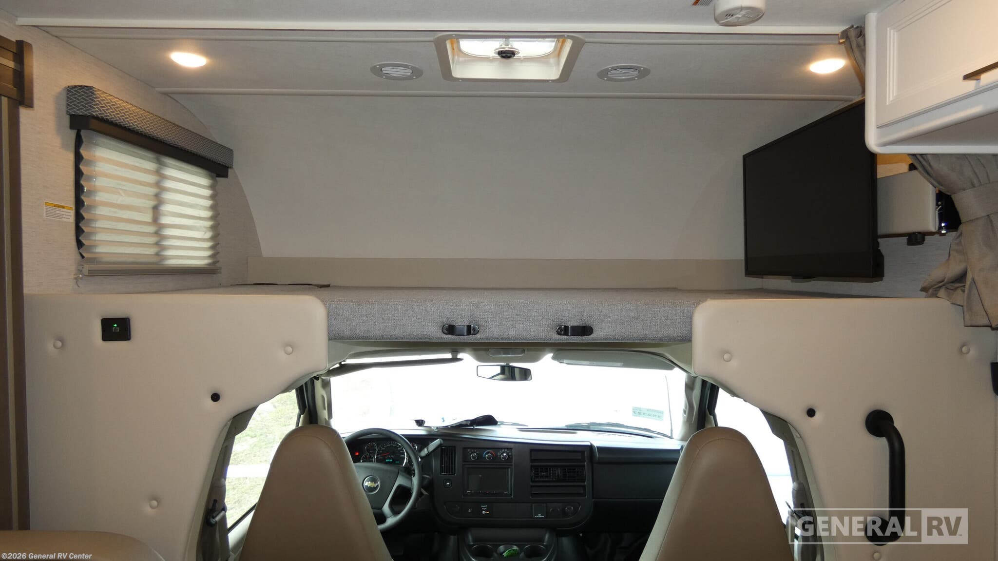 Thor Motor Coach Four Winds Class C gas motorhome 25V Chevy highlights: Convertible Twin Beds Dream Dinette Slide Cab Over Bunk USB Charging Center 12V Refrigerator When you are ready to travel with your family or friends, this coach can be the perfect traveling companion! From the rear twin beds with king conversion and a privacy curtain to the slide out dream dinette and cab over bunk offering more floor space, you can be cozy with one more person or even a few more! The mid-coach full bathroom will keep you clean after a hike, and the kitchen amenities will keep everyone fed with warm meals and the ability to store leftovers in the 12V refrigerator. There is a 40" Smart TV on swivel over the cab area to watch your shows or games, and you might like to add the optional exterior 32" TV for outdoor fun. With any Four Winds Class C gas motorhome, you can travel in a trustworthy chassis. Each is built with welded sidewall cage construction and a welded tubular aluminum roof, a one-piece fiberglass cap, and includes a slick fiberglass exterior with graphics package for style and years of enjoyment on the open road. Inside, you will enjoy the well-equipped kitchen, the spacious bathroom, the sleeping accommodations and the Winegard ConnecT 2.0 WiFi/4G/TV antenna that allows you to stay connected. With several floorplans to choose from, you will surely find one that fits your family's needs or your friend's approval. Choose today!