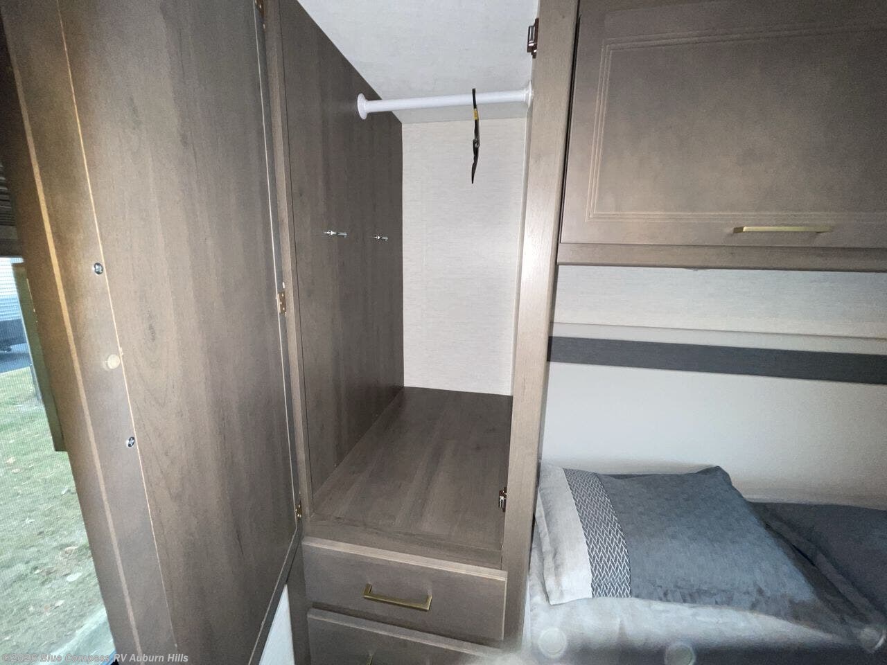 Perfect for a couple or a growing family, this coach will allow you to enjoy inside comforts and outdoor scenery where ever you drive and park! You will have great views out of the many windows when you are indoors, and the power awning offers an outdoor living area protected by the elements when you want some fresh air. The cook will love the large single bowl stainless steel sink with a single handle faucet with a pull-down sprayer when cleaning fruits and veggies, the gas cooktop and microwave when making meals, as well as the 12V refrigerator to hold all the cold items. The slide out creates even more floor space, the furniture offers a place to dine and visit as well as sleep, and the private bedroom with a full bathroom just steps away will complete the deal! You will also appreciate the optional exterior kitchen and optional exterior TV for more choices!