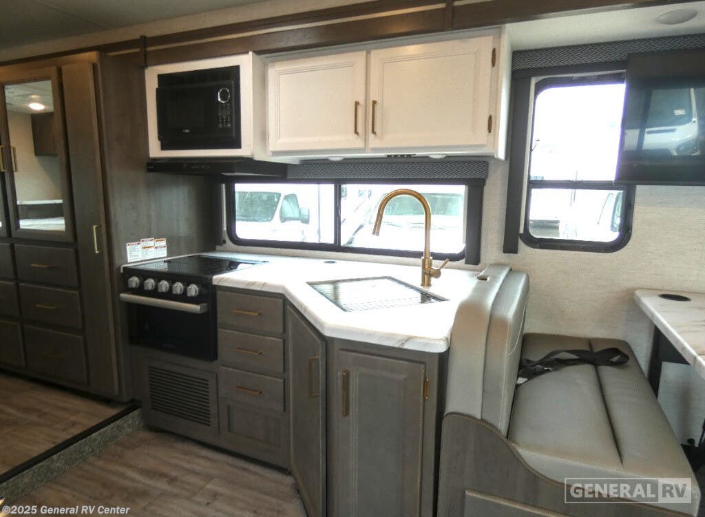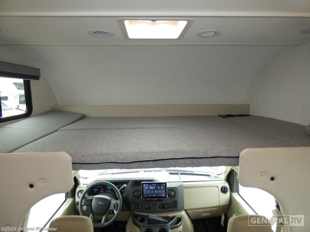 Step into the 2025 Thor Motor Coach Four Winds 31WV, where adventure meets comfort in a beautifully crafted motorhome. This RV is designed for families and friends, offering sleeping accommodations for up to eight people with a mix of a cozy queen bed, a versatile double bed, and two convertible sleeping areas. The spacious interior is enhanced by a single slide-out that expands the living area, creating a welcoming space for relaxation and entertainment. The front living area features a 71" Dream Dinette and a 68" Jack-Knife Sofa, perfect for gathering after a day of exploring. The center kitchen is equipped with a three-burner cooktop and a mid-size electric refrigerator, ensuring you have all the amenities needed to prepare your favorite meals on the road. The rear bedroom offers a peaceful retreat with ample storage, including closets and a dresser. The 16 ft. powered retractable awning extends your living space outdoors, allowing you to enjoy the beauty of nature in comfort. Built on a sturdy Ford E450 chassis with a powerful 325 horsepower engine, the Four Winds 31WV is ready to take you on your next journey with confidence and style. For more details, visit your nearest General RV dealership.