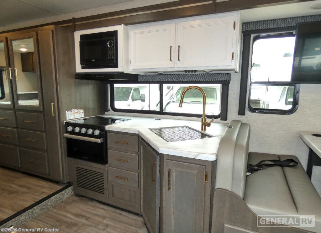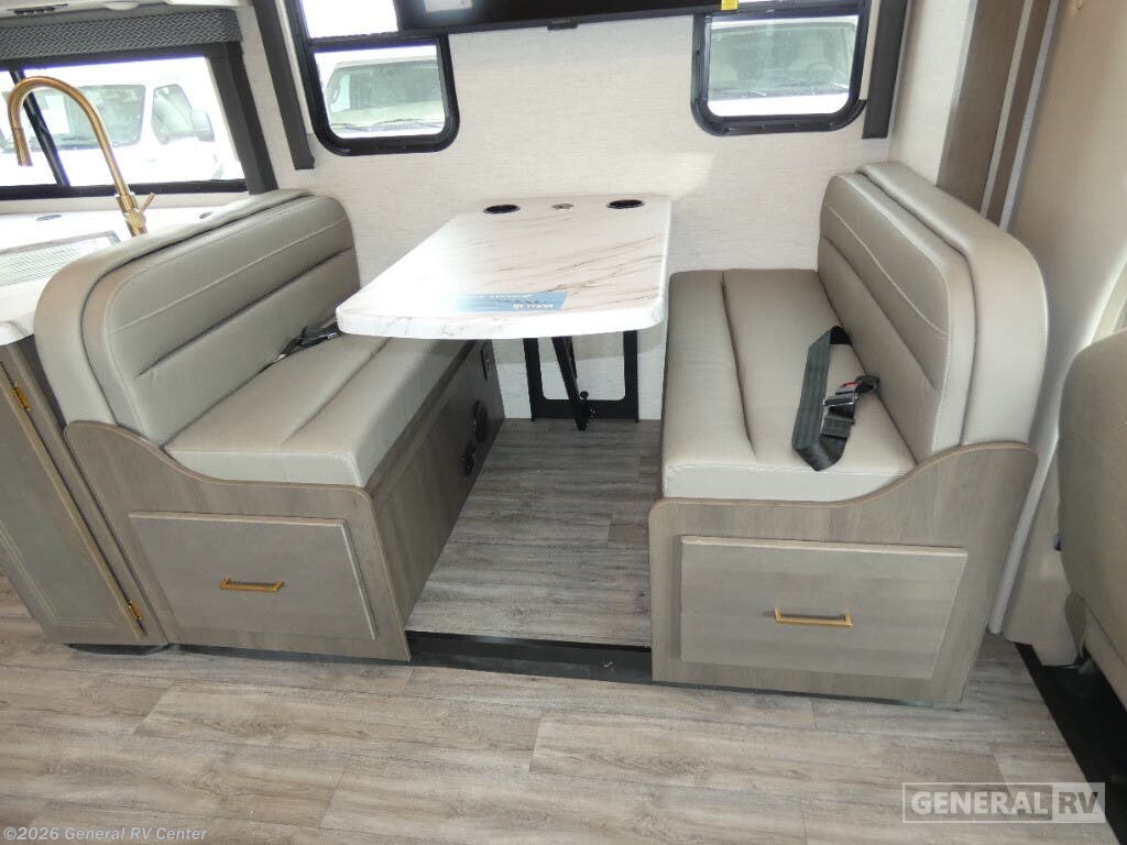 Step into the 2025 Thor Motor Coach Four Winds 31WV, where adventure meets comfort in a beautifully crafted motorhome. This RV is designed for families and friends, offering sleeping accommodations for up to eight people with a mix of a cozy queen bed, a versatile double bed, and two convertible sleeping areas. The spacious interior is enhanced by a single slide-out that expands the living area, creating a welcoming space for relaxation and entertainment. The front living area features a 71" Dream Dinette and a 68" Jack-Knife Sofa, perfect for gathering after a day of exploring. The center kitchen is equipped with a three-burner cooktop and a mid-size electric refrigerator, ensuring you have all the amenities needed to prepare your favorite meals on the road. The rear bedroom offers a peaceful retreat with ample storage, including closets and a dresser. The 16 ft. powered retractable awning extends your living space outdoors, allowing you to enjoy the beauty of nature in comfort. Built on a sturdy Ford E450 chassis with a powerful 325 horsepower engine, the Four Winds 31WV is ready to take you on your next journey with confidence and style. For more details, visit your nearest General RV dealership.