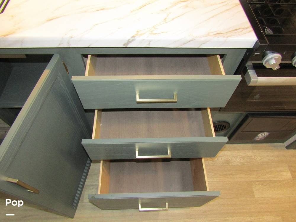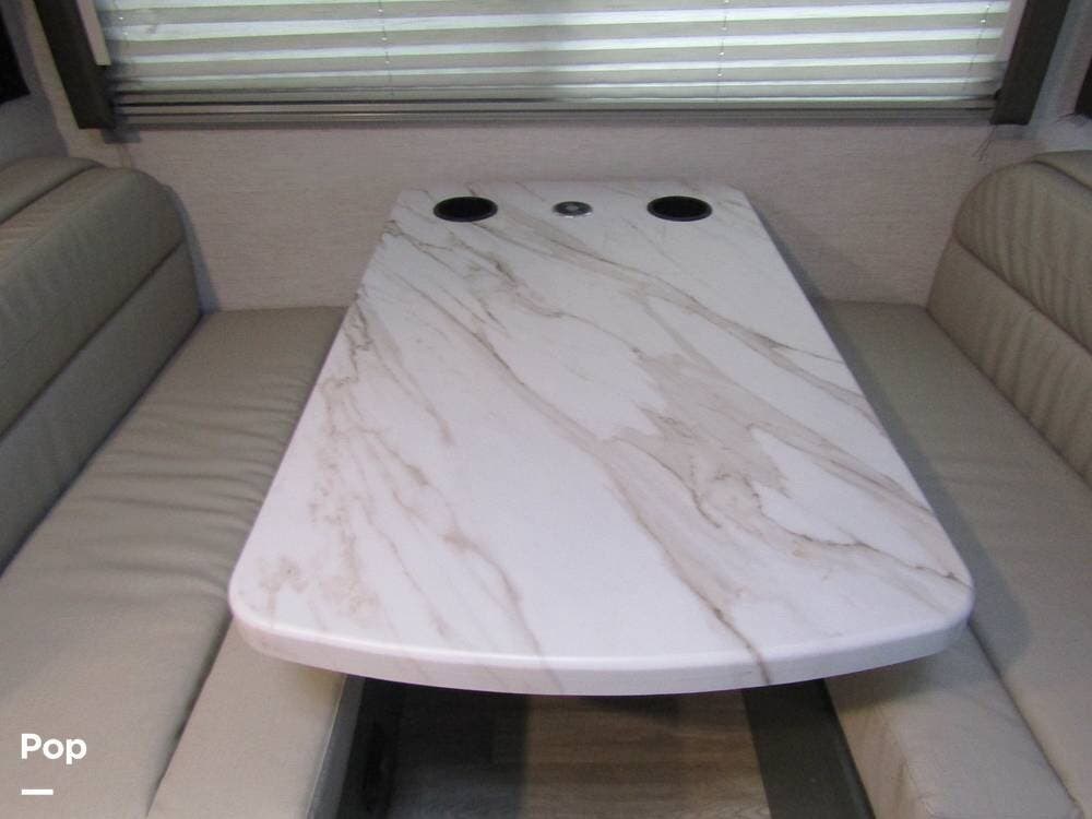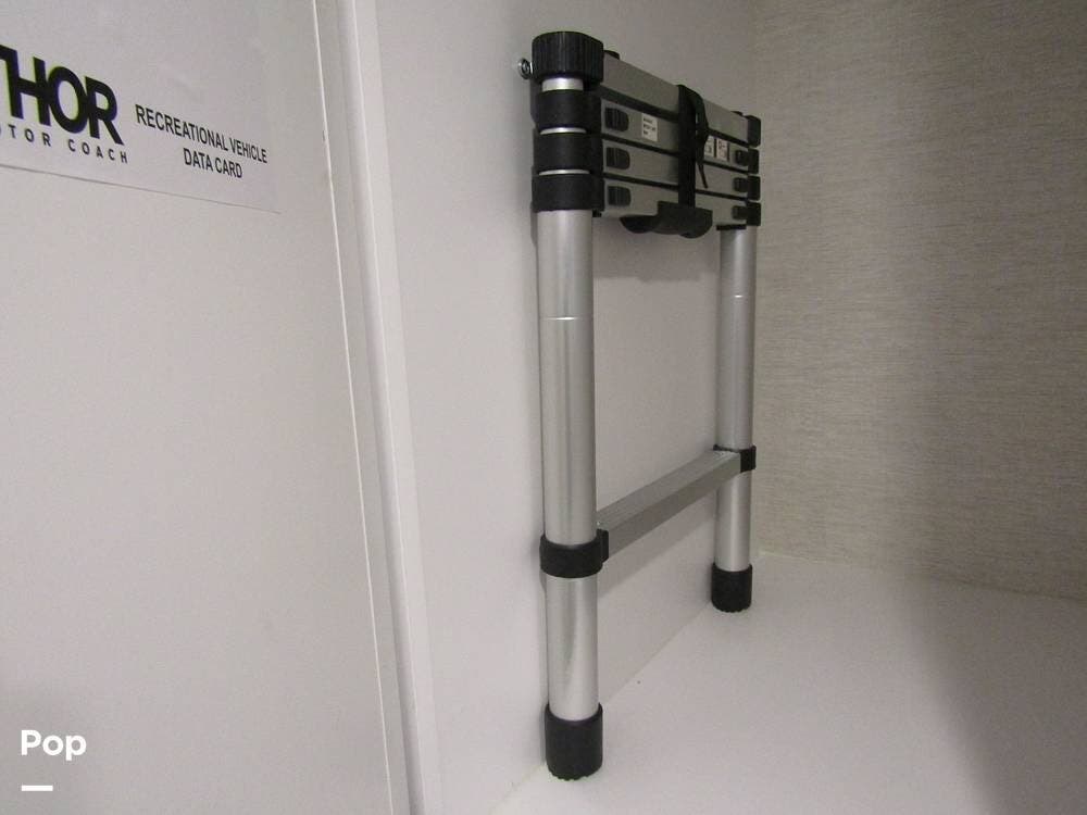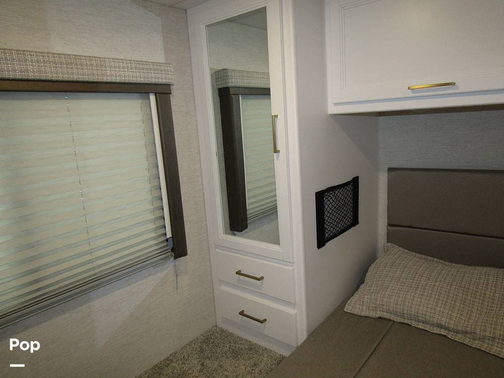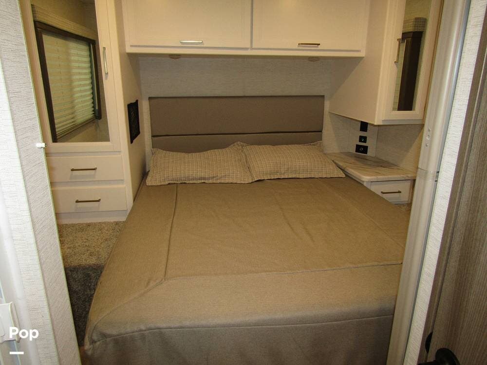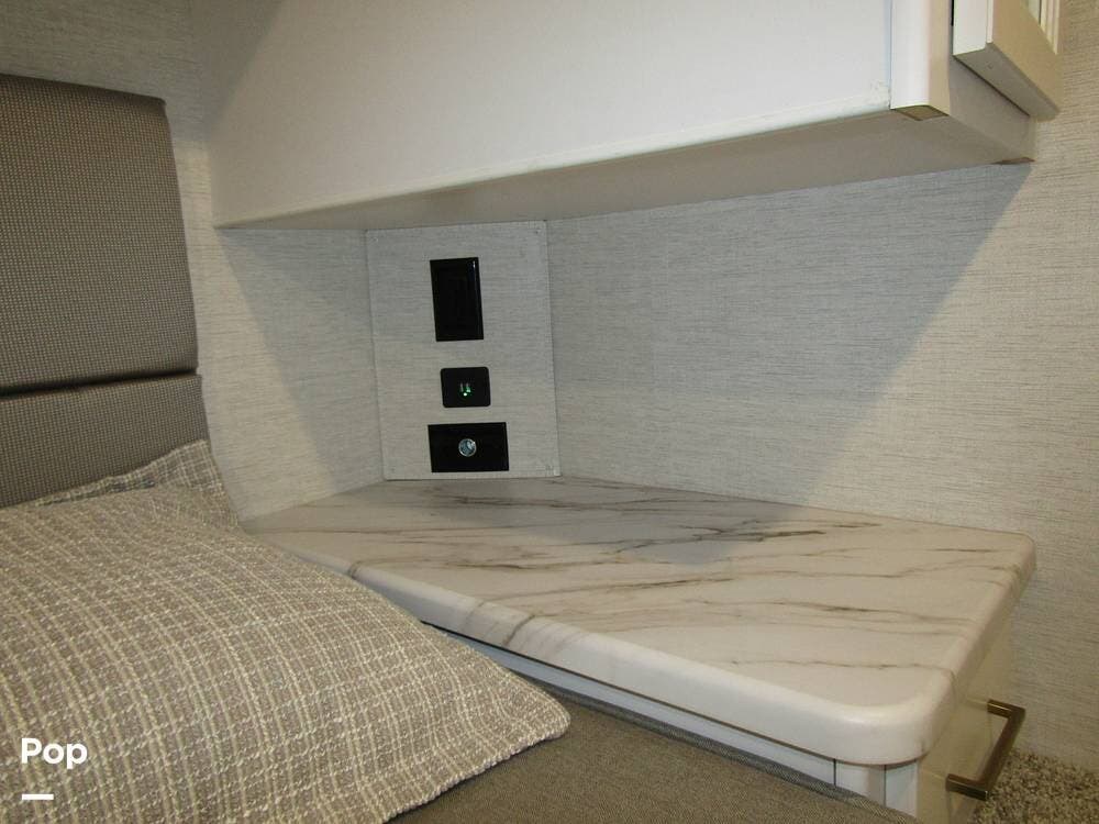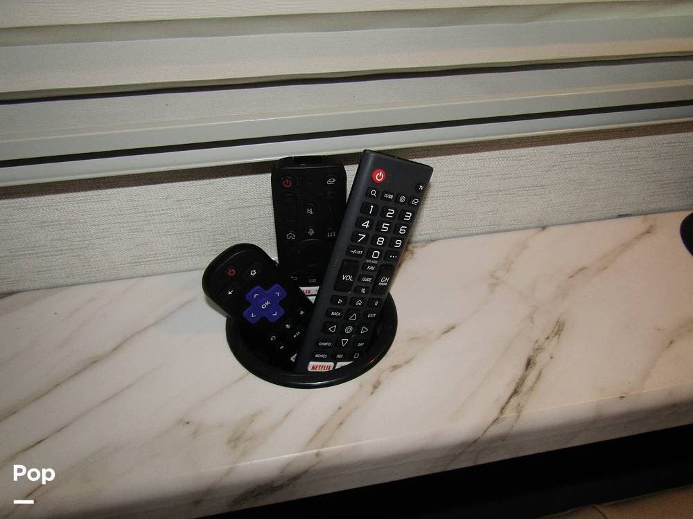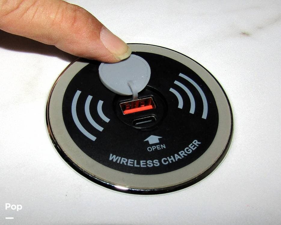 Once you're on board, you'll see how comfortably and ergonomically this RV was designed. Family members, as well as guests, will love the intuitive layout, like the cab-over full-size bunk with a pivoting flat-panel TV, and a telescoping ladder, which stows in the master bedroom. There's also a handy convertible dinette sleeper, a jack-knife sofa, pop-up power towers, and even a wireless phone charger.