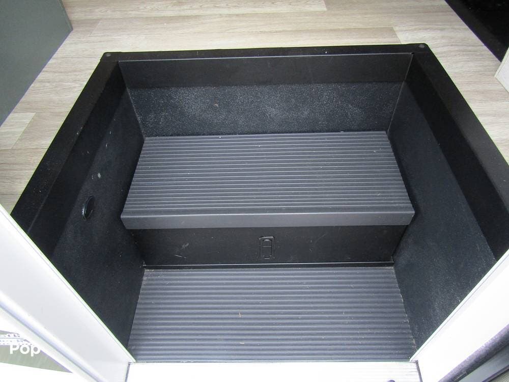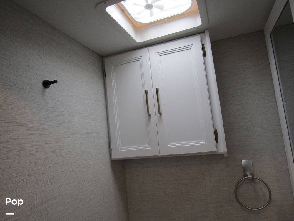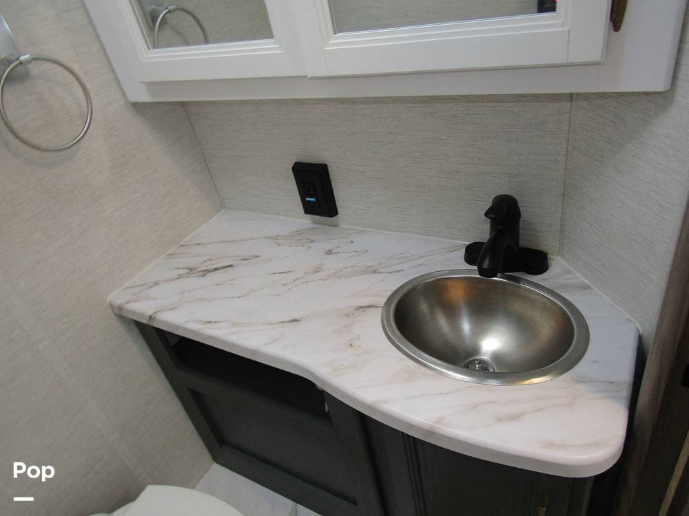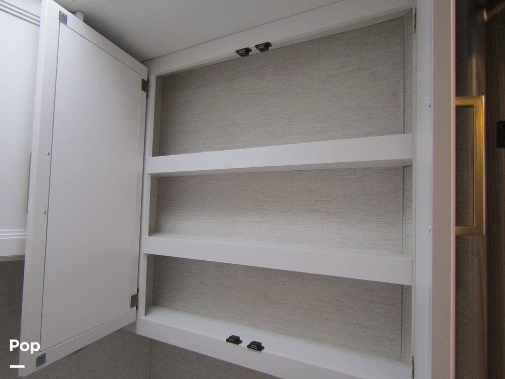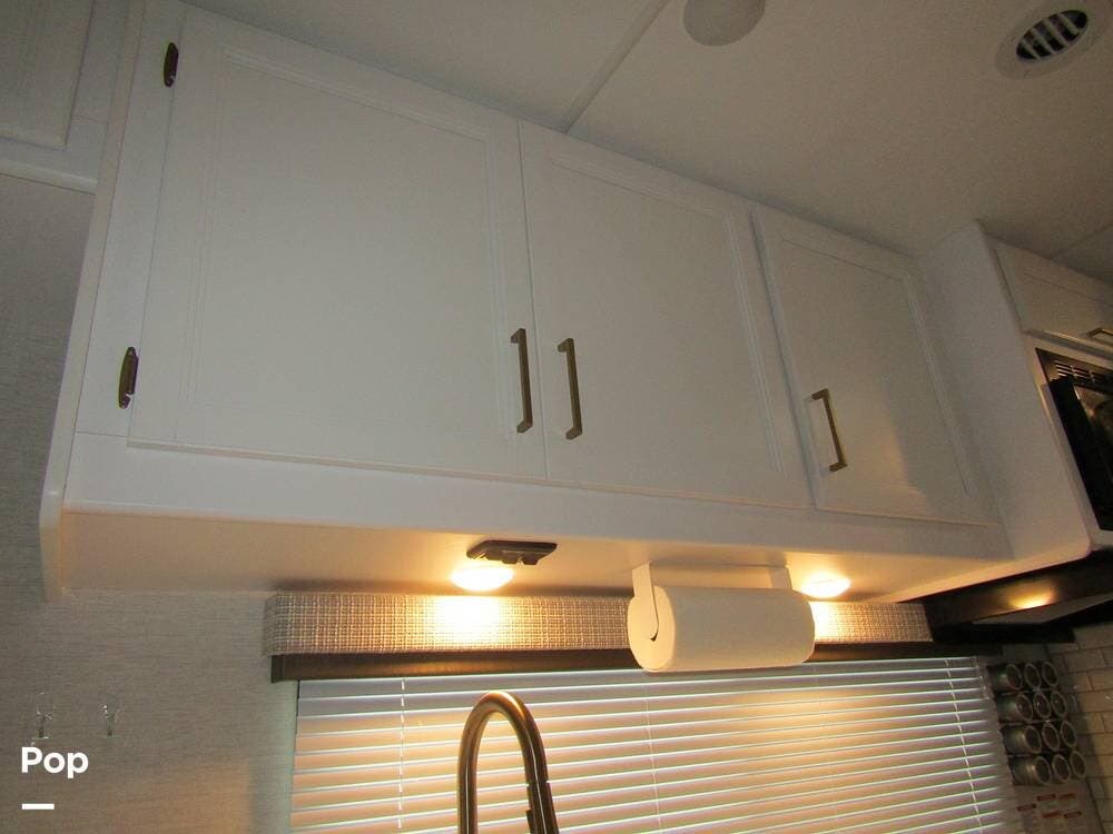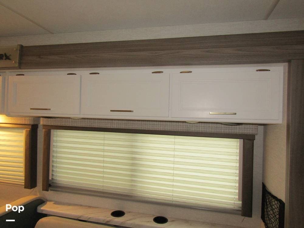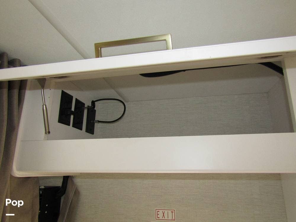 Once you're on board, you'll see how comfortably and ergonomically this RV was designed. Family members, as well as guests, will love the intuitive layout, like the cab-over full-size bunk with a pivoting flat-panel TV, and a telescoping ladder, which stows in the master bedroom. There's also a handy convertible dinette sleeper, a jack-knife sofa, pop-up power towers, and even a wireless phone charger.