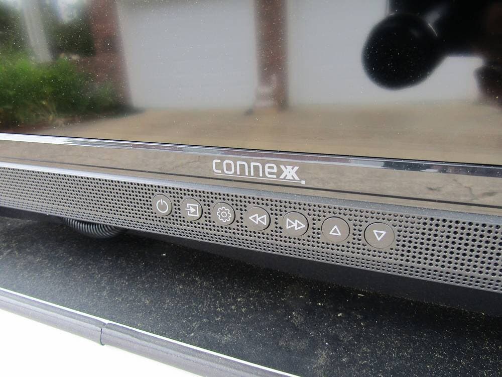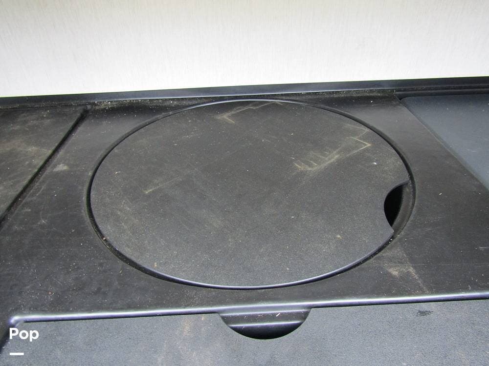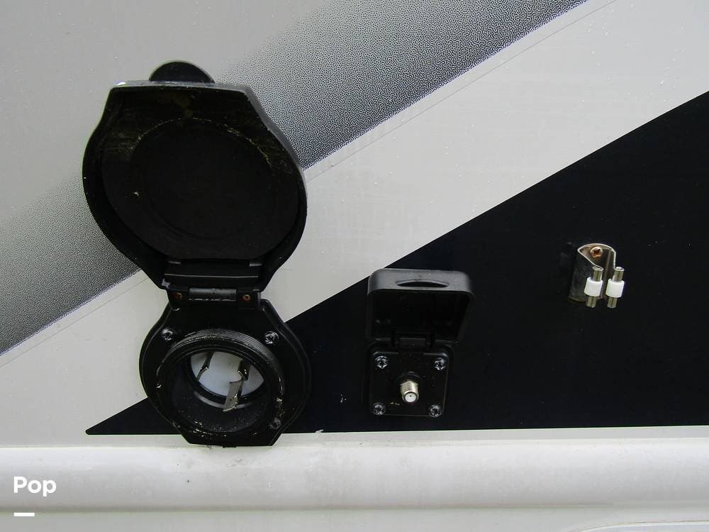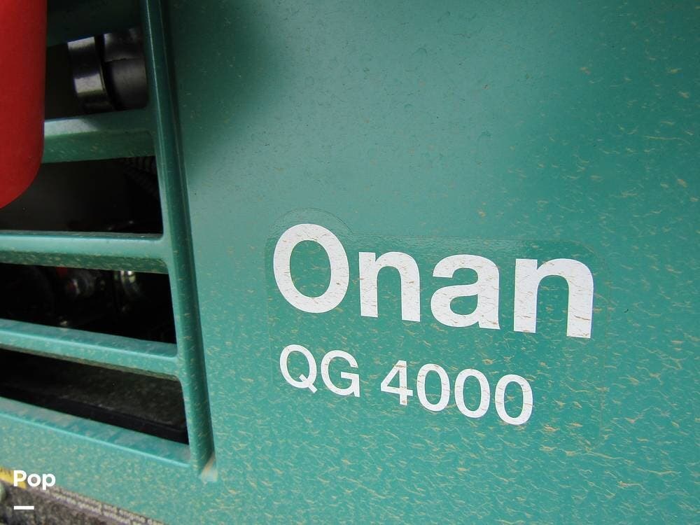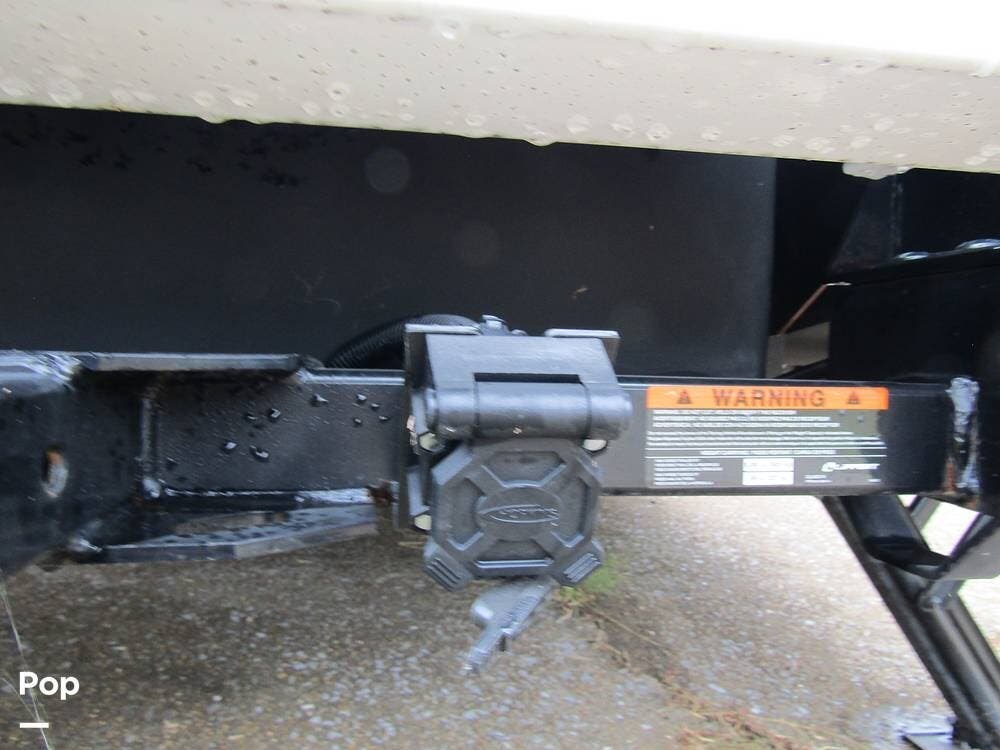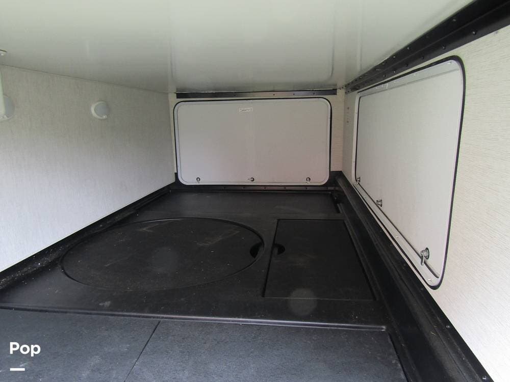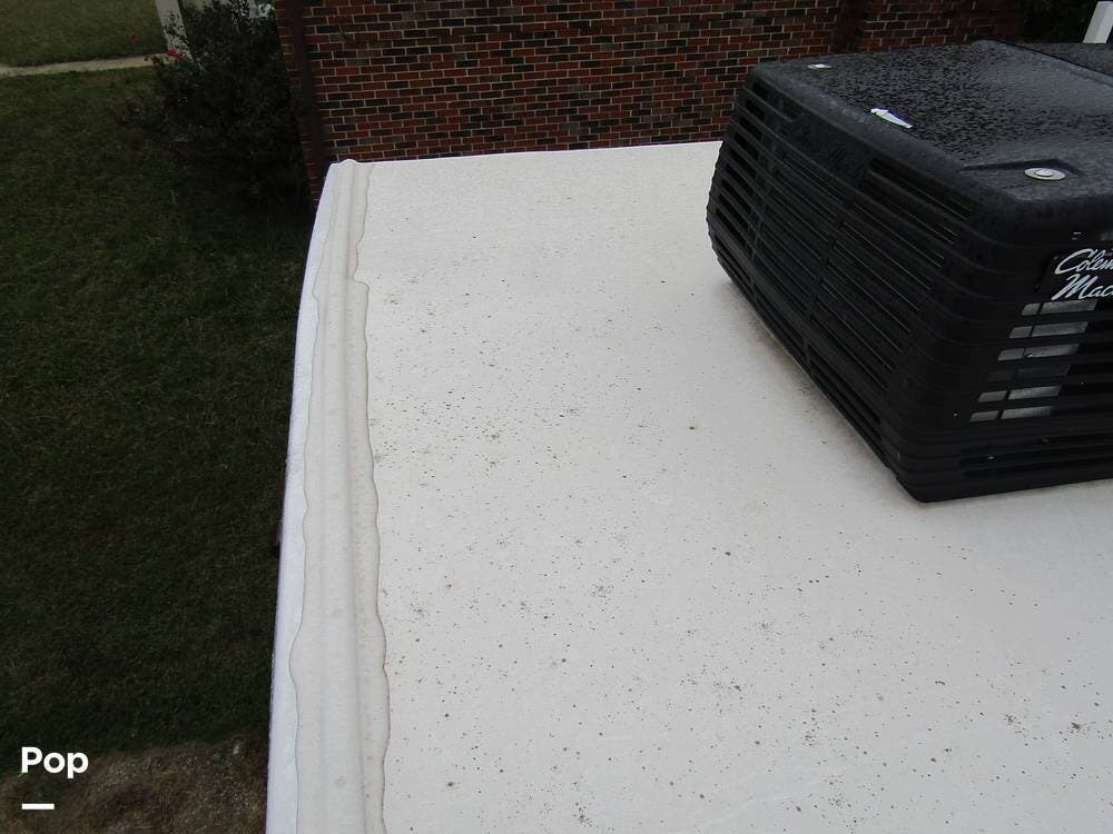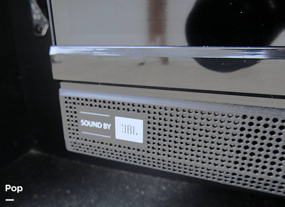 There is an external entertainment center with a 32" TV with a built-in JBL Sound Bar, a roof access ladder, a solar panel, a rear-view camera, electric stabilizers, and a 4000 Watt Generator with an AGS auto-start generator system that will turn itself on and off to keep your RV at room temperature, whether you're there or not