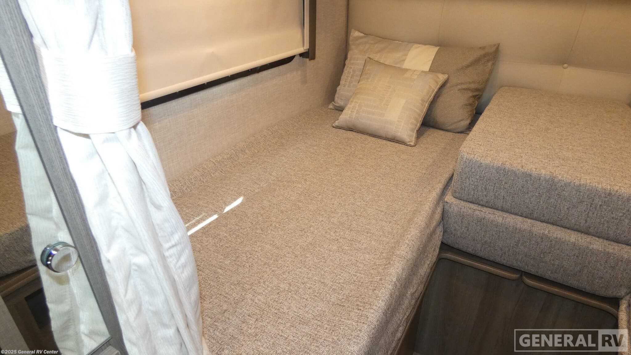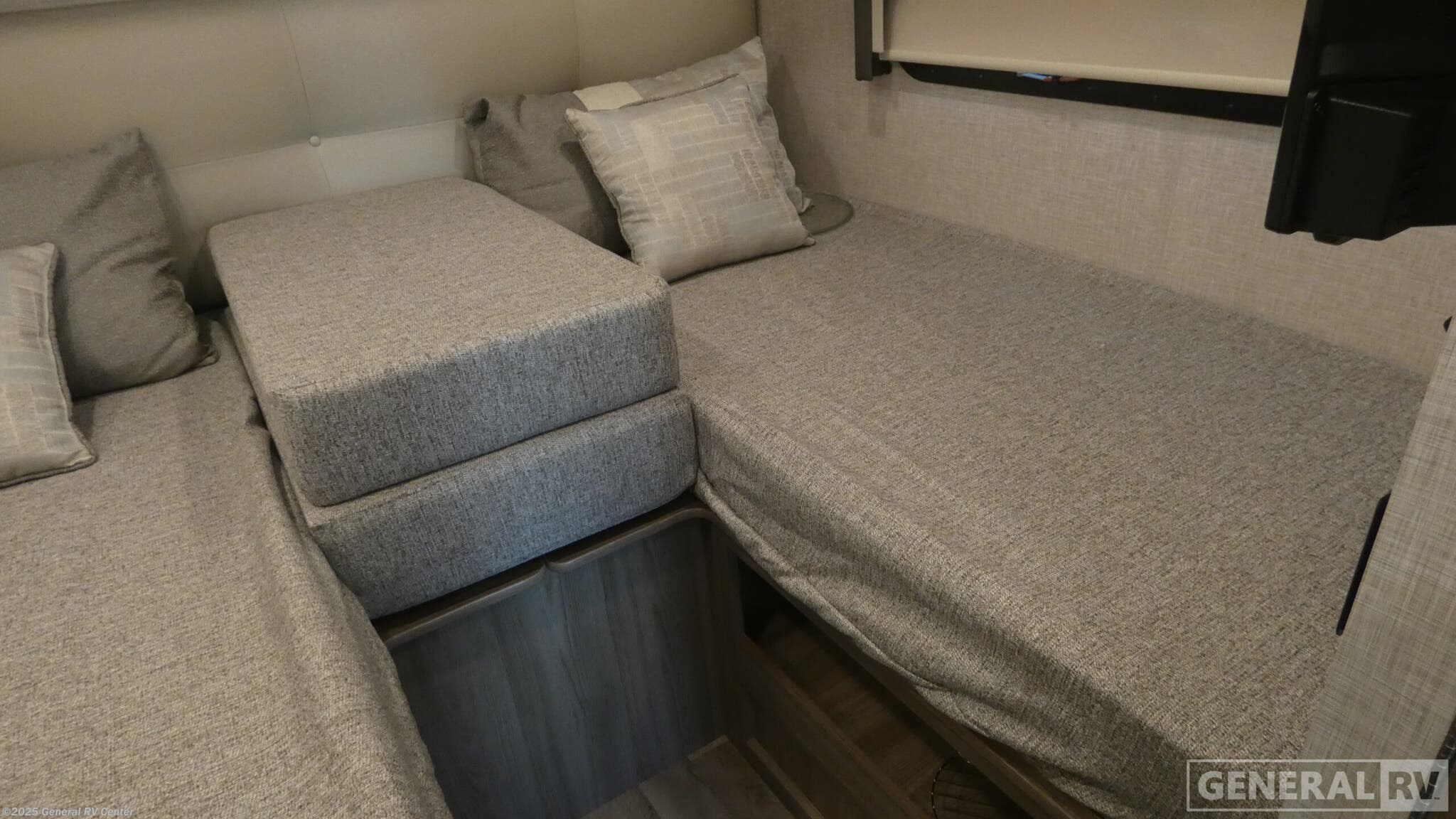 Discover the 2025 Thor Motor Coach Gemini 24KB, a perfect blend of comfort and innovation for your next adventure. This versatile motorhome is built on a robust Ford Transit chassis, powered by a dynamic EcoBoost V6 engine, offering 310 horsepower and 400 lb-ft of torque. With a length of just over 25 feet, it's compact yet spacious, making it ideal for both city streets and open highways. The sleek exterior is complemented by a 16.6 ft. powered retractable awning, providing a perfect outdoor relaxation space. Inside, you'll find a thoughtfully designed floorplan featuring a center kitchen and living area. The kitchen is equipped with a mid-size electric refrigerator, convection cooking, and a two-burner cooktop, allowing you to whip up meals with ease. The rear bedroom offers flexible sleeping arrangements with twin beds that convert into a king, while the jack-knife sofa provides additional sleeping space. A center bathroom with a shower curtain ensures convenience and privacy. Enjoy the open feel of the interior, enhanced by a built-in skylight, and make the most of your travels with this remarkable RV. Visit your nearest General RV dealership to explore the Gemini 24KB and start your journey today!