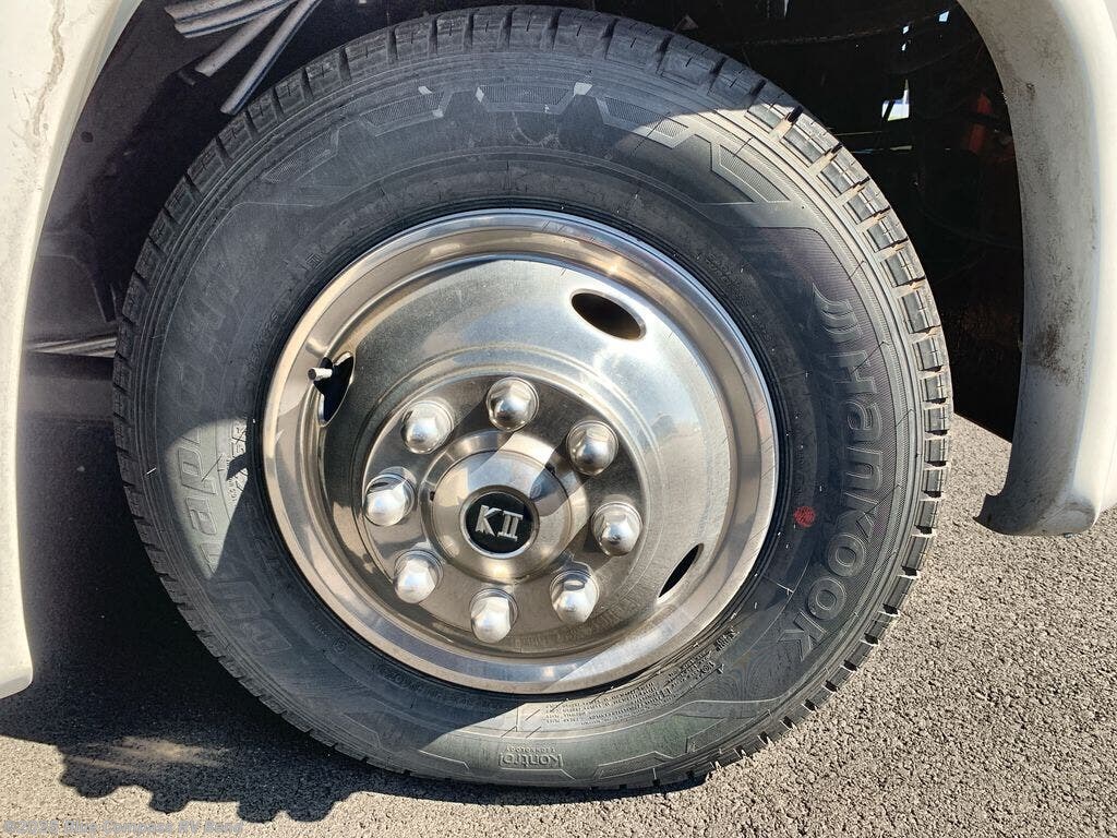 The Geneva Class A gas motorhome by Thor Motor Coach is easy to maneuver and even easier to love! There is a durable Ford E-Series chassis with a 7.3L V8 engine to power your trips both near and far. The durable construction includes a welded tubular steel floor, a one-piece fiberglass front cap, plus welded tubular aluminum roof and sidewall cage construction. And the driver is sure to appreciate the 10" touchscreen dash radio, back-up monitor, and reclining/swivel leatherette captain's chairs! Inside, you'll be met with residential vinyl flooring, pressed laminate countertops, a designer headboard and pillow shams, a shower skylight, and many more at-home comforts!