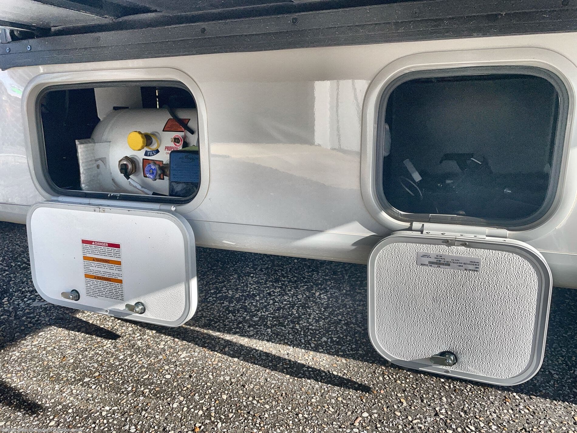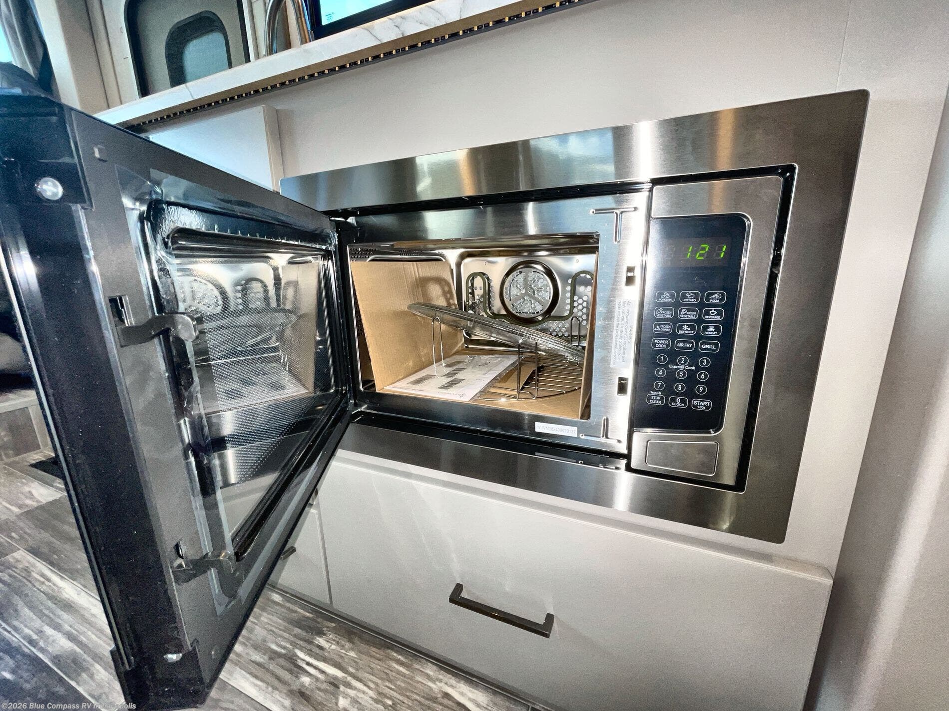 Since this coach features twin beds with a king bed conversion, you can travel with your friend or honey! Along with the versatile sleeping arrangements, you'll also enjoy the bedroom 32" LED Smart TV, and if you have any guests, they can sleep on the 66" sofa bed in the main living room. A full kitchen includes a two burner gas cooktop and convection microwave with an air fryer, along with a 12V DC double door refrigerator for food storage. There is a removable pedestal table in front of the sofa that will provide a place to dine together, or you can take your plate outdoors to relax under the power awning with LED lighting. The full bath with a 27" x 27" radius shower will let you freshen up each day, and the closet right across the hall will be perfect for clean clothes!