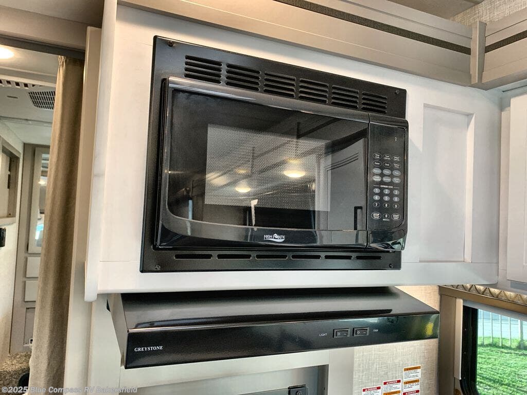 Enjoy a private bedroom with a king bed, large closet, and TV prep! The bathroom is also located in the rear corner for additional privacy. Abundant storage includes a linen closet plus an area prepped for a washer/dryer so you can do your laundry on the road. Relax on the theater seats while watching the Smart TV. You'll also appreciate the additional 52" x 96" sleeping area in the cab-over bunk so you can bring along guests. The kitchen is fully equipped with a three-burner cooktop, refrigerator, microwave, and flip-up countertop for extra prep space, and a roomy 70" dream dinette is the perfect place to enjoy your meals. Outside you will enjoy watching the exterior TV under the power awning.