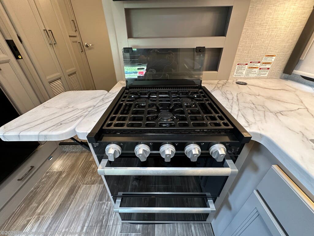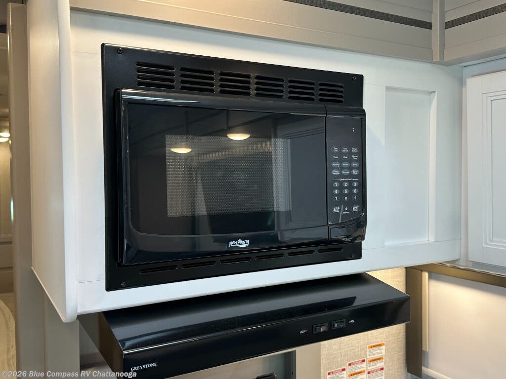 Enjoy a private bedroom with a king bed, large closet, and TV prep! The bathroom is also located in the rear corner for additional privacy. Abundant storage includes a linen closet plus an area prepped for a washer/dryer so you can do your laundry on the road. Relax on the theater seats while watching the Smart TV. You'll also appreciate the additional 52" x 96" sleeping area in the cab-over bunk so you can bring along guests. The kitchen is fully equipped with a three-burner cooktop, refrigerator, microwave, and flip-up countertop for extra prep space, and a roomy 70" dream dinette is the perfect place to enjoy your meals. Outside you will enjoy watching the exterior TV under the power awning.