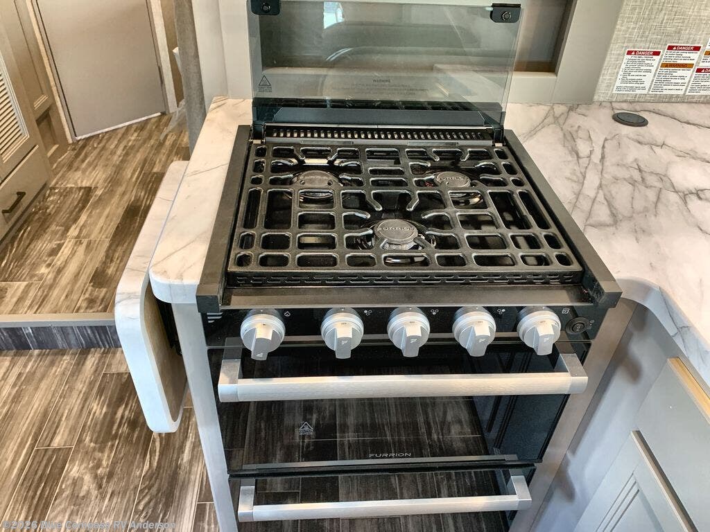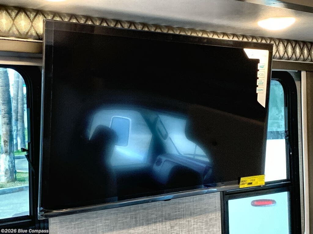 Enjoy a private bedroom with a king bed, large closet, and TV prep! The bathroom is also located in the rear corner for additional privacy. Abundant storage includes a linen closet plus an area prepped for a washer/dryer so you can do your laundry on the road. Relax on the theater seats while watching the Smart TV. You'll also appreciate the additional 52" x 96" sleeping area in the cab-over bunk so you can bring along guests. The kitchen is fully equipped with a three-burner cooktop, refrigerator, microwave, and flip-up countertop for extra prep space, and a roomy 70" dream dinette is the perfect place to enjoy your meals. Outside you will enjoy watching the exterior TV under the power awning.