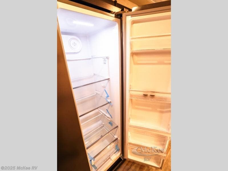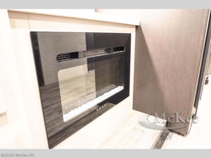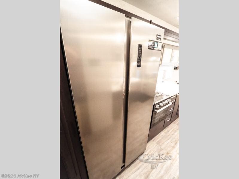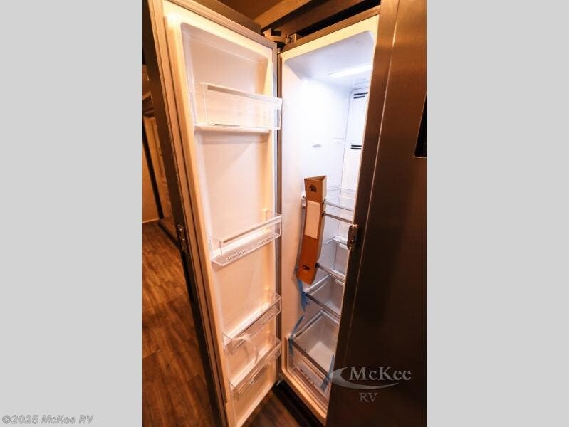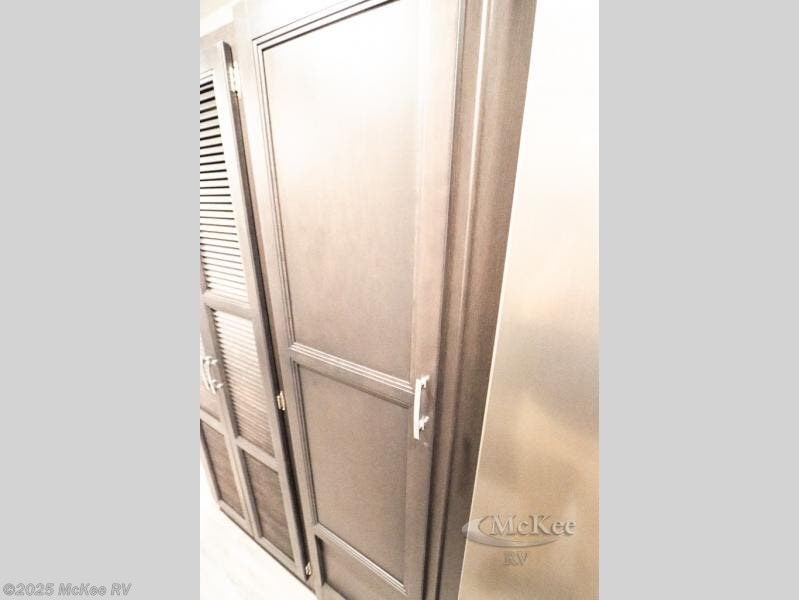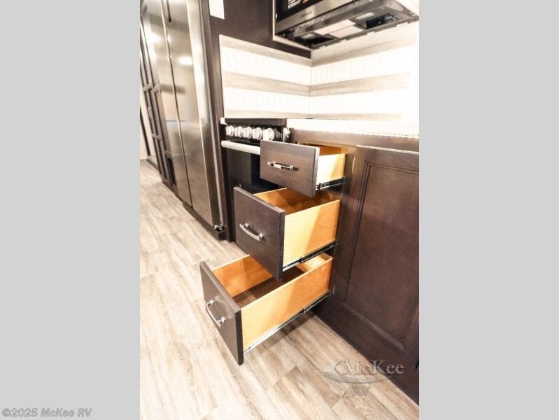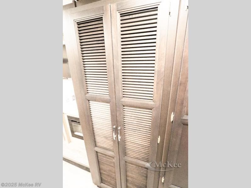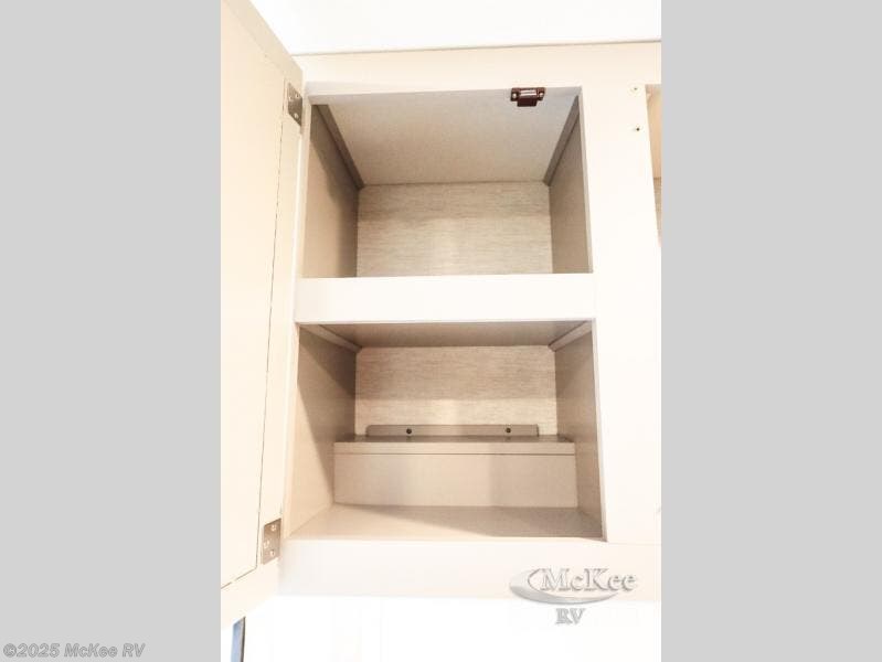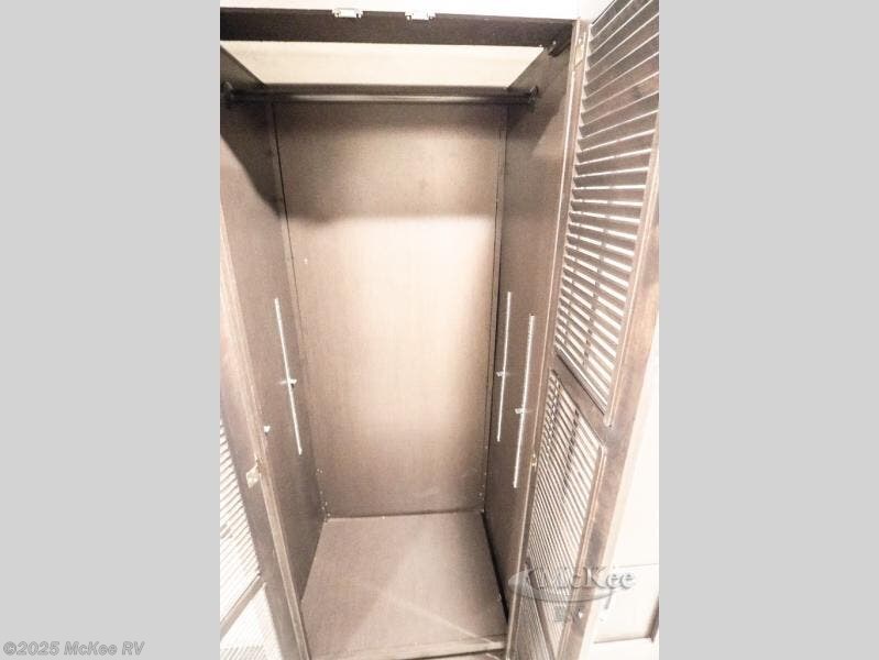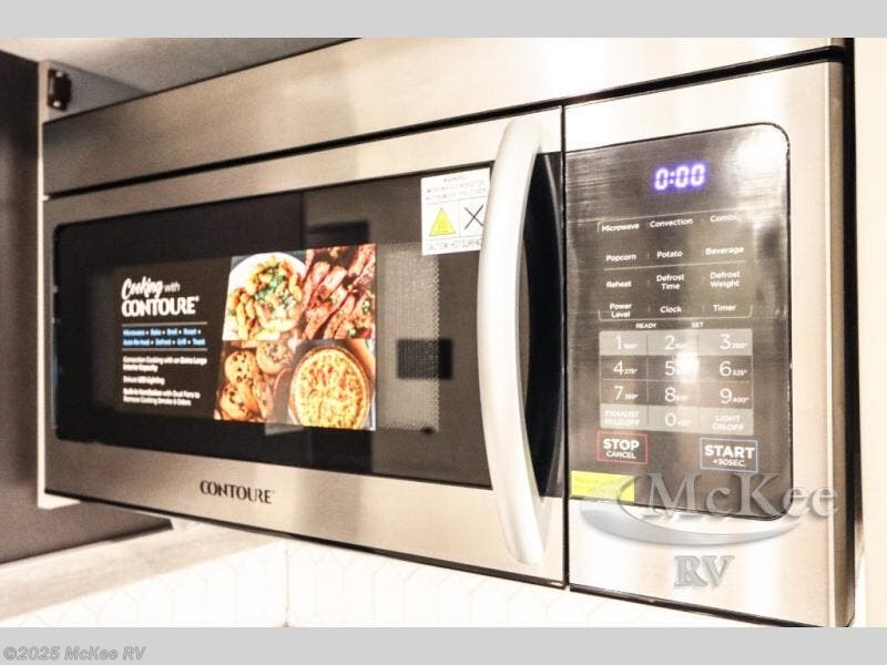 Enjoy added space and comfort in this coach with a full-wall slide out plus a second slide out in the rear bedroom. You will sleep soundly each night on the king bed, and you can easily grab a clean clothes from the closet and head to the full bath close by. Your guests can sleep on the Dream Dinette or on the drop-down overhead bunk with a 48" x 74" sleeping area. Once everyone is clean up and ready for the day, you can prepare breakfast on the three burner gas cooktop or in the 30" stainless steel over-the-range convection microwave. There is also a residential refrigerator and a pantry to store food for your trip. You will also enjoy spending time outdoors with a power awning with LED lights and an exterior 32" Smart TV with a Bluetooth built-in soundbar and radio!