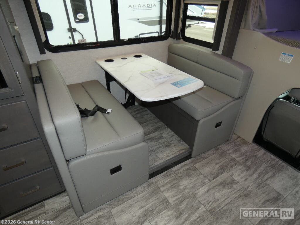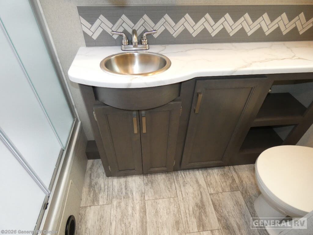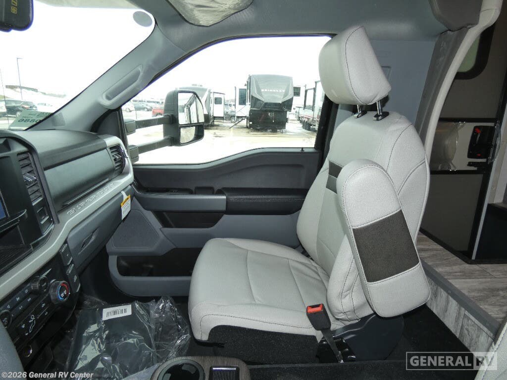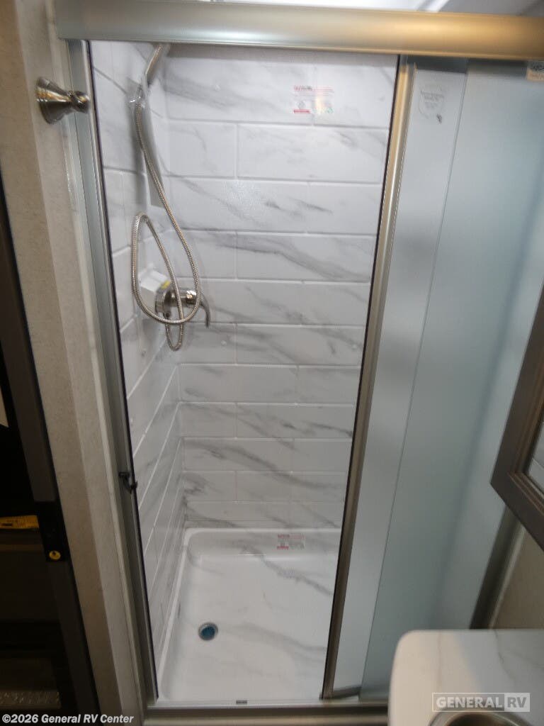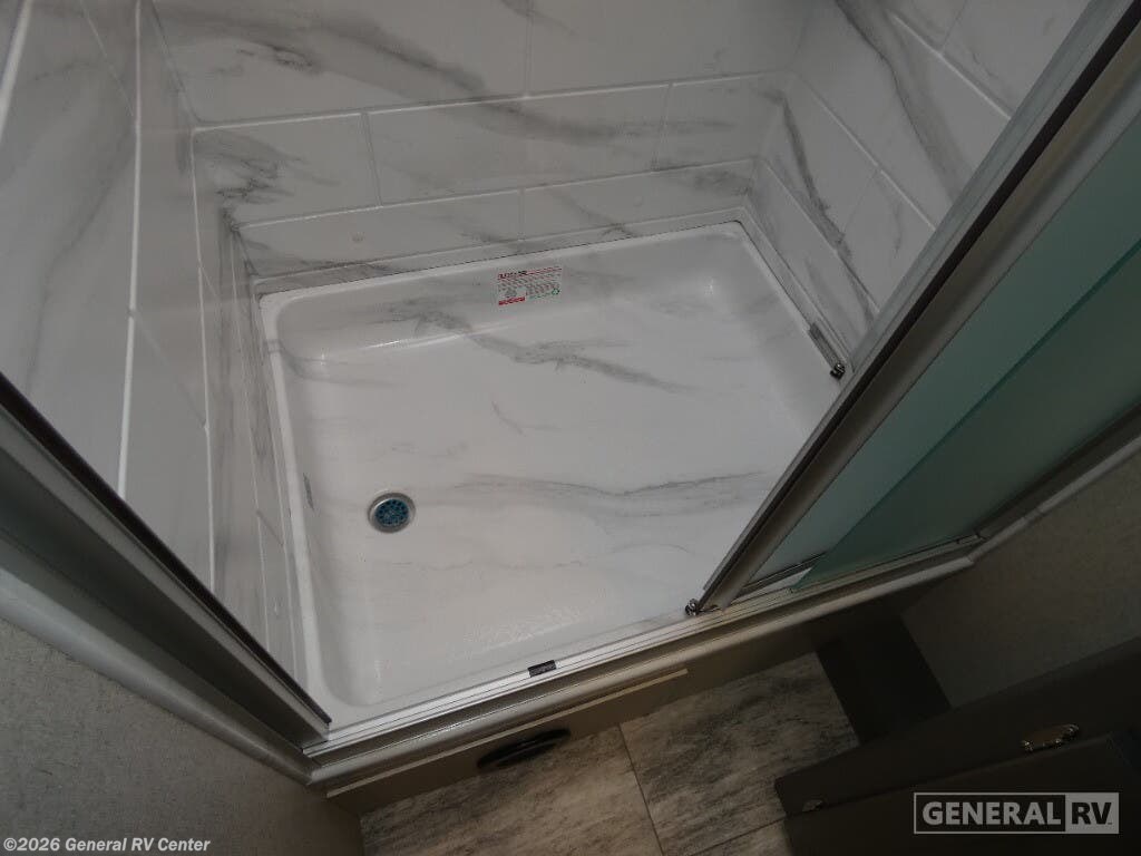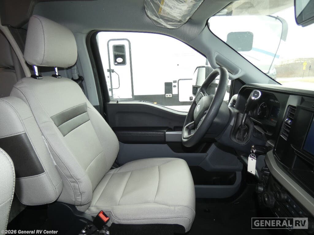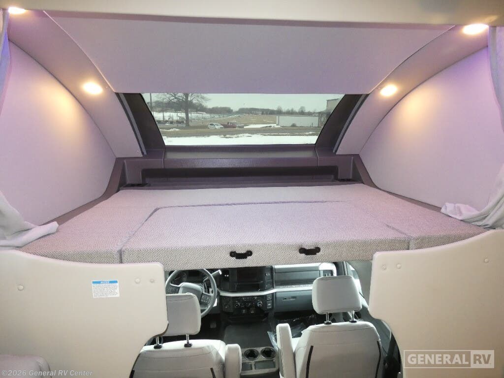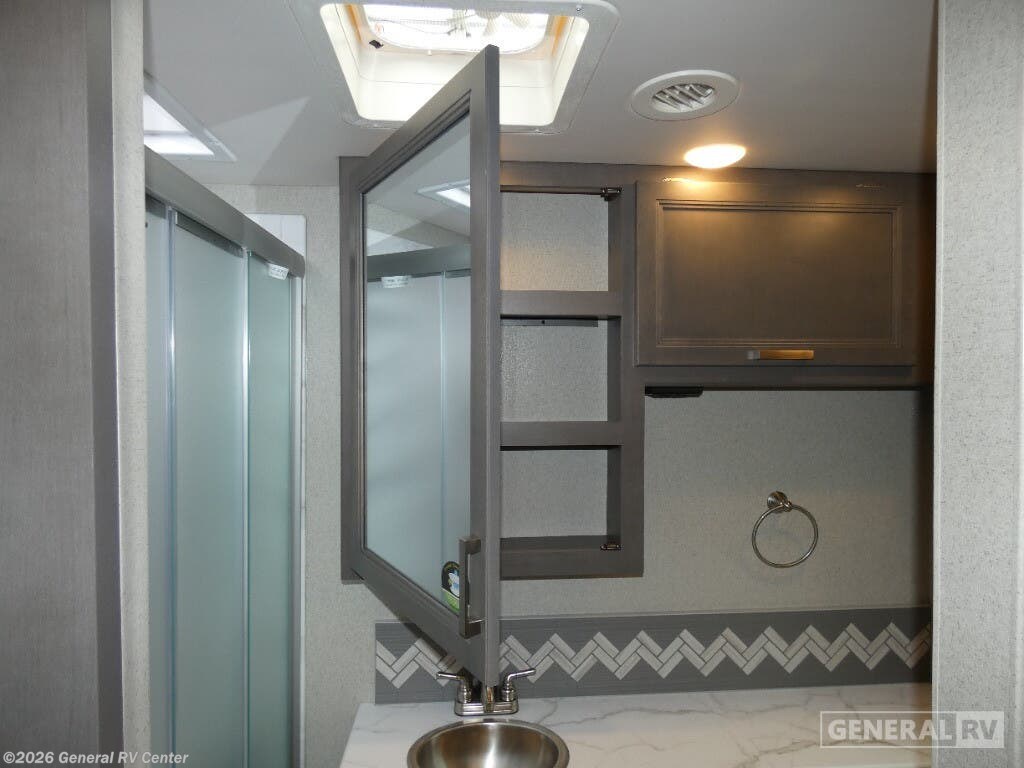 Thor Motor Coach Magnitude GRAND Super C diesel motorhome S29 highlights: Sofa with Murphy Bed Bunk Over Cab Fireplace Rear Bathroom Relax in the full rear bathroom, featuring a spacious 30” x 36” shower. The living area boasts a versatile sofa with a murphy bed, perfect for guests or extra sleeping space. Cozy up by the fireplace, enjoy your favorite shows on the TV, and organize your stuff in the ample shelving and storage. The closet also provides additional space for your belongings. The kitchen is a culinary dream, equipped with a pantry, drawers, fridge, three-burner cooktop, and a microwave. Gather with family and friends at the 70” dream dinette, perfect for meals and game nights. Additional sleeping space is available in the front bunk over the cab, and when you're ready to take the party outside, enjoy your favorite shows on the exterior TV. The Magnitude GRAND Super C diesel motorhomes by Thor Motor Coach are built to last, featuring Vacu-bond laminated roofs and floors with block foam insulation for unparalleled durability and climate control which ensures a comfortable and quiet living space. Stay connected and entertained on the go with the innovative sync-enhanced voice recognition communication and entertainment system. With just the sound of your voice, you can control everything from navigation to music playlists. Setting up camp has never been easier, thanks to our automatic leveling jacks with a touchpad, simply press a button and let the system do the work for you. Inside, you'll enjoy incredible interior features like a spacious 84” interior ceiling height, perfect for comfortable living, solid countertops, designer headboard, bedspread, and pillow shams. Plus you can beat the heat with the dual 13,500 BTU roof air conditioners, providing superior cooling power to keep you comfortable in even the warmest climates. Explore our motorhome collection today and discover a new standard of luxury and adventure.