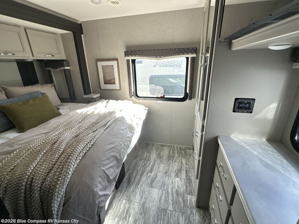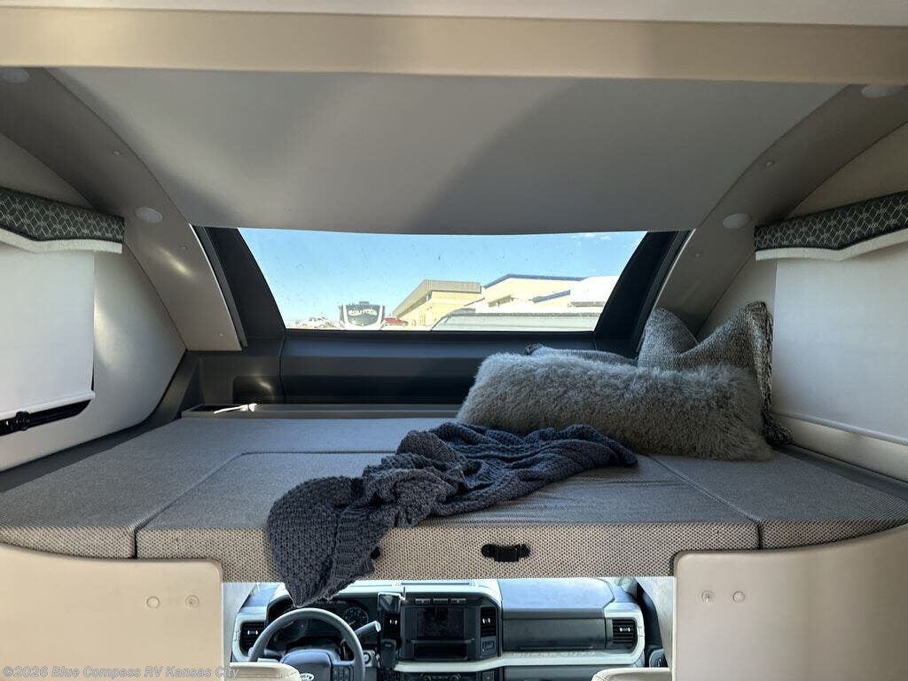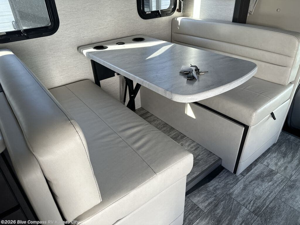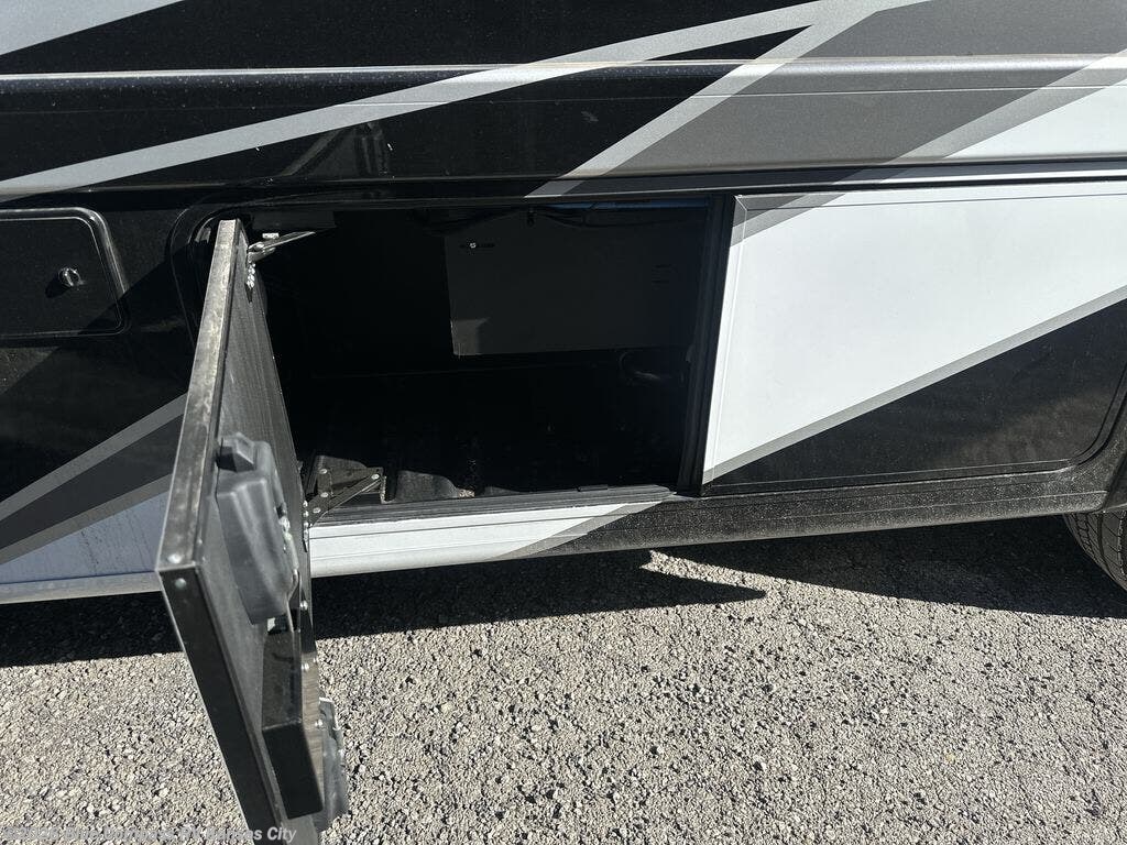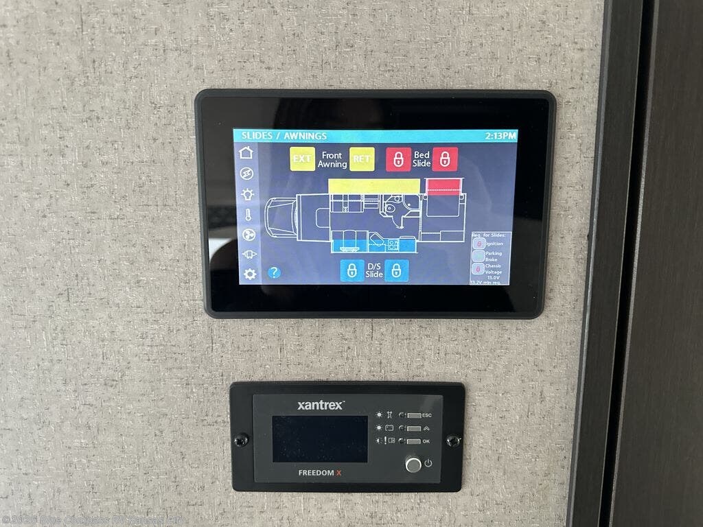 Escape to luxury with this incredible motorhome! The rear bedroom is a serene retreat, featuring a plush queen bed, spacious closet, dresser, and 32” Smart TV. A convenient full bathroom with a pantry and broom closet completes the space, perfect for freshening up on the go. The kitchen is a culinary haven, equipped with a residential refrigerator, three-burner cooktop, microwave, and 70” dream dinette where you can comfortably eat delicious meals. Relax in the 68” theater seating area, complete with 40” Smart TV, perfect for family movie nights or game days. Additional sleeping space is available in the bunk over cab, ensuring everyone has a comfortable place to rest. Create entertaining moments outside with the 32” exterior smart TV under the shade of the 14’ awning perfect for outdoor fun.