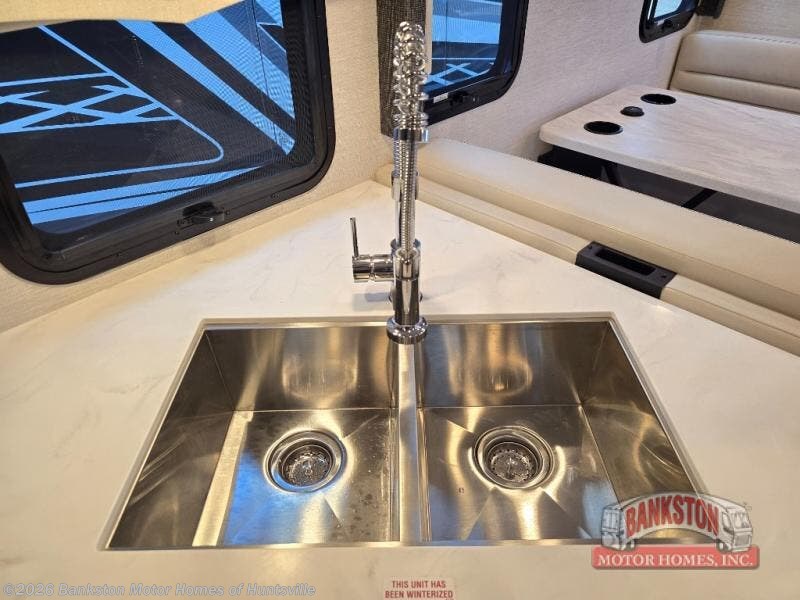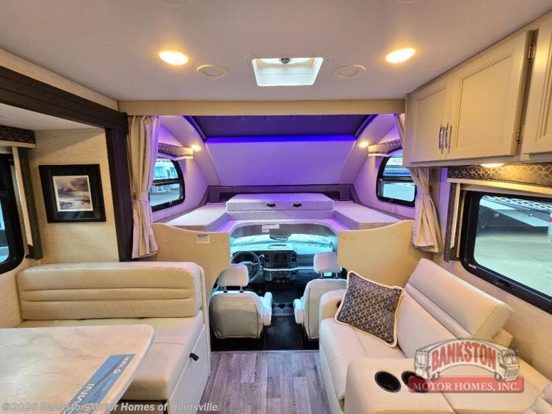 If you've been wanting to travel the country in style, now is the time with this motorhome that can sleep five people each night. The 40" living room Smart TV is directly across from the theater seating for easy viewing, plus there is a 32" bedroom Smart TV and an 32" exterior Smart TV for all your entertainment needs. The Dream Dinette will be the perfect place to enjoy breakfast each morning as you plan out your day, or you may just want to sit at the picnic table under the 14' power awning. This model includes a mid-ship full bath with a shower skylight that will not only provide more natural light, but will give you more head room as you wash up. The rear private bedroom will feel just like home with its 60" x 75" queen bed slide out, plus there is a wardrobe to keep your clothes tidy!