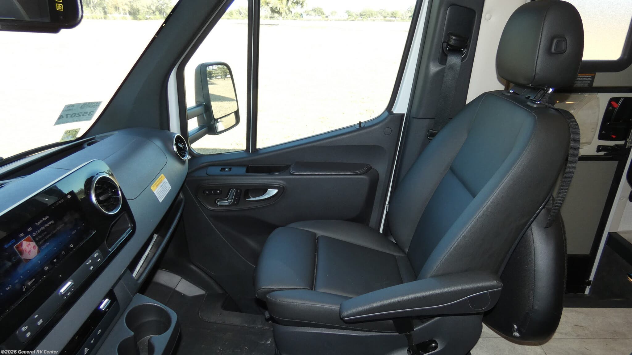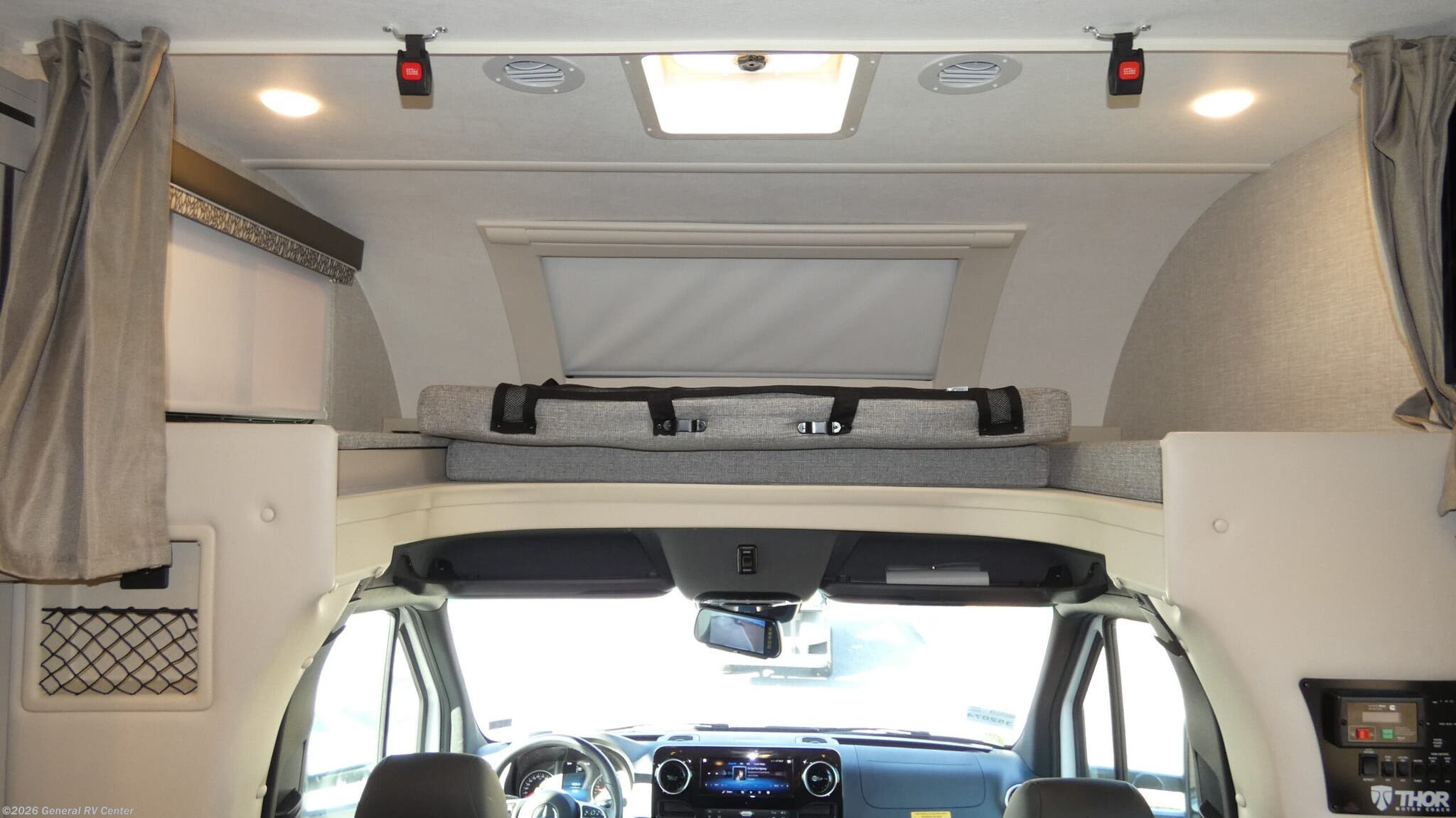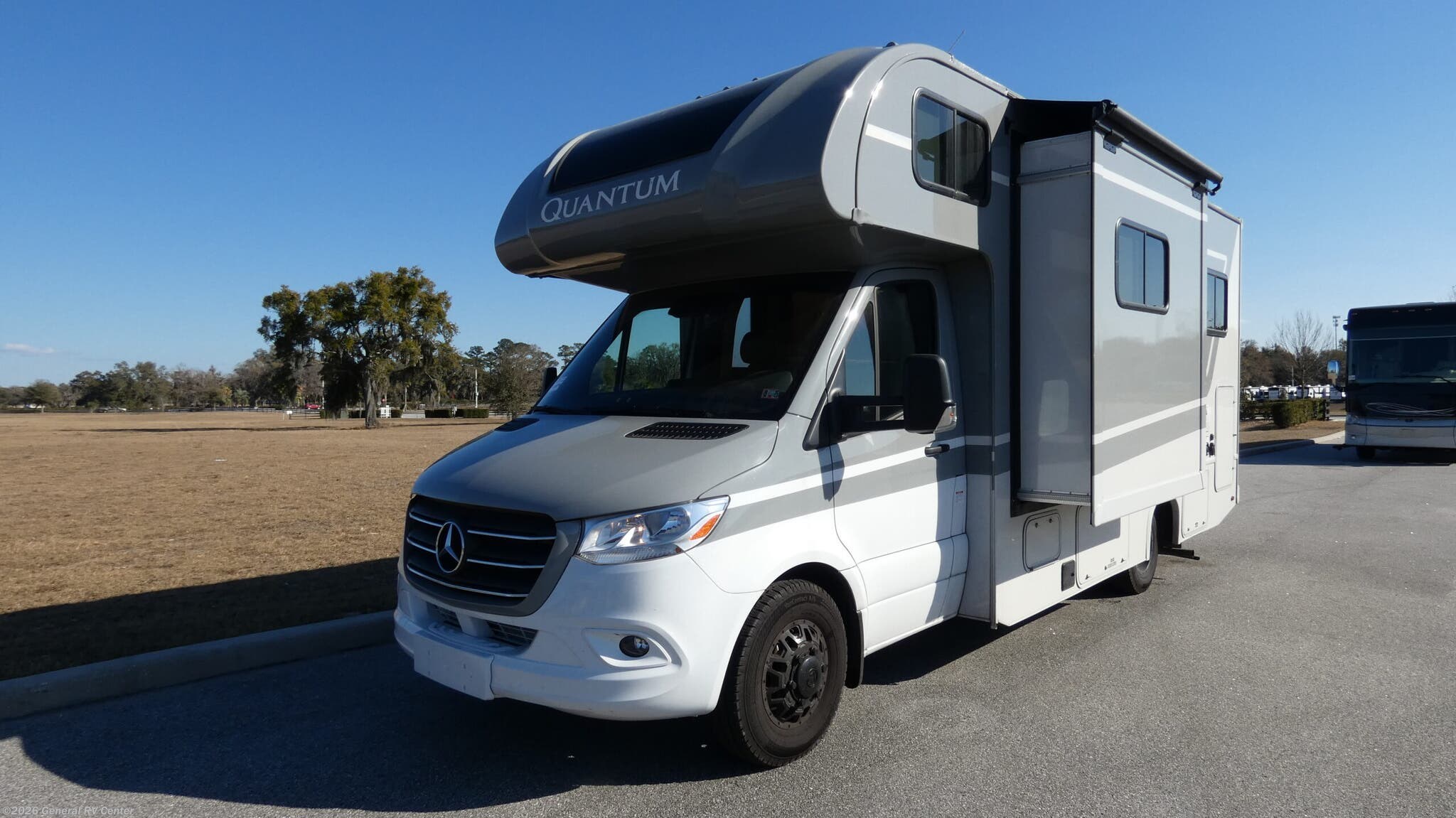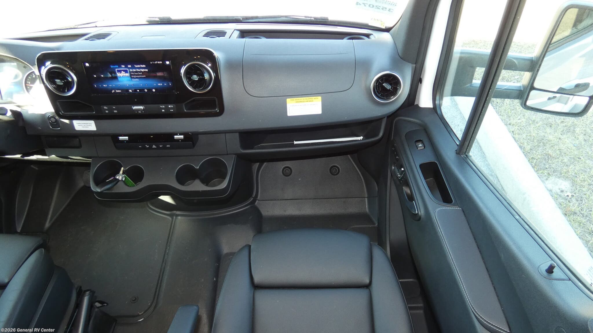 The 2025 Thor Motor Coach Quantum Sprinter GL24 is a harmonious blend of luxury and practicality, perfectly crafted for those who seek adventure without compromising on comfort. With its sleek Mercedes-Benz Sprinter 4500 chassis and a powerful I4 engine, this diesel-powered RV promises a smooth and efficient journey. At just under 26 feet in length, it offers a compact yet spacious interior, making it ideal for both city exploration and countryside retreats. Inside, you'll find a thoughtfully designed living space featuring theater seating and a removable pedestal table, perfect for cozy meals or game nights. The center kitchen is equipped with a three-burner cooktop and a mid-size electric refrigerator, ensuring you have all the essentials for delightful culinary experiences. The rear bedroom offers versatile sleeping arrangements with twin beds that easily convert into a king, while the cab-over bunk provides additional sleeping space, making it comfortable for up to four guests. Enjoy the convenience of a center bath with a shower curtain for privacy, and unwind under the 16.5 ft. powered retractable awning that extends your living space to the great outdoors. Whether you're embarking on a weekend getaway or an extended road trip, the Quantum Sprinter GL24 is your ticket to unforgettable adventures. For more information or to see it in person, visit your nearest General RV dealership.