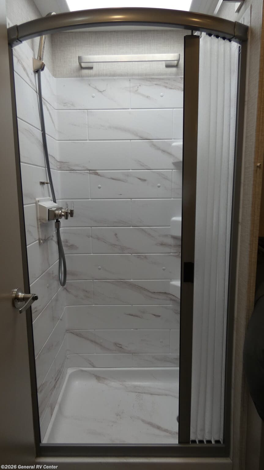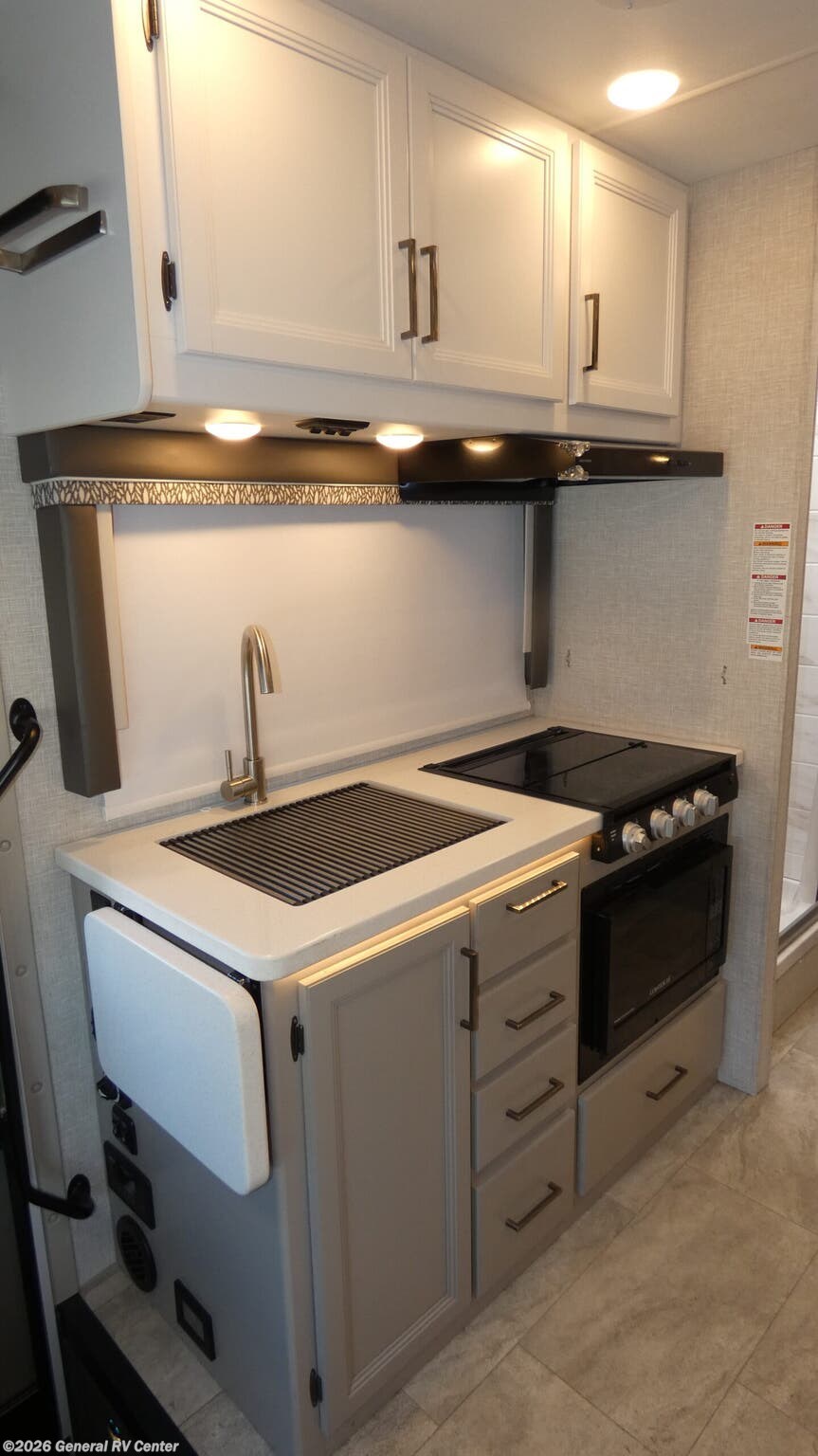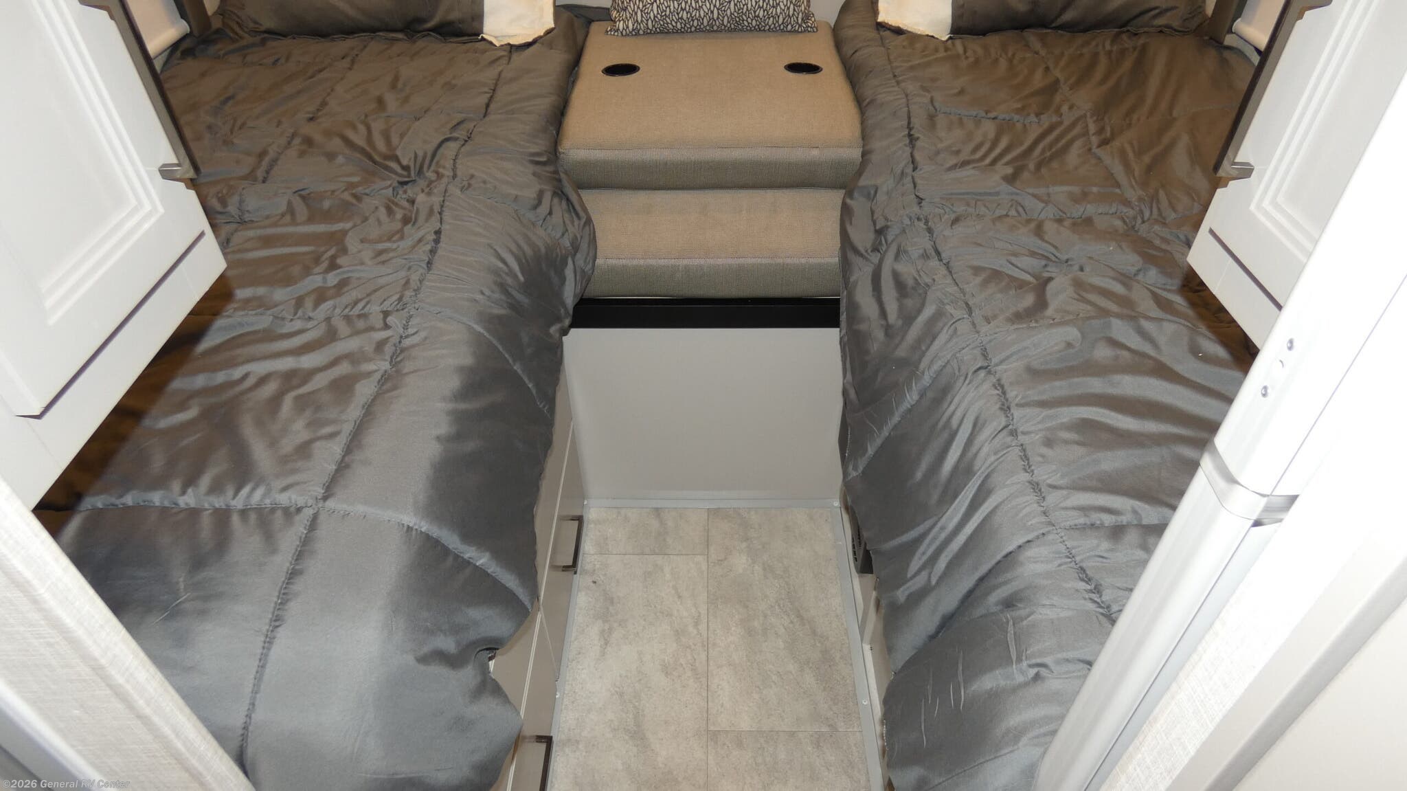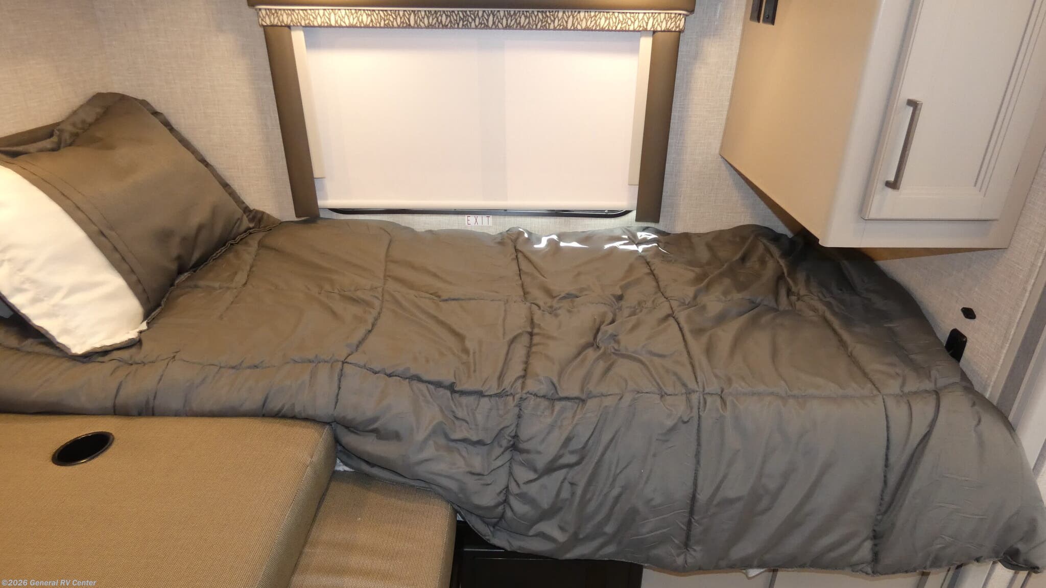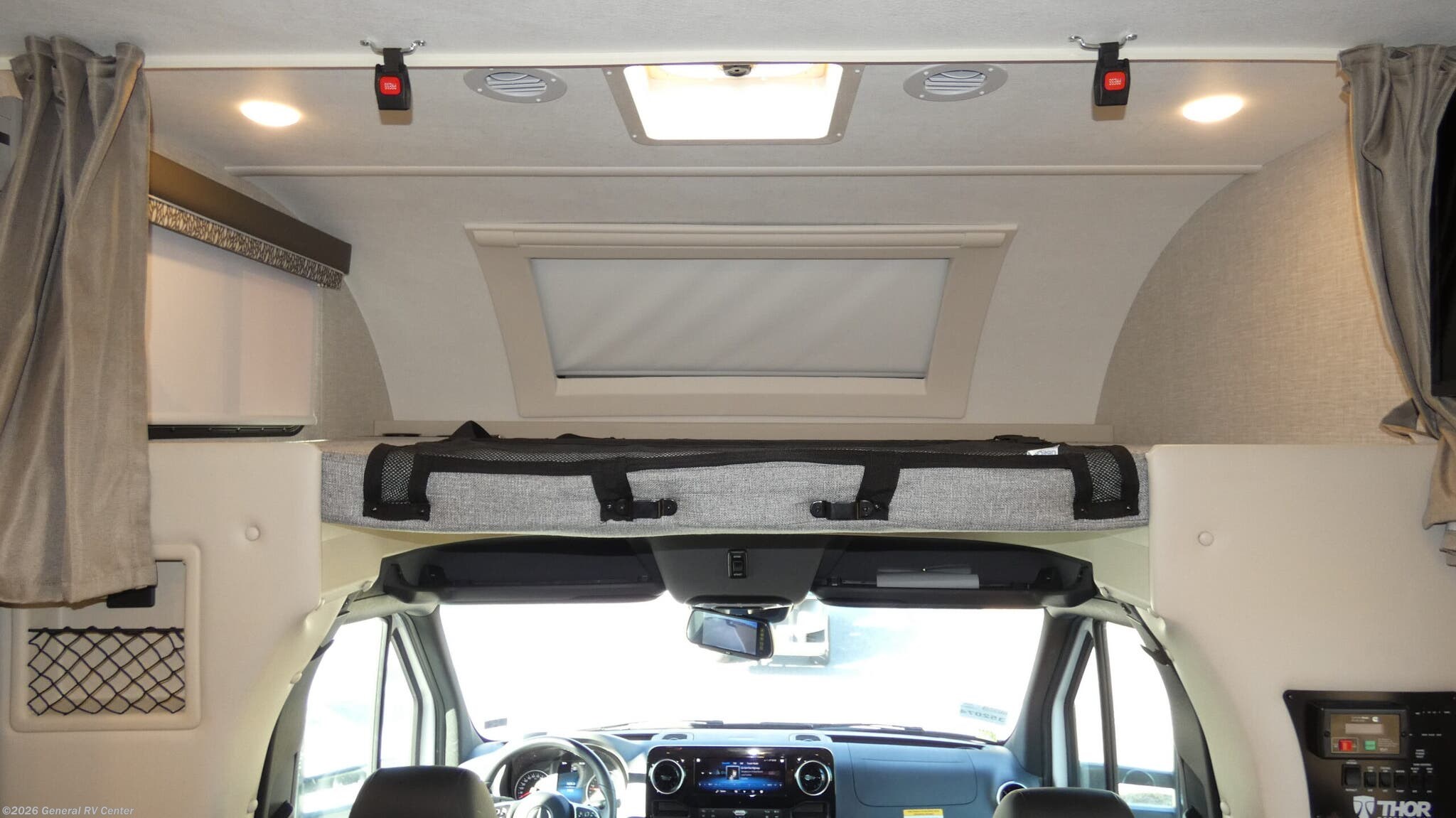 The 2025 Thor Motor Coach Quantum Sprinter GL24 is a harmonious blend of luxury and practicality, perfectly crafted for those who seek adventure without compromising on comfort. With its sleek Mercedes-Benz Sprinter 4500 chassis and a powerful I4 engine, this diesel-powered RV promises a smooth and efficient journey. At just under 26 feet in length, it offers a compact yet spacious interior, making it ideal for both city exploration and countryside retreats. Inside, you'll find a thoughtfully designed living space featuring theater seating and a removable pedestal table, perfect for cozy meals or game nights. The center kitchen is equipped with a three-burner cooktop and a mid-size electric refrigerator, ensuring you have all the essentials for delightful culinary experiences. The rear bedroom offers versatile sleeping arrangements with twin beds that easily convert into a king, while the cab-over bunk provides additional sleeping space, making it comfortable for up to four guests. Enjoy the convenience of a center bath with a shower curtain for privacy, and unwind under the 16.5 ft. powered retractable awning that extends your living space to the great outdoors. Whether you're embarking on a weekend getaway or an extended road trip, the Quantum Sprinter GL24 is your ticket to unforgettable adventures. For more information or to see it in person, visit your nearest General RV dealership.