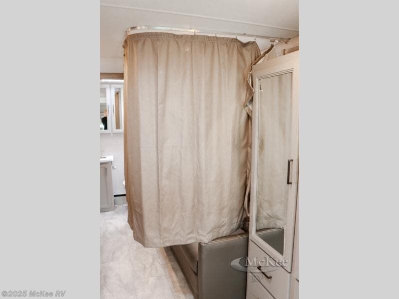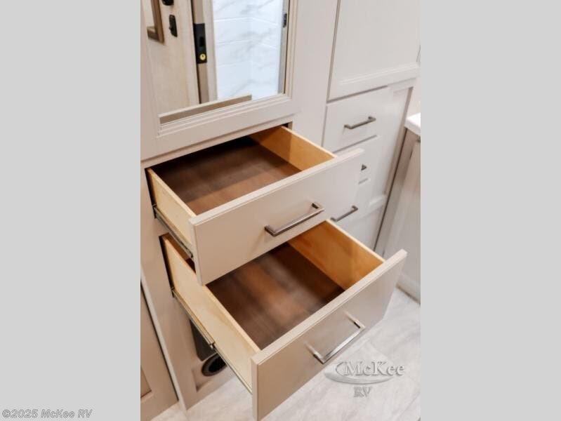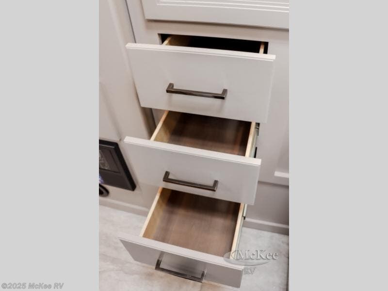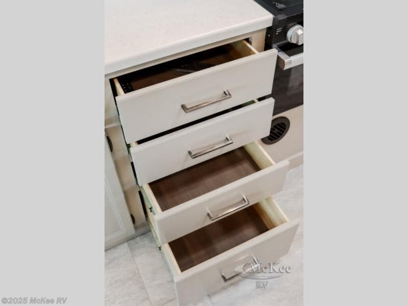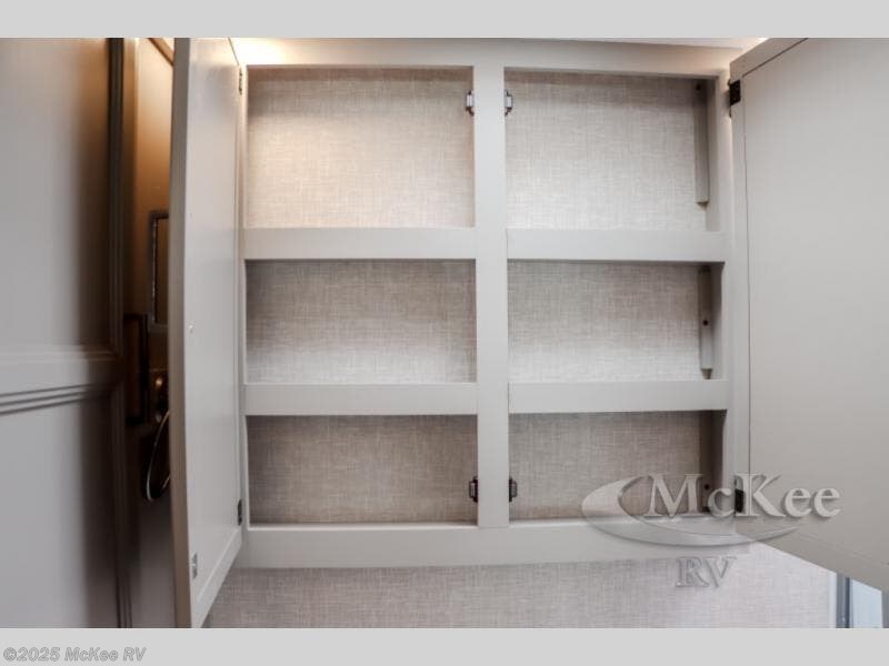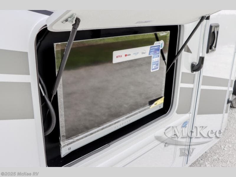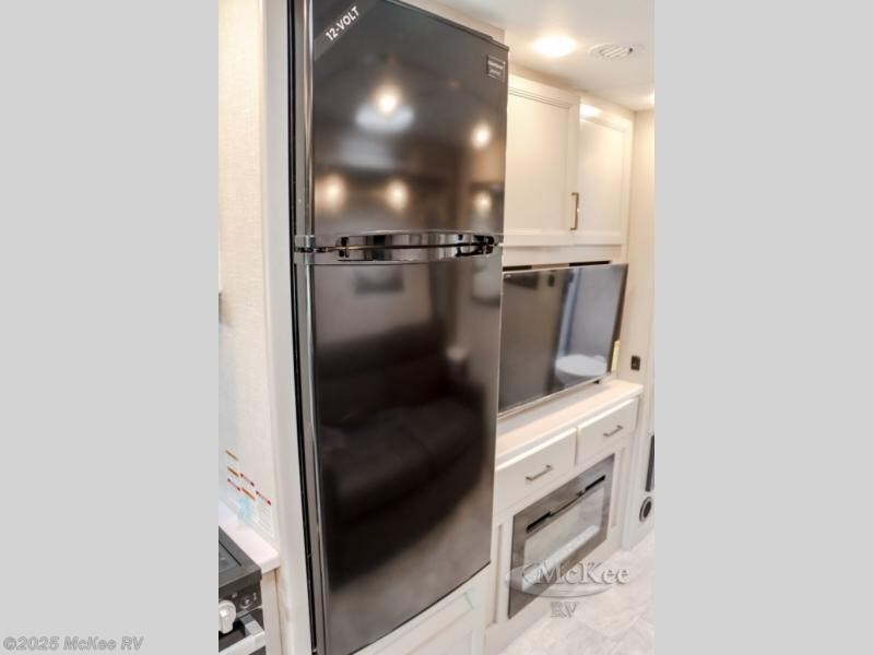 One step inside this coach and you'll be sold! The full-wall slide opens up your whole living space so it feels more open. You'll find the Dream Dinette, sofa with a Murphy bed, and two closets here for added convenience. There is even a fireplace to make it feel a little more like home and a privacy curtain around the bed if you have guests sleeping on the cab-over bunk or dinette! A three burner cooktop and microwave oven will allow you to make meals each day, and the 12V refrigerator can hold all your perishables. And don't over look the full rear bath with a foot flush toilet, shower skylight, and bath linen closet for clean towels. This model also includes an optional exterior TV and an optional exterior griddle if you want to cook breakfast outdoors!