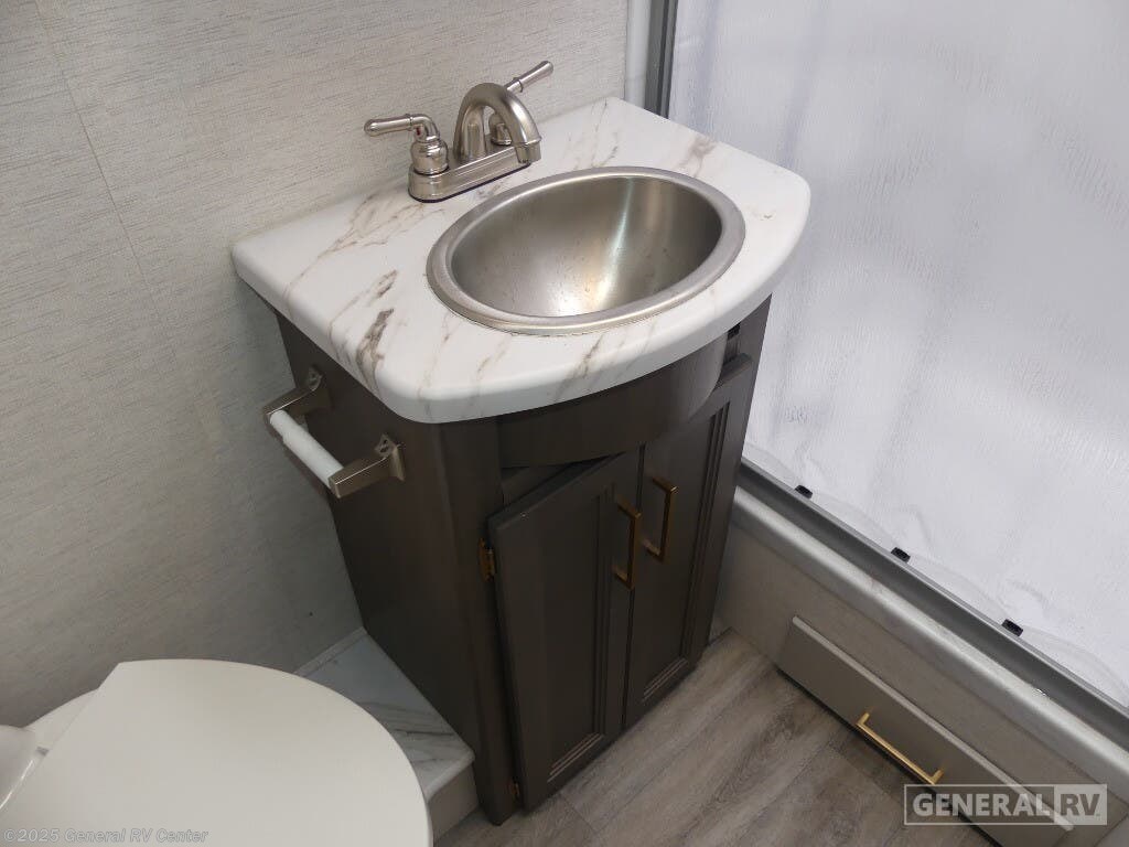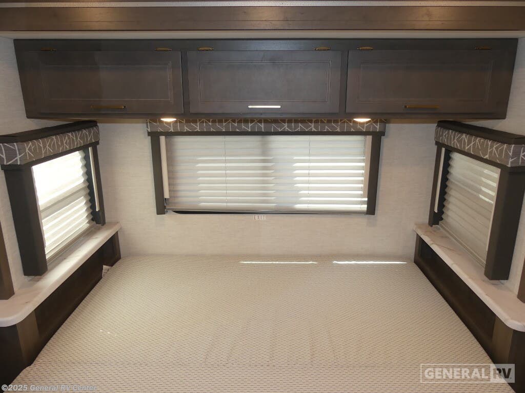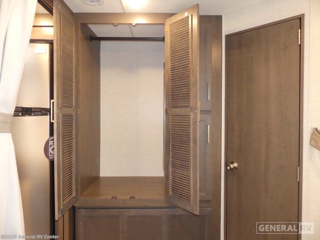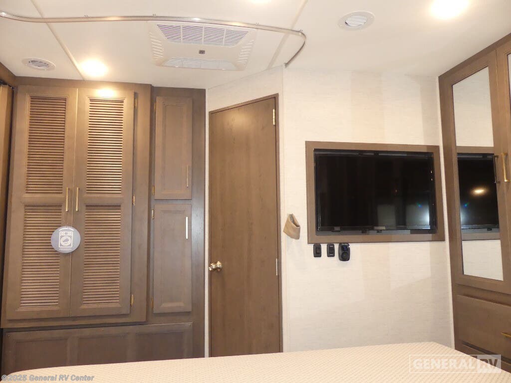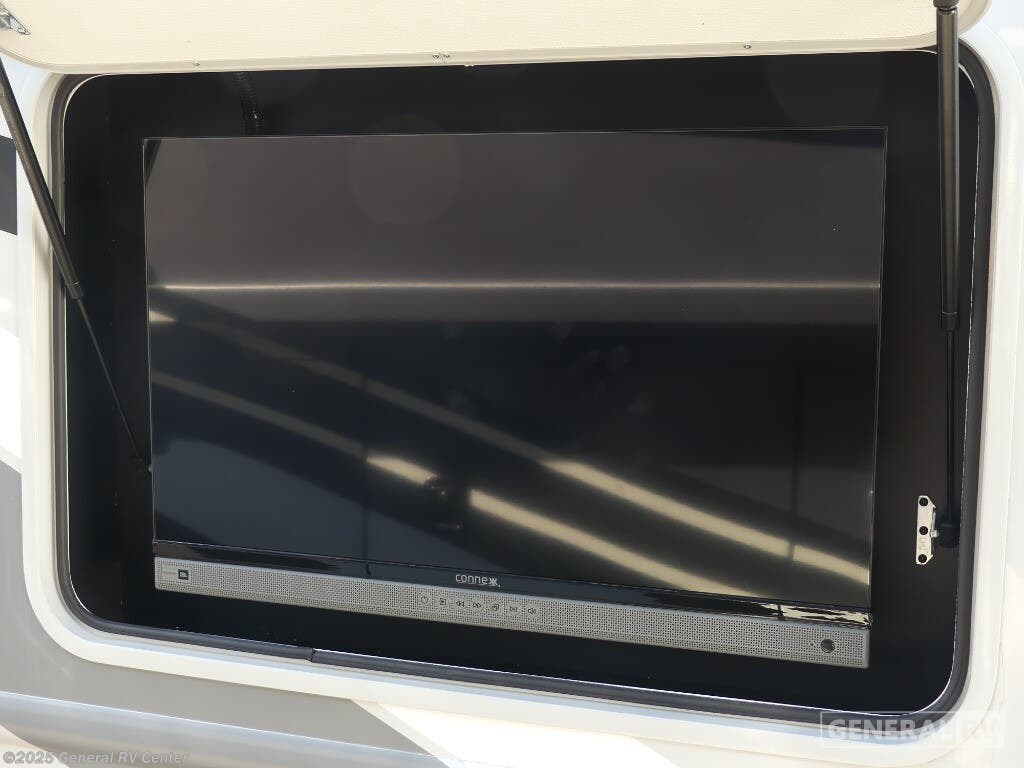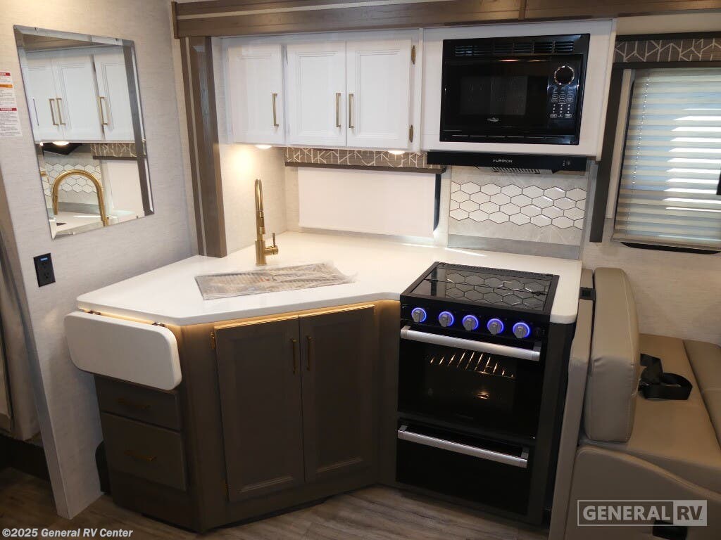 Experience the perfect blend of comfort and adventure with the 2025 Thor Motor Coach Resonate 29G. This RV is designed to accommodate up to eight guests, making it an ideal choice for family getaways or trips with friends. The spacious interior boasts a luxurious king bed, complemented by two convertible sleeping areas. With its center kitchen, you can enjoy culinary adventures on the road, utilizing the three-burner cooktop and mid-size refrigerator that runs on both electric and propane. The front living area is a cozy retreat, featuring a 68" jack-knife sofa and a dream dinette, perfect for relaxing or dining. The Resonate 29G is thoughtfully designed with convenience in mind. The rear bath offers privacy and functionality, while the 19 ft. powered retractable awning extends your living space to the great outdoors. Built on a robust Ford F53 chassis, this RV delivers 335 horsepower and 468 lb-ft of torque, ensuring a smooth and powerful ride. With a fresh water capacity of 50 gallons, you can enjoy extended adventures without worrying about resupply. Whether you're lounging inside or enjoying the exterior 32" TV, the Resonate 29G promises a delightful travel experience. For more details and to see this model in person, visit your nearest General RV dealership.