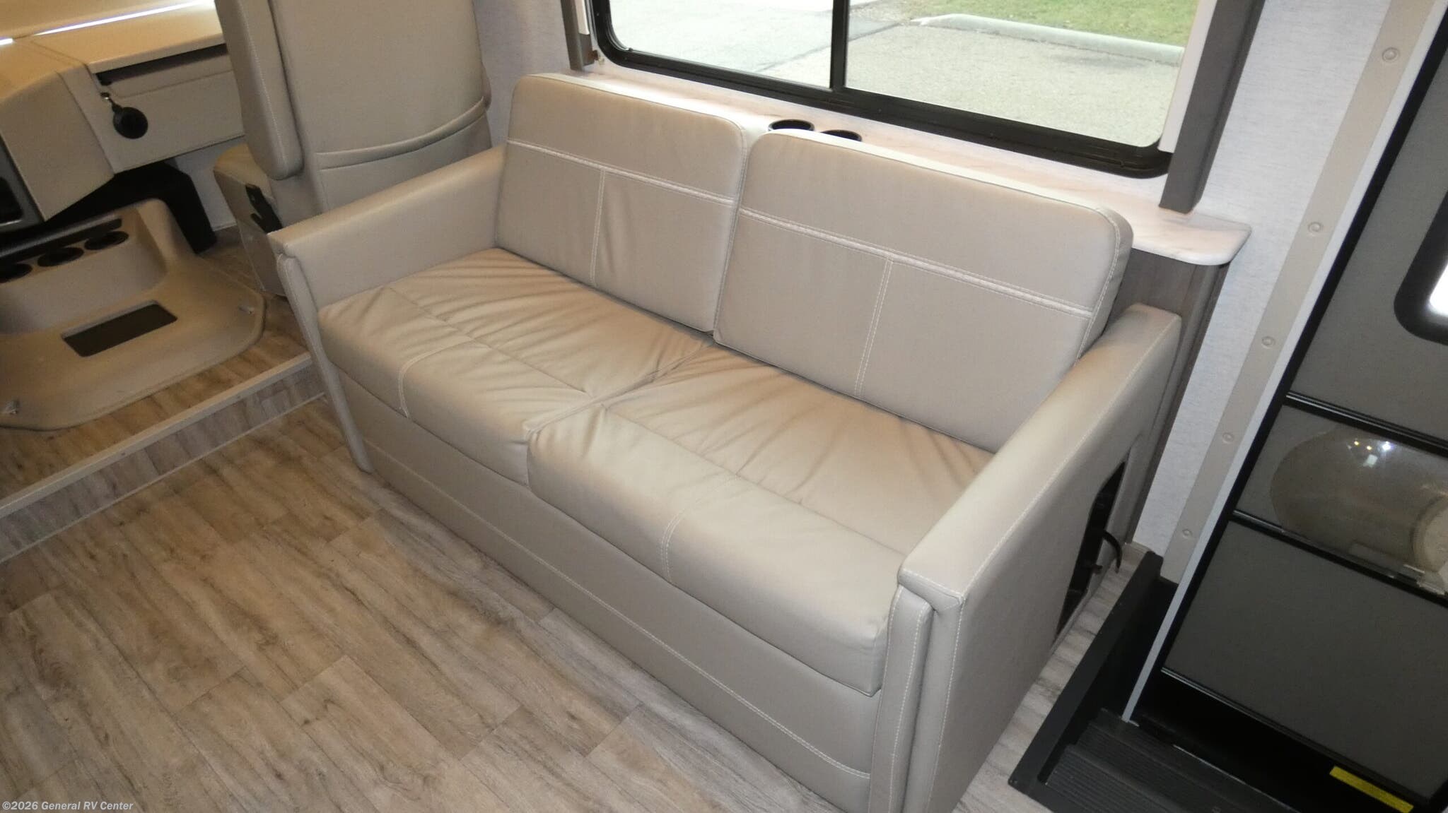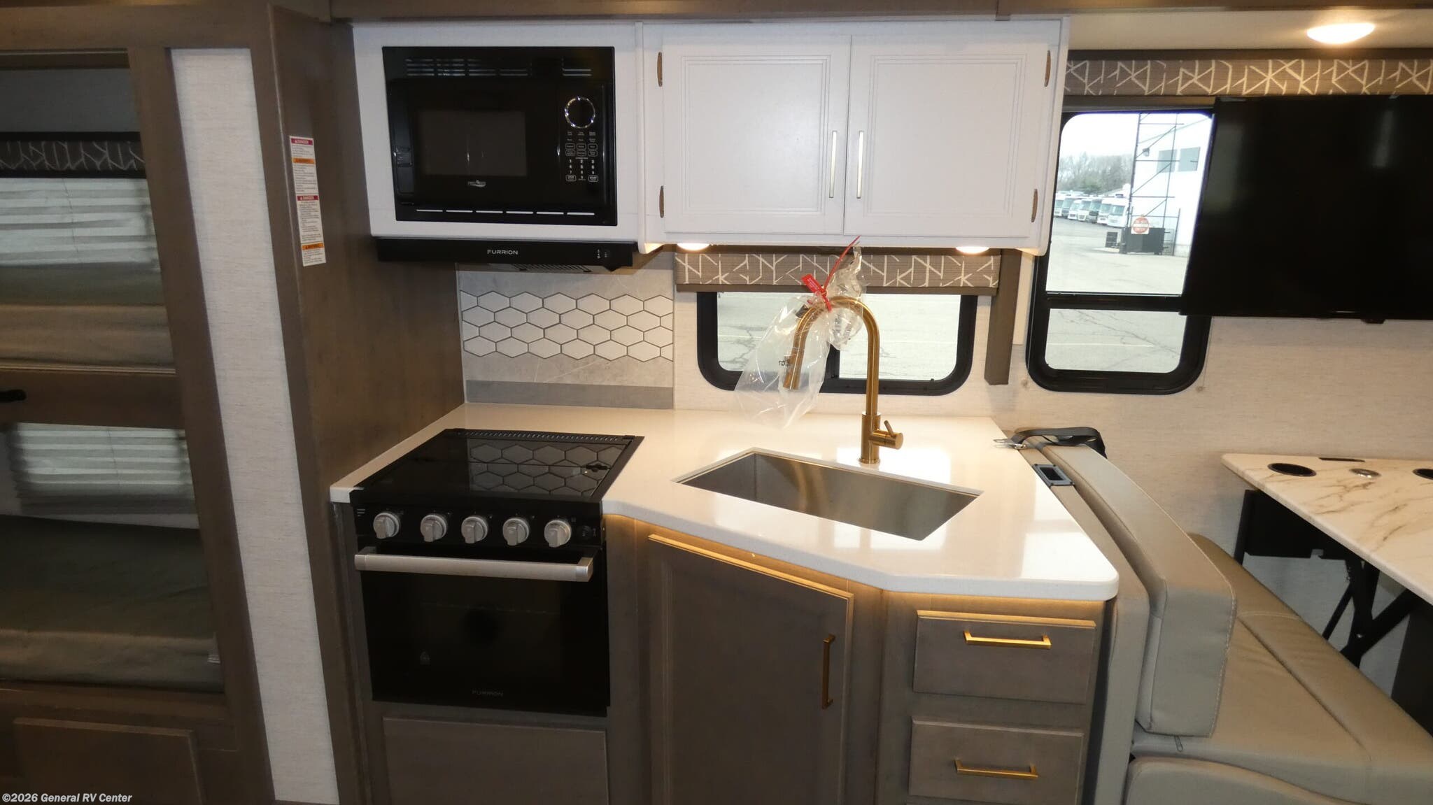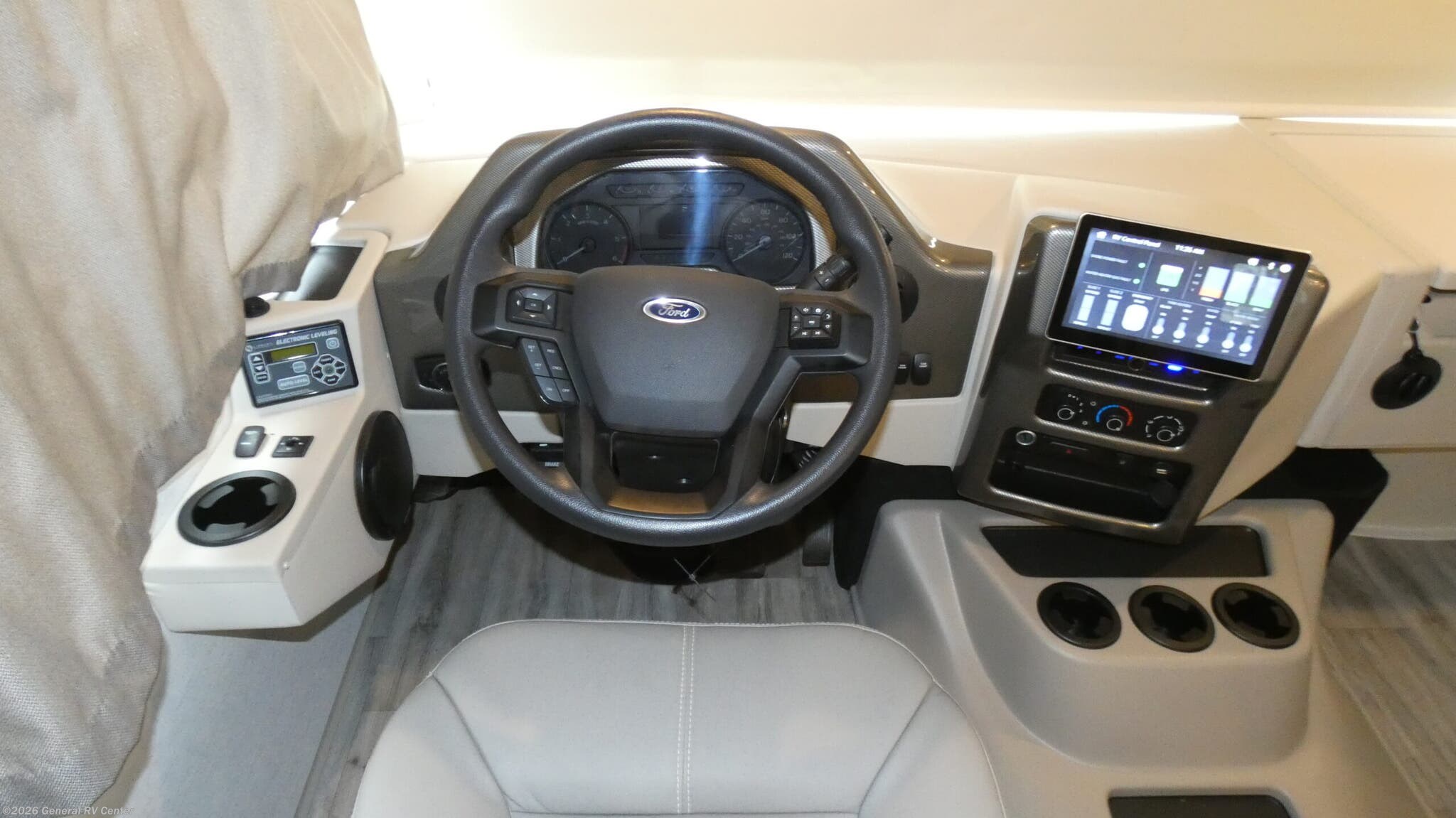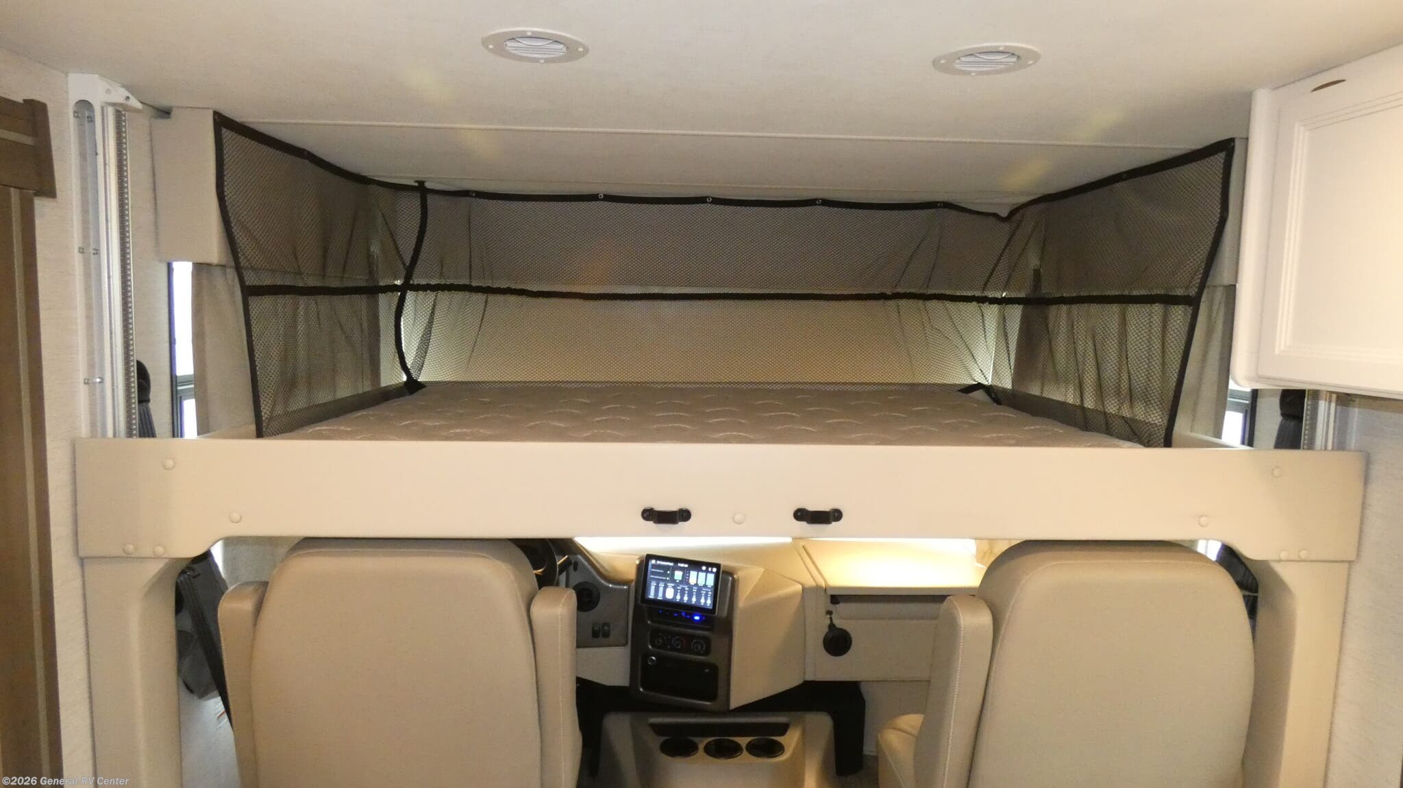 Step into the future of RV living with the 2025 Thor Motor Coach Resonate 32B. This stunning motorhome is designed for families and groups who crave adventure without sacrificing comfort. With a spacious layout that sleeps up to 10, including a luxurious king-sized bed and cozy bunks, everyone can rest easy after a day of exploration. The front living area is perfect for gathering, featuring a 68" dream dinette and a jack-knife sofa, both convertible for additional sleeping space. The center kitchen, equipped with a mid-size refrigerator and a three-burner cooktop, ensures you can whip up delicious meals on the go. The Resonate 32B is built on the robust Ford F53 chassis, boasting a powerful 350 horsepower engine and a towing capacity of 8,000 pounds, making it a reliable companion for all your journeys. The 19 ft. powered retractable awning creates an inviting outdoor space, perfect for relaxing and enjoying the scenery. With a thoughtful design that includes a center bath and rear bedroom, along with ample storage and modern amenities, this RV is your ticket to a life of adventure and comfort. For more details, visit your nearest General RV dealership and start your journey today!